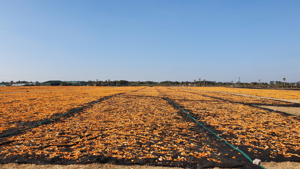 귤 말리는 풍경, 표선해변을 맨발로 걷는 스릴이 압권이다.