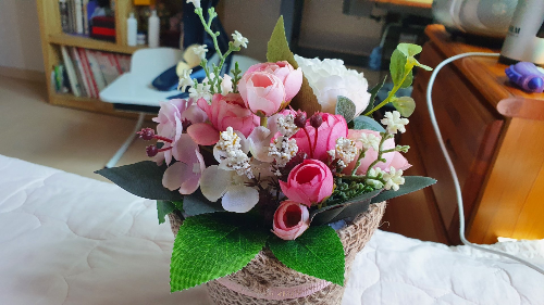 아내가 부모님께 드릴 꽃다발을 사왔다.