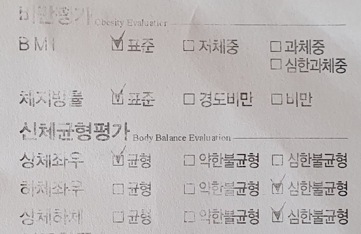 그러나 신체균형평가에서 깜짝 놀랐다.