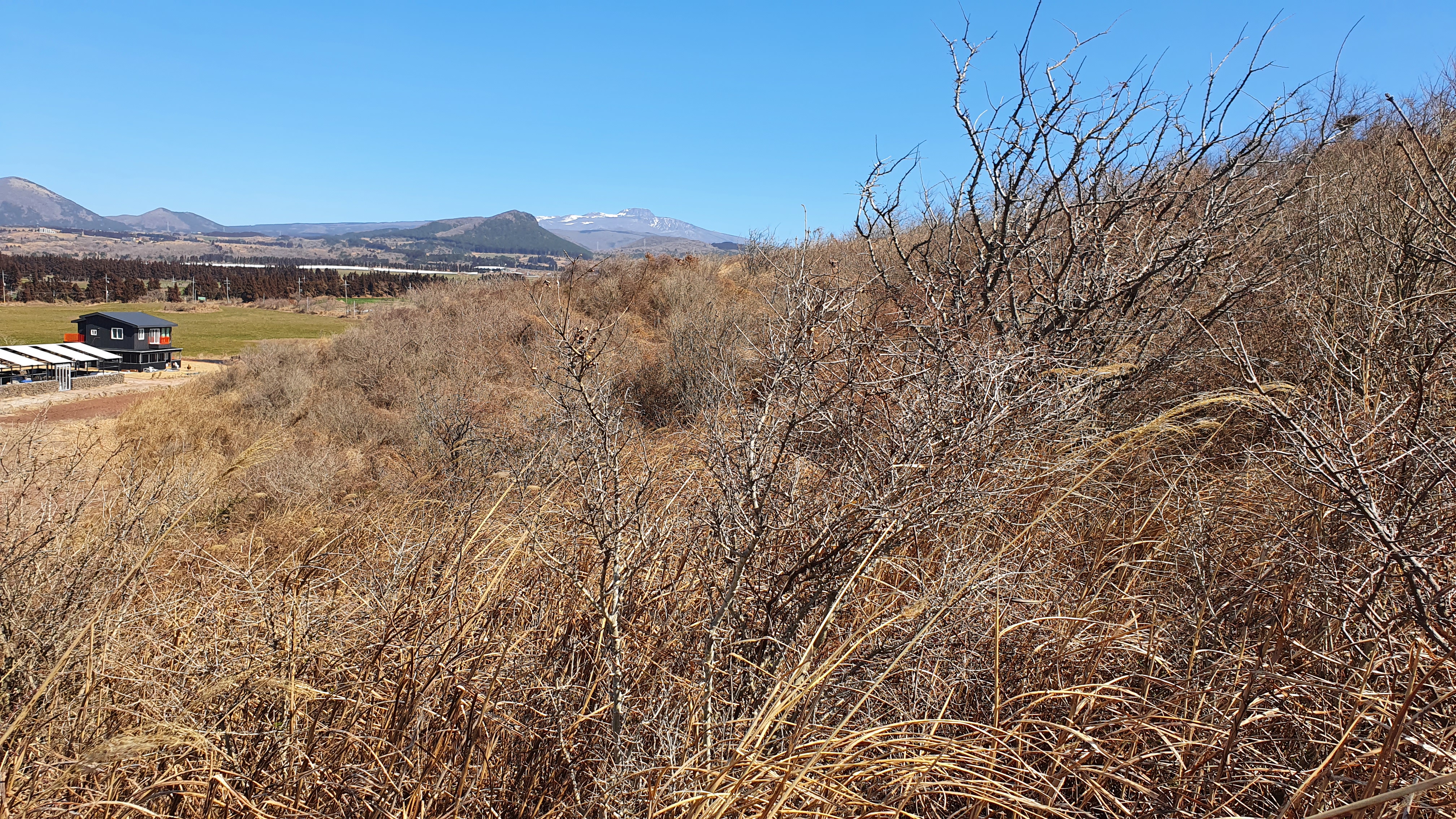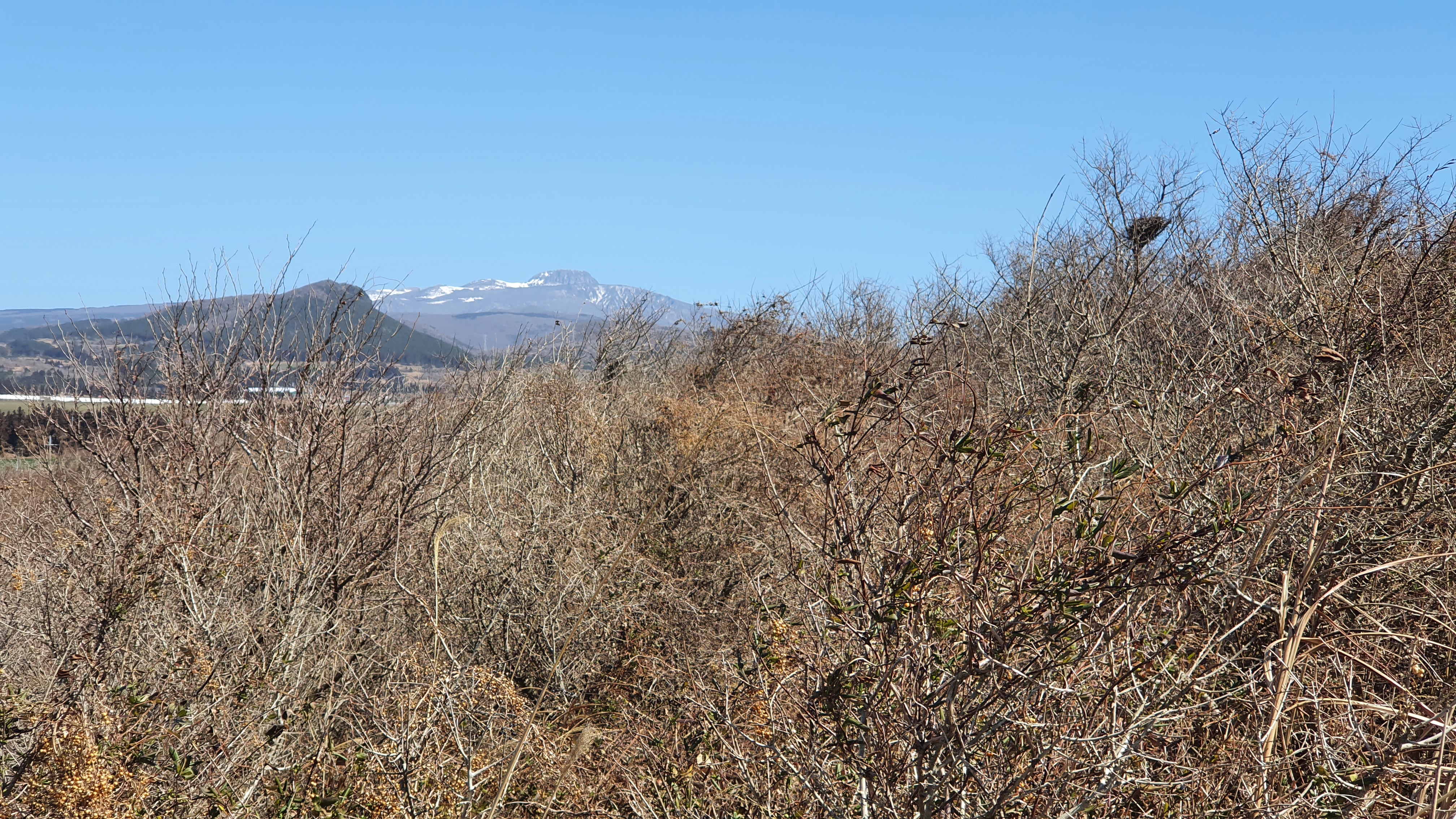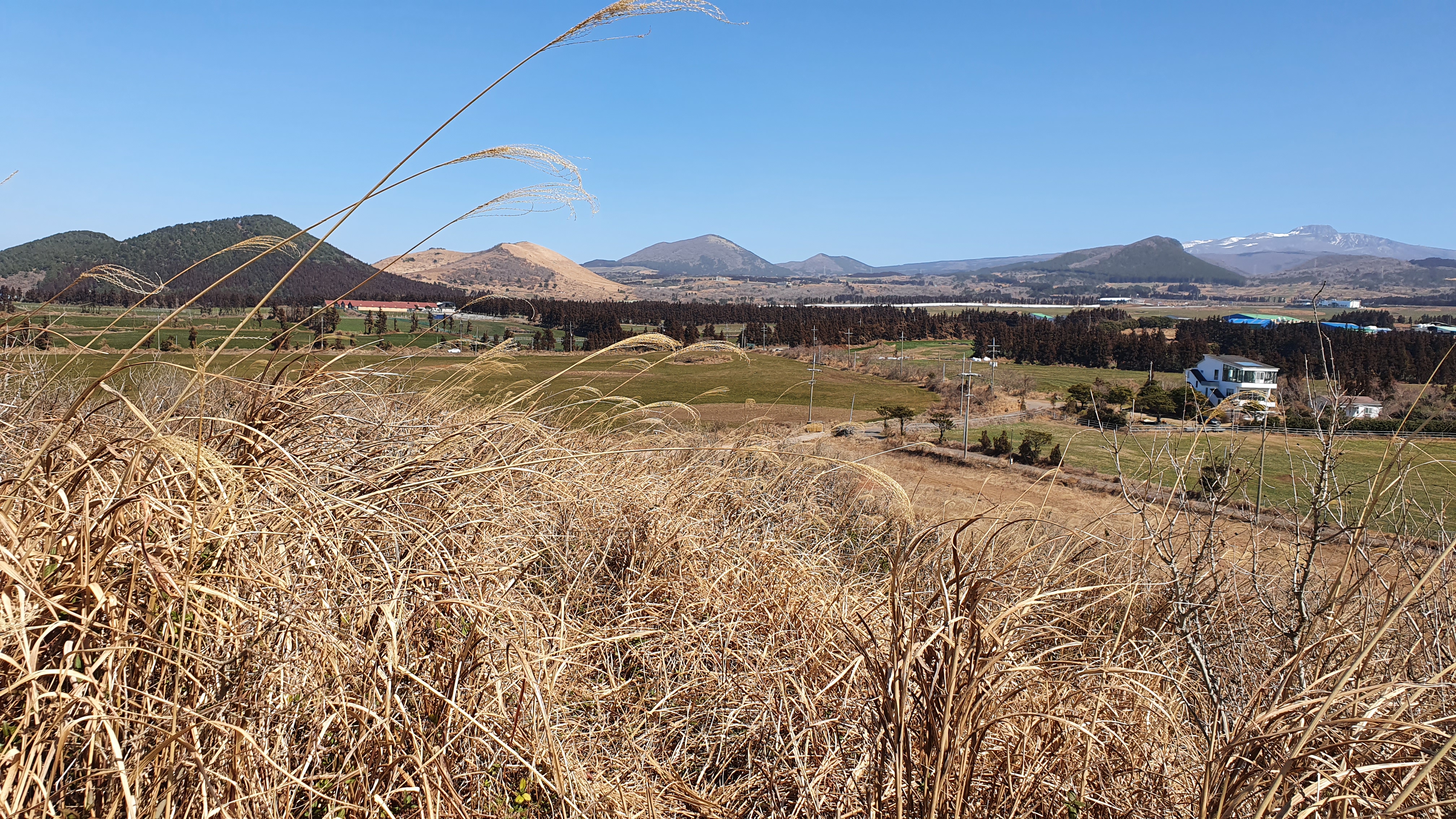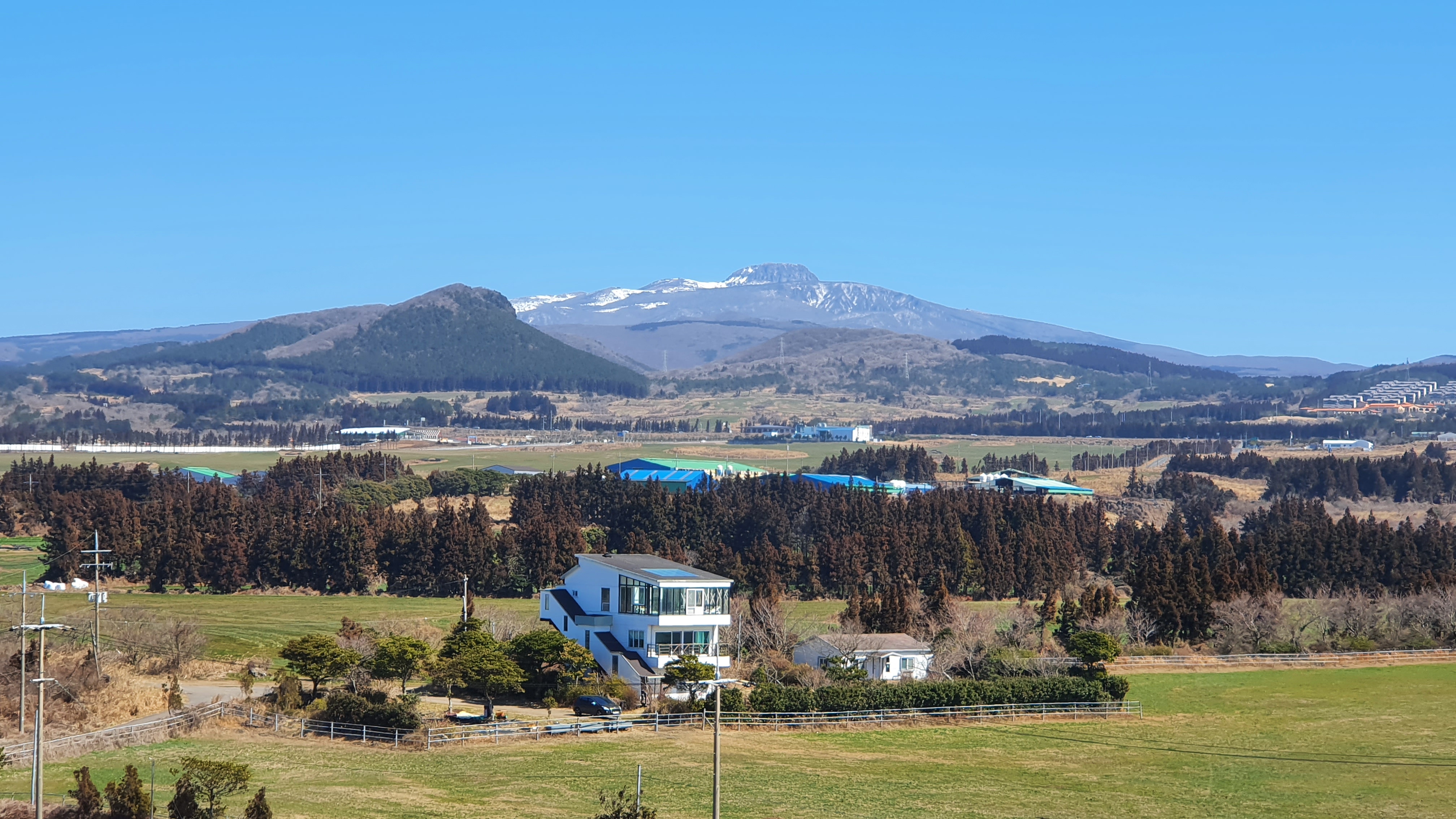 멀리 한라산은 흰눈이 채 녹지 않은 풍경이다.