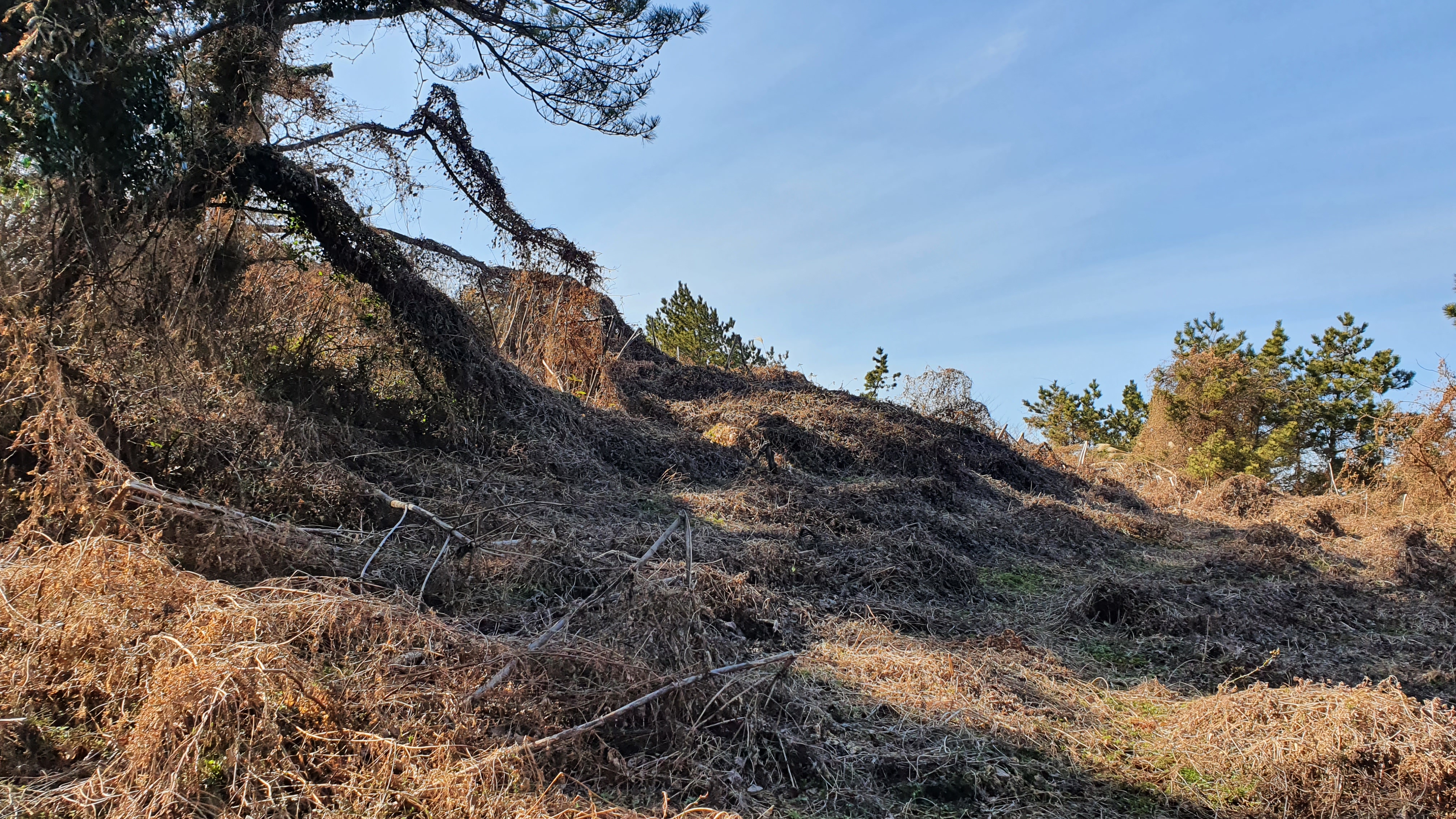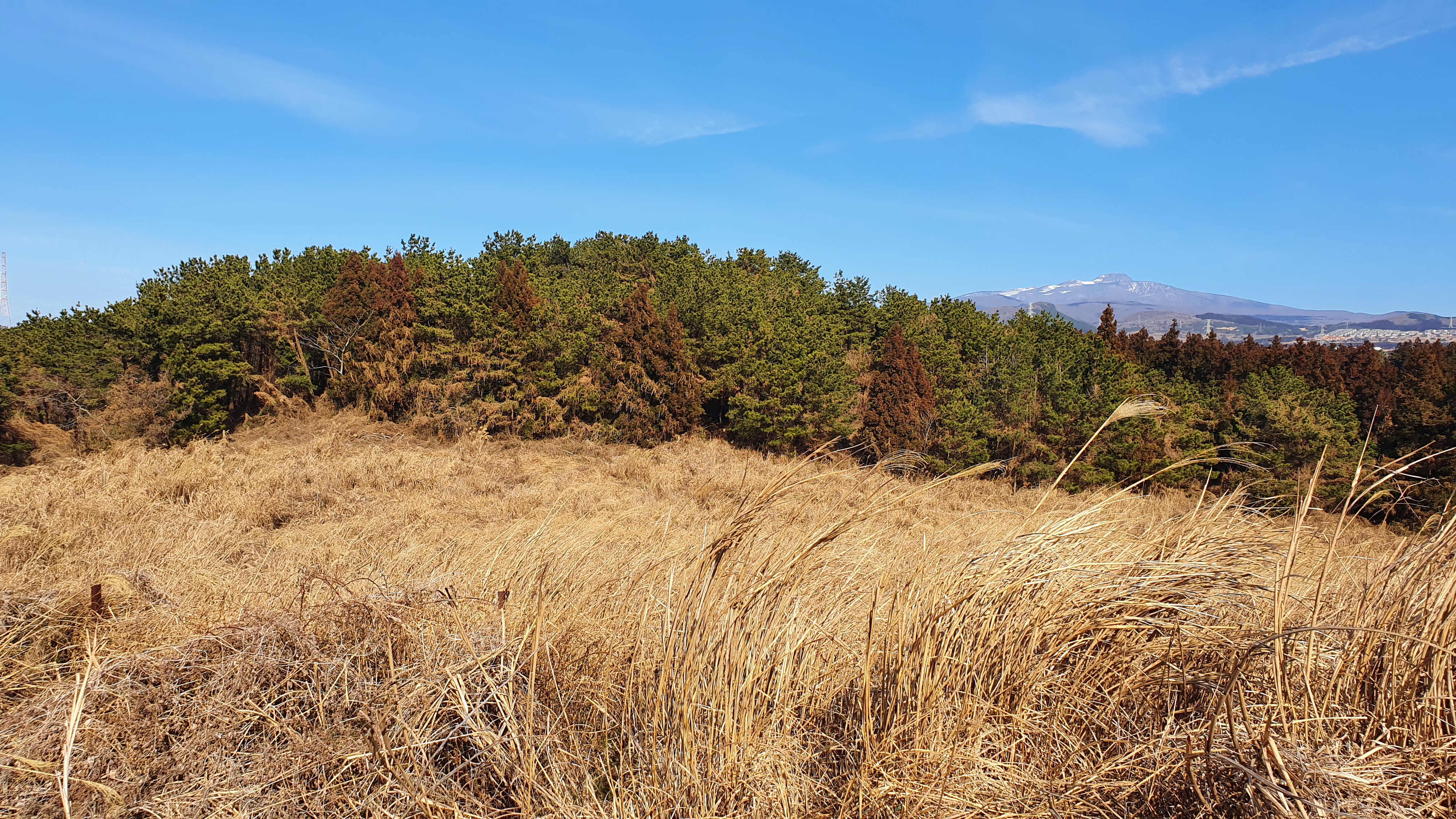 그러나 오름은 억새와 가시덤불이 덮여 있고