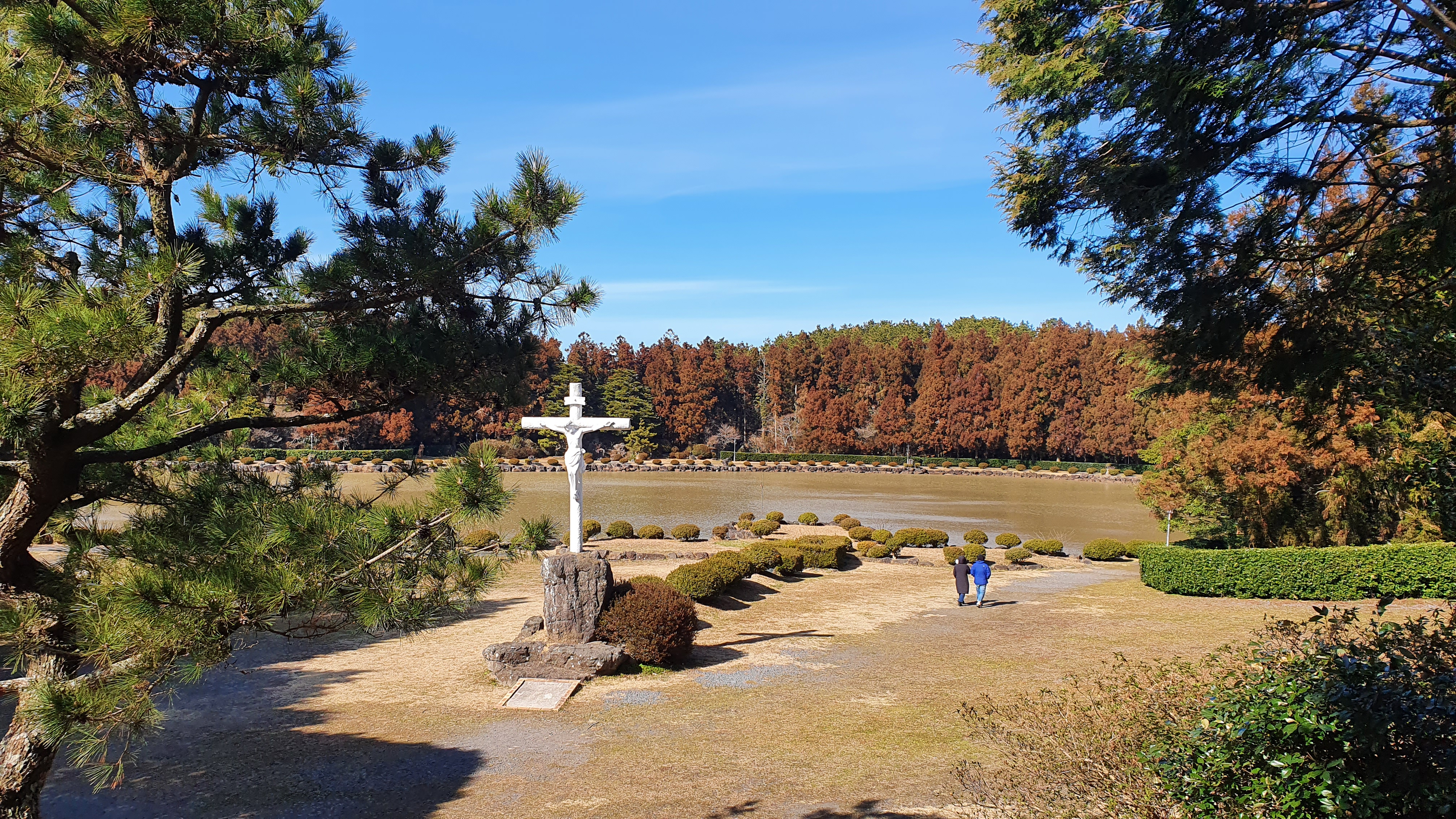 \넓은 동산과 연못, 성모상과 대형 십자가 등을 볼 수 있게 했다.
