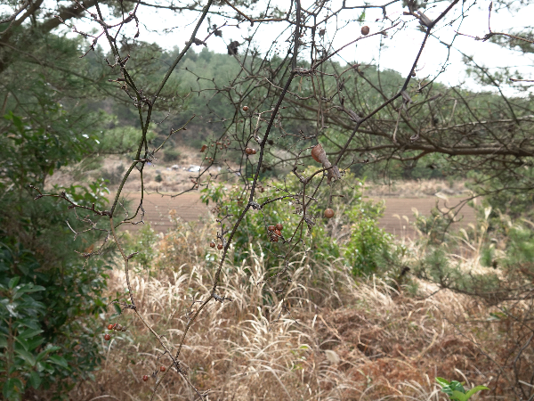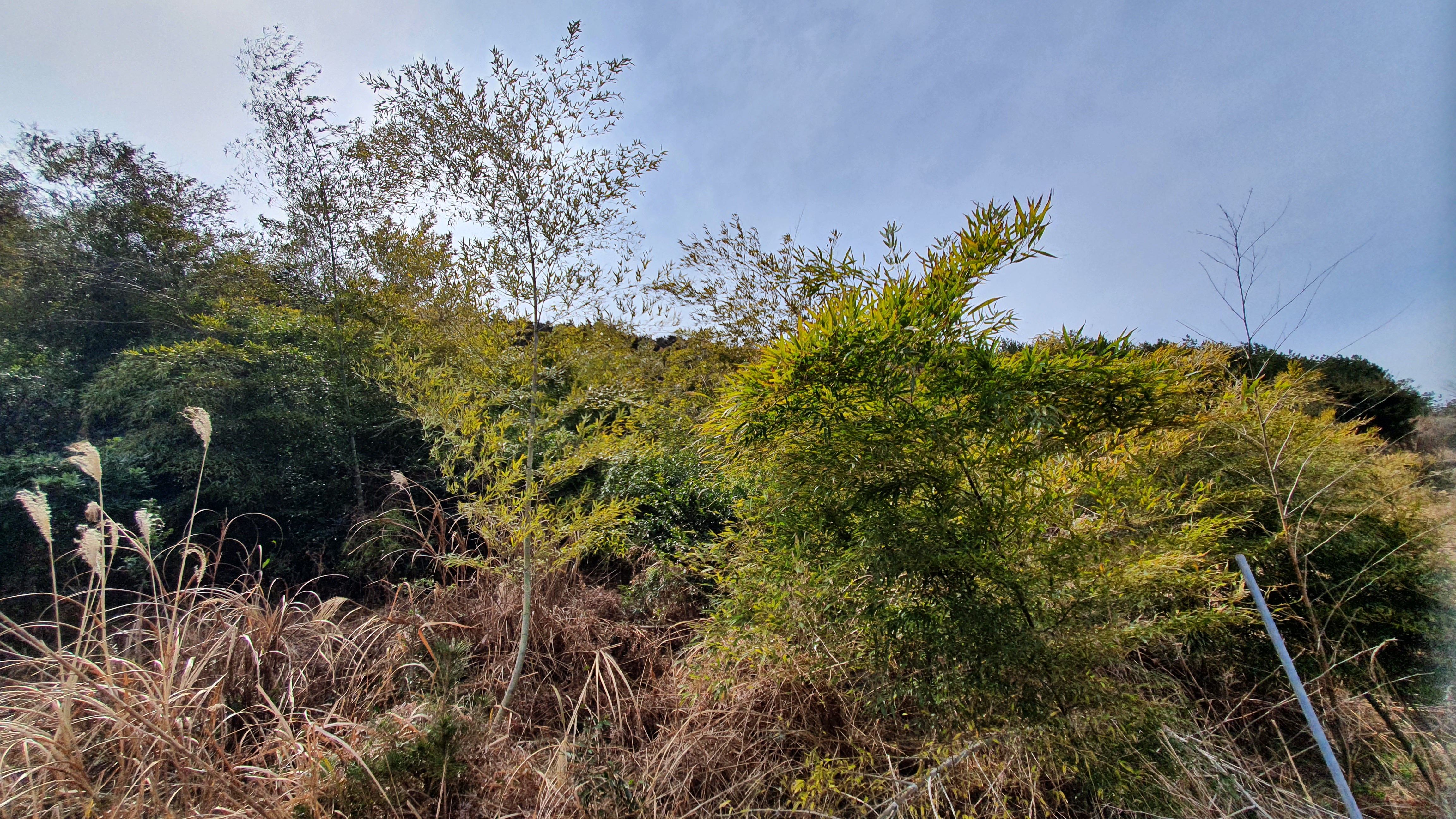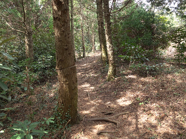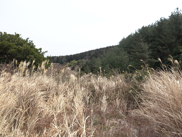 남사면에 조림된 곰솔나무가 줄을 지어 숲을 이루고,