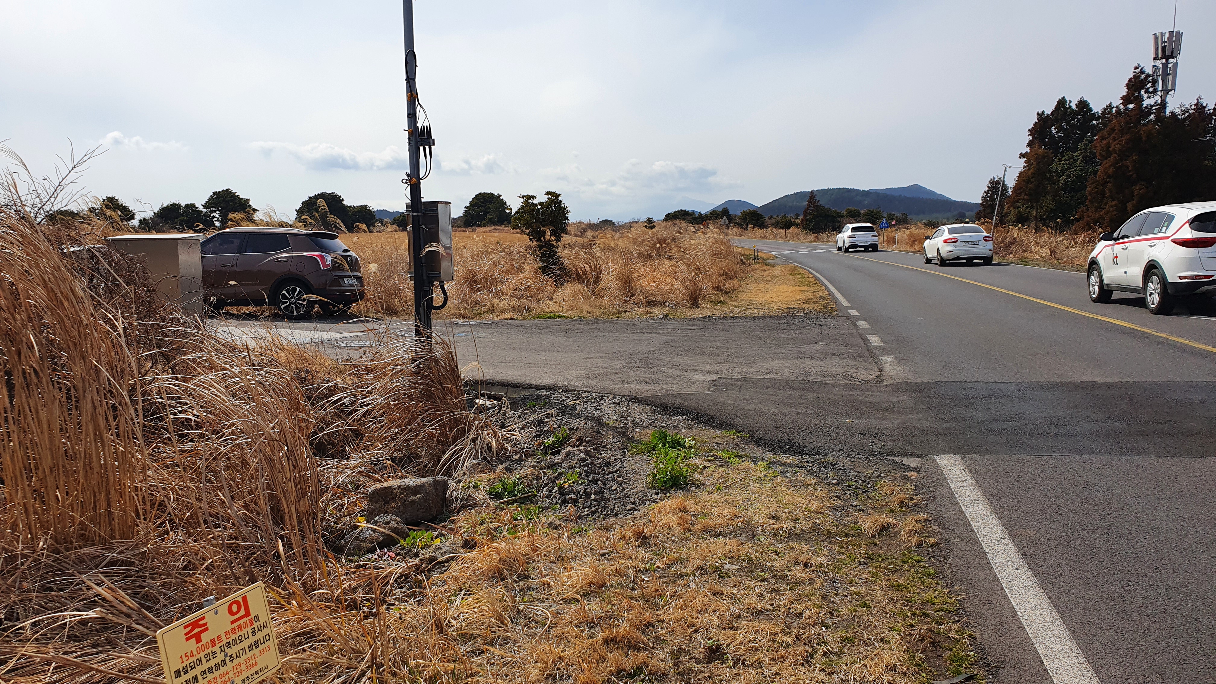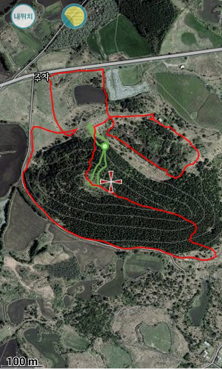 금백조로 곁에 주차하고 오름 전체 모습을 보면서 올랐다.