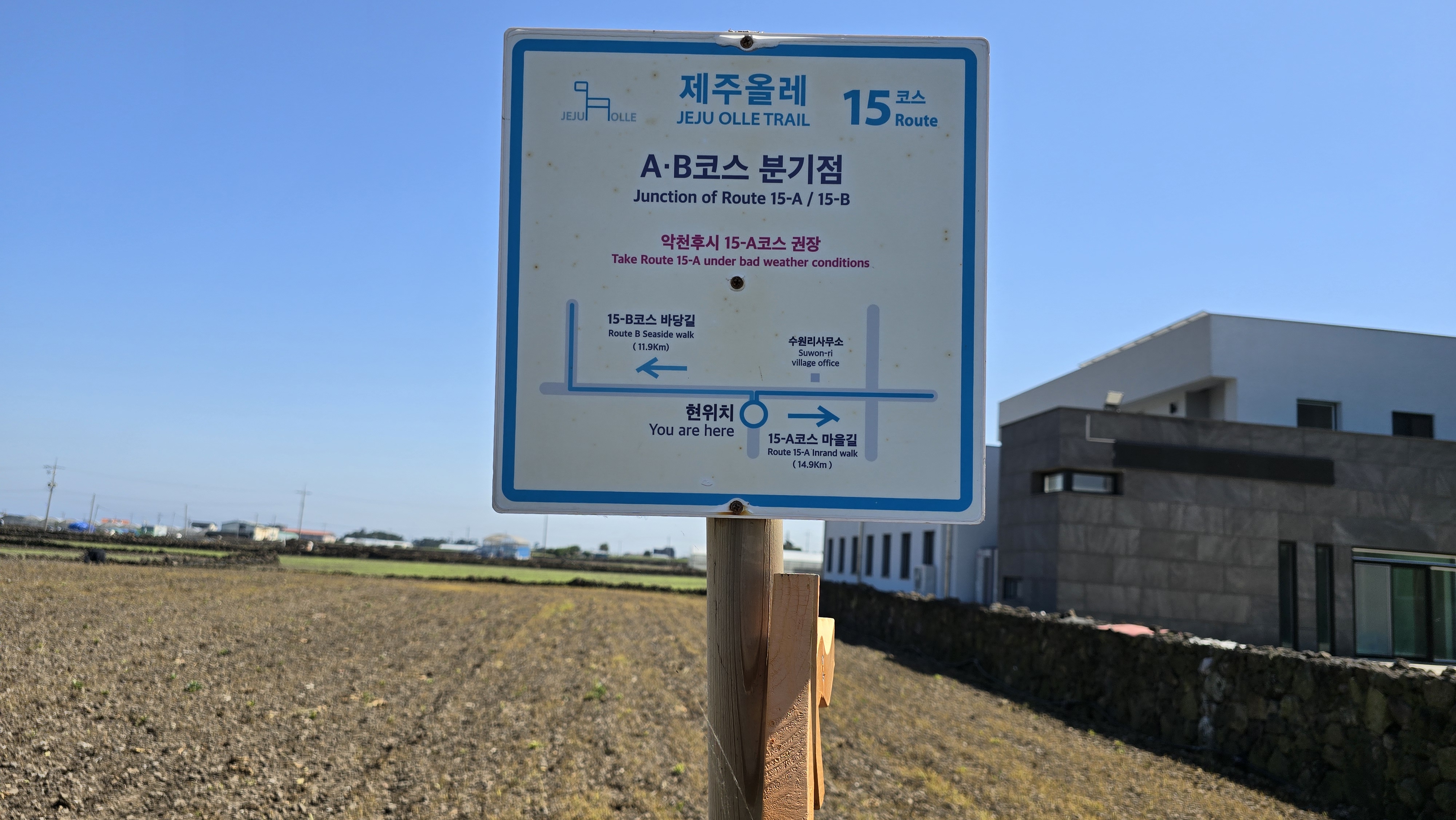 제주올레 15코스는 해변코스(B코스)와 중산간코스(A코스) 두 개가 있다.