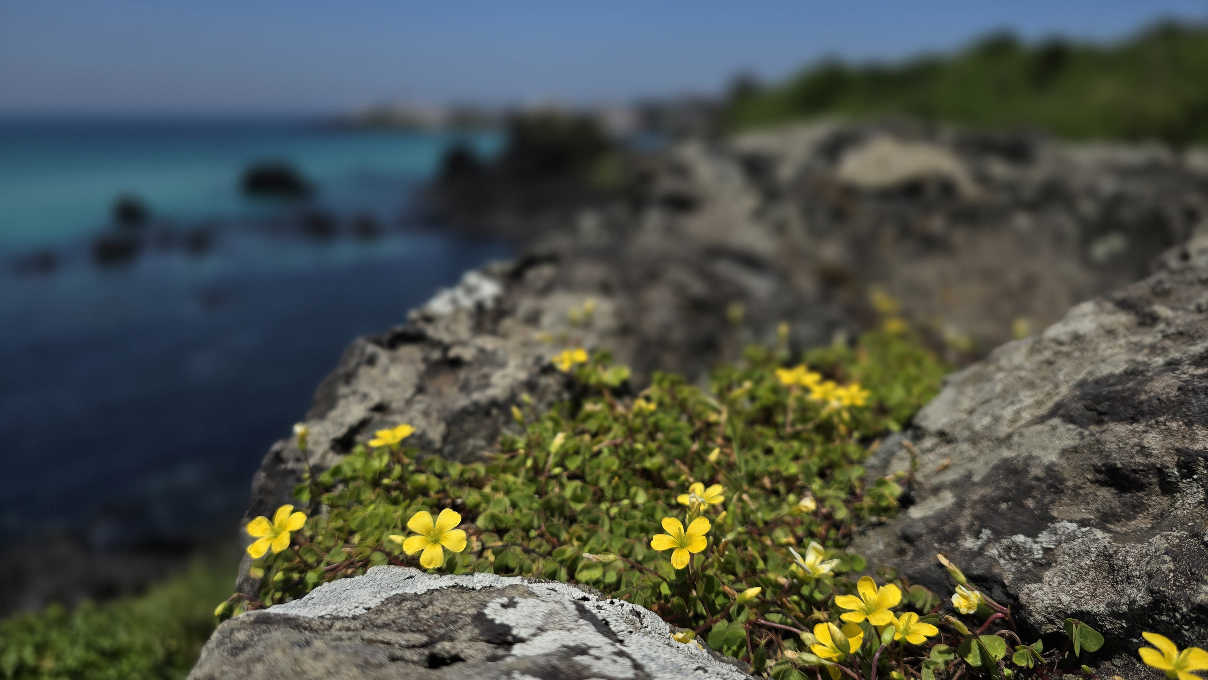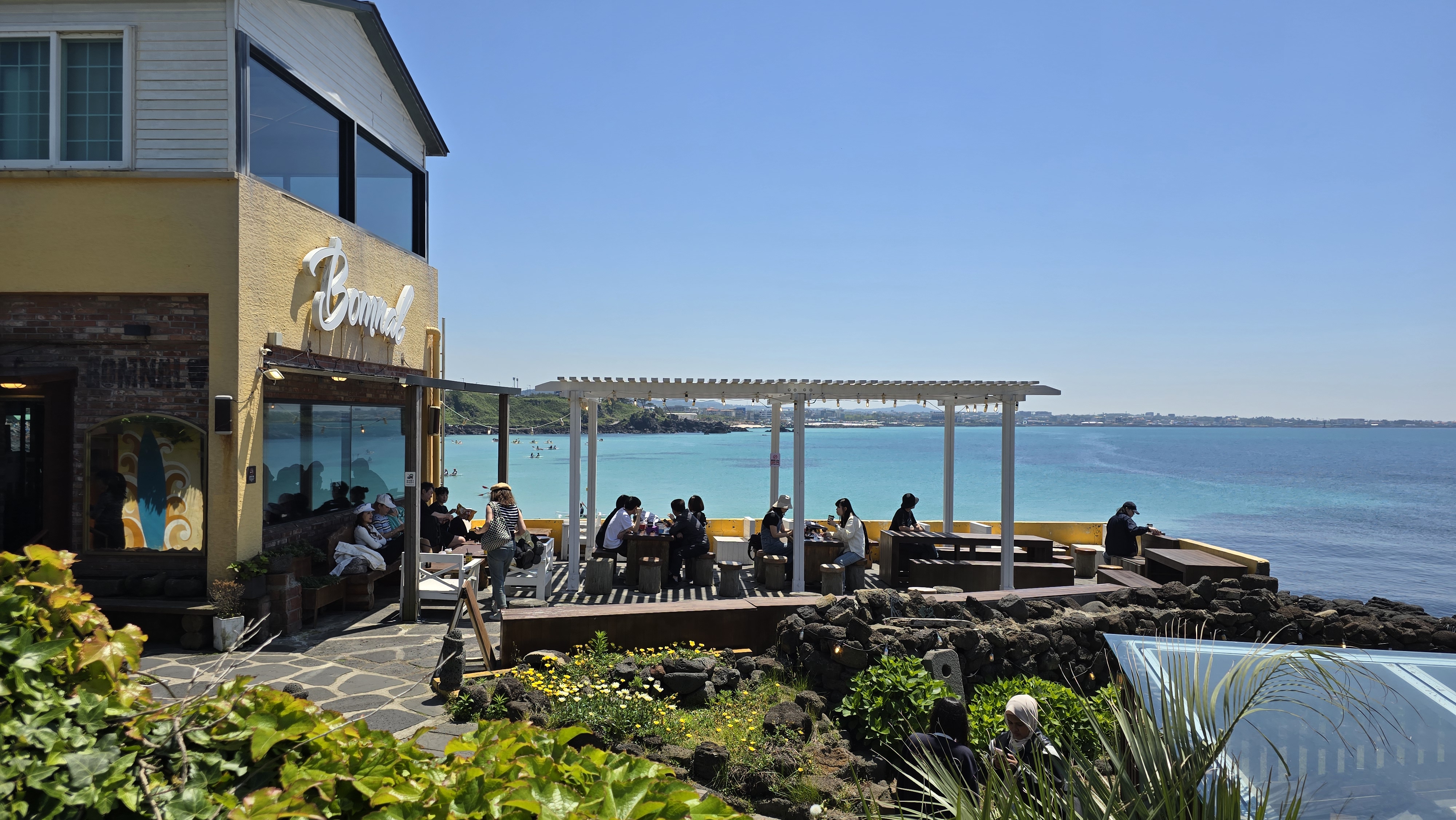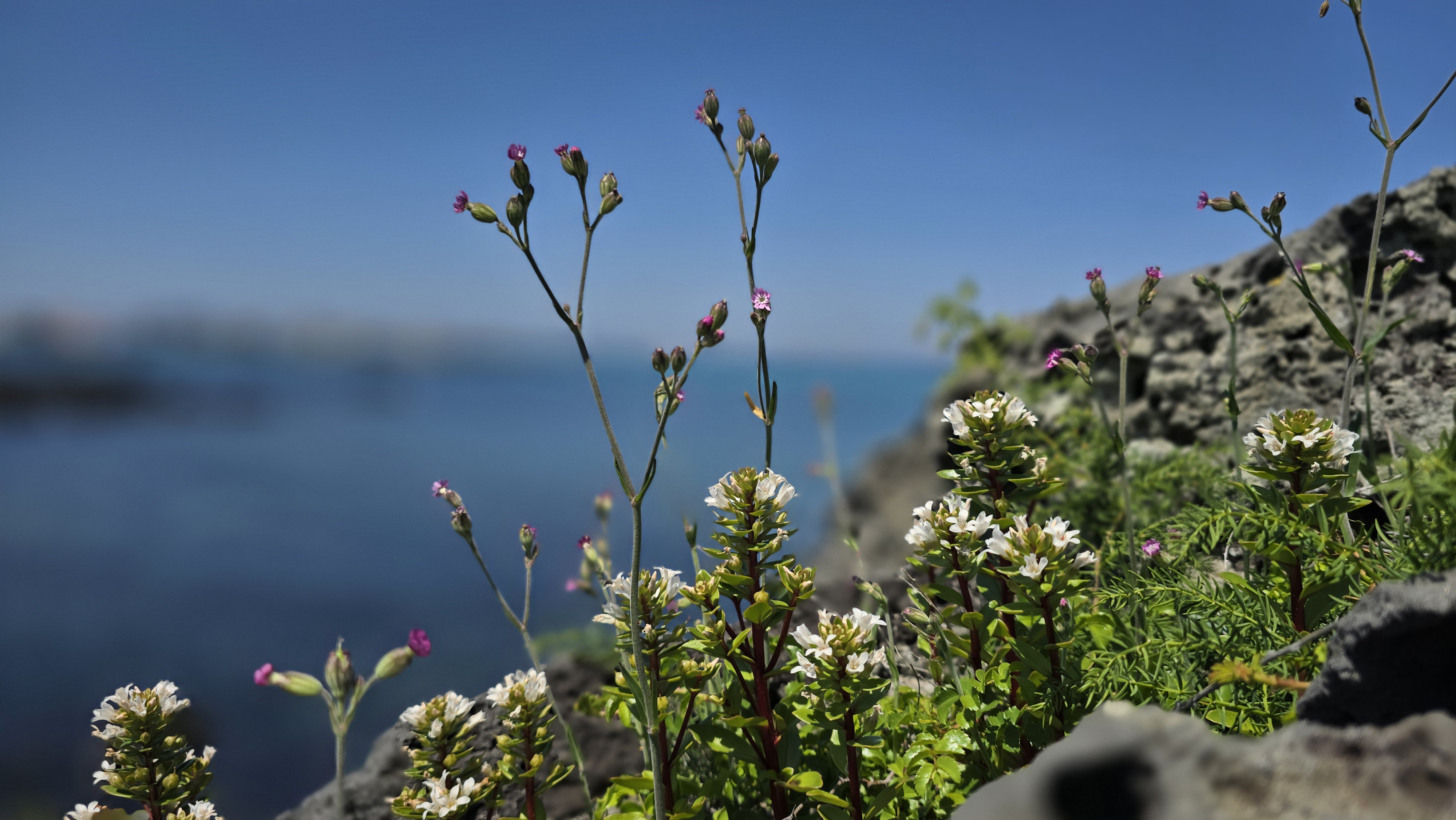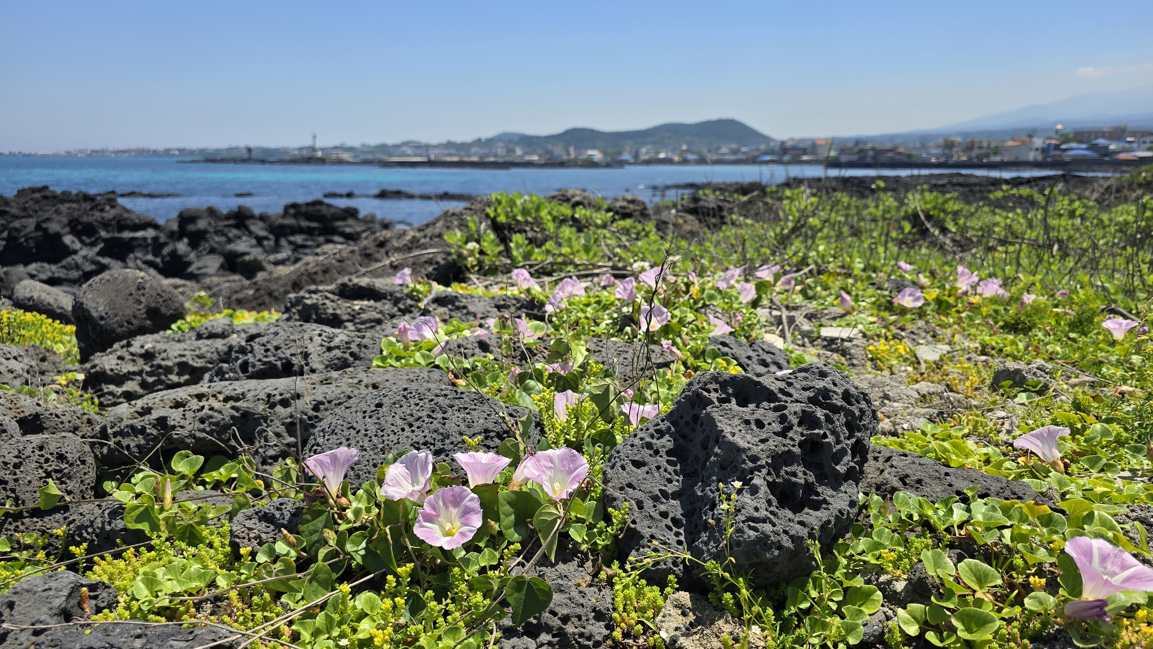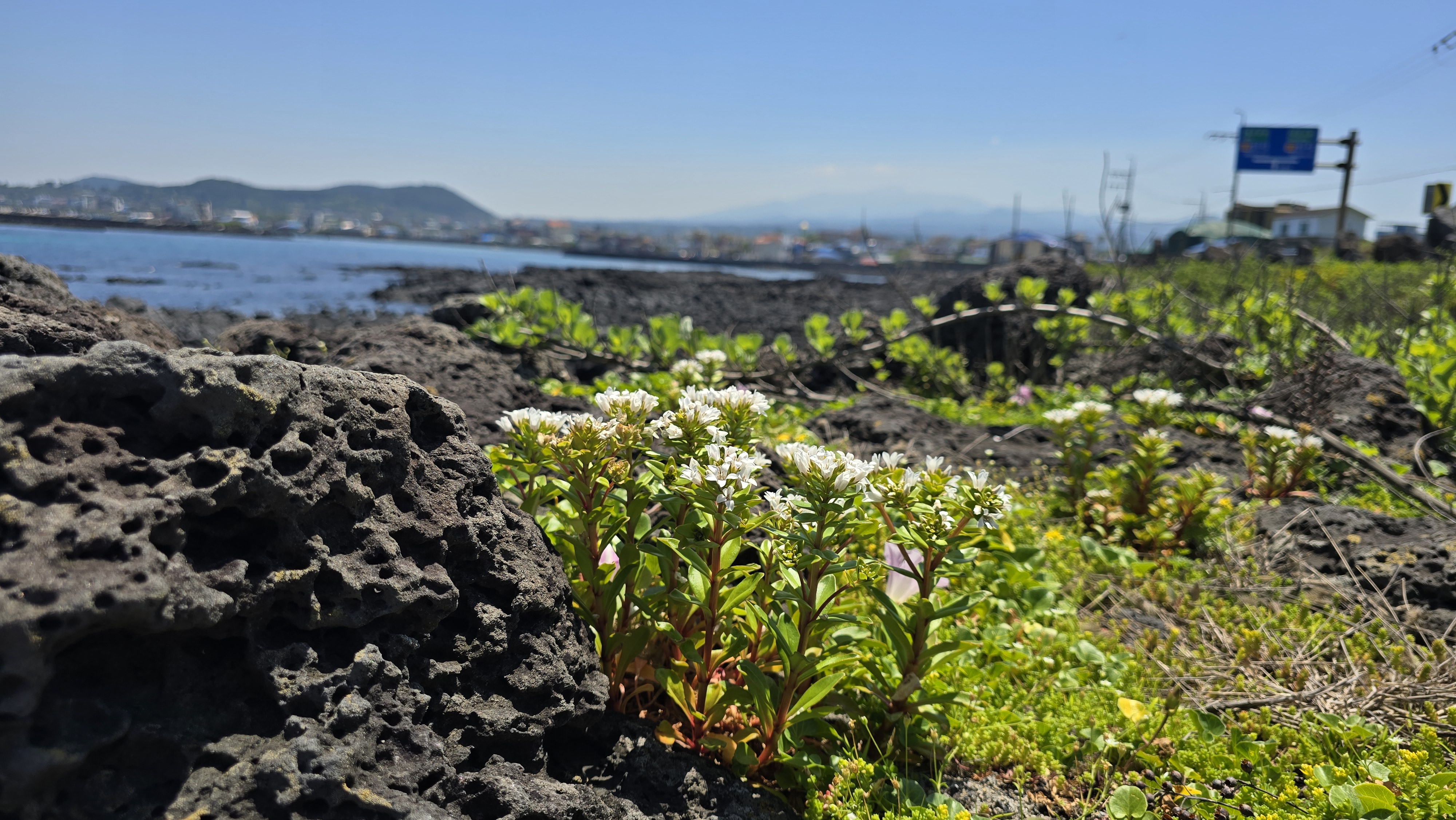 푸른 바다와 해변의 야생화들