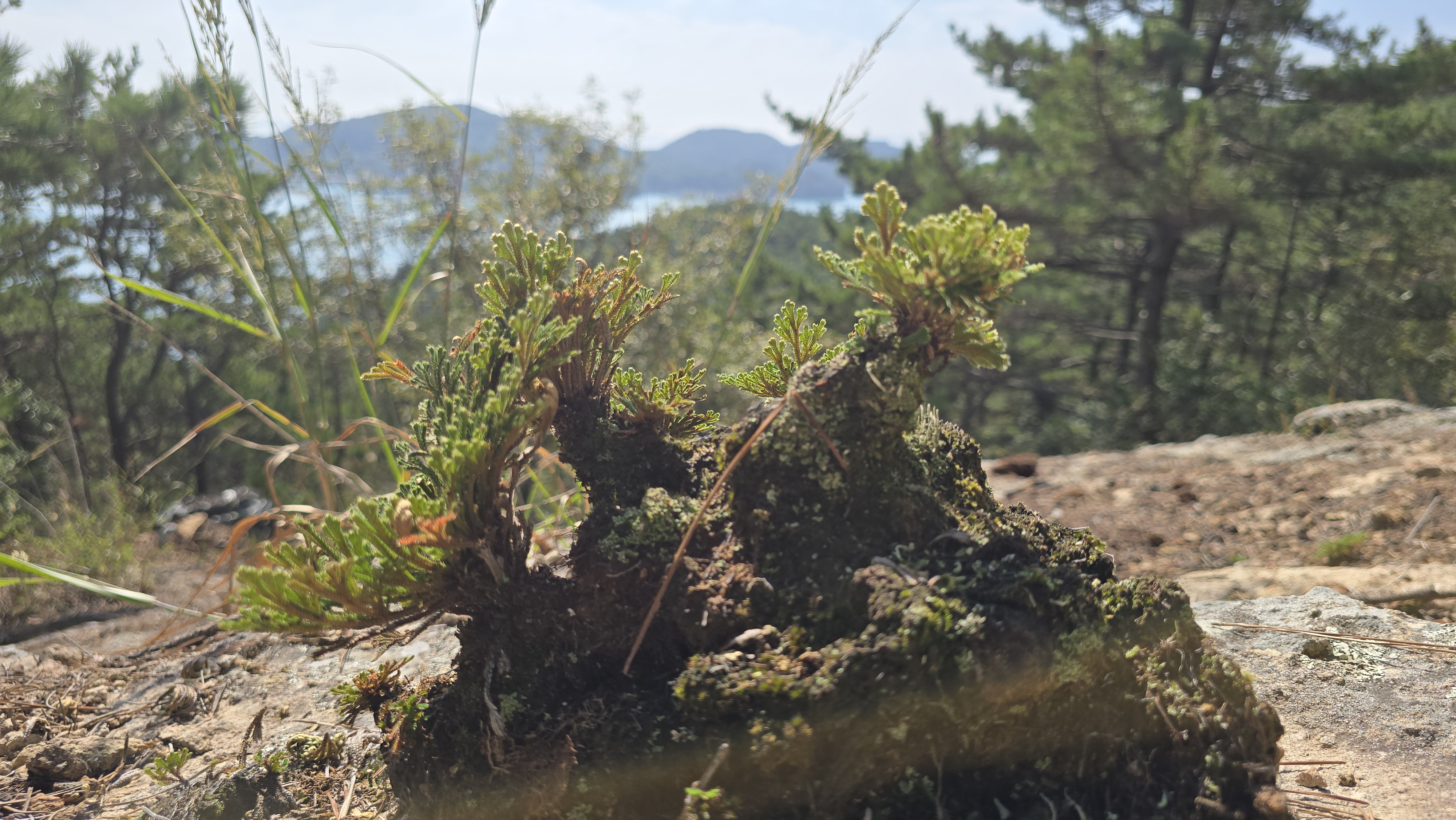 다도해가 보이는 바위 사면에 바위손이 군락으로 터를 잡았고