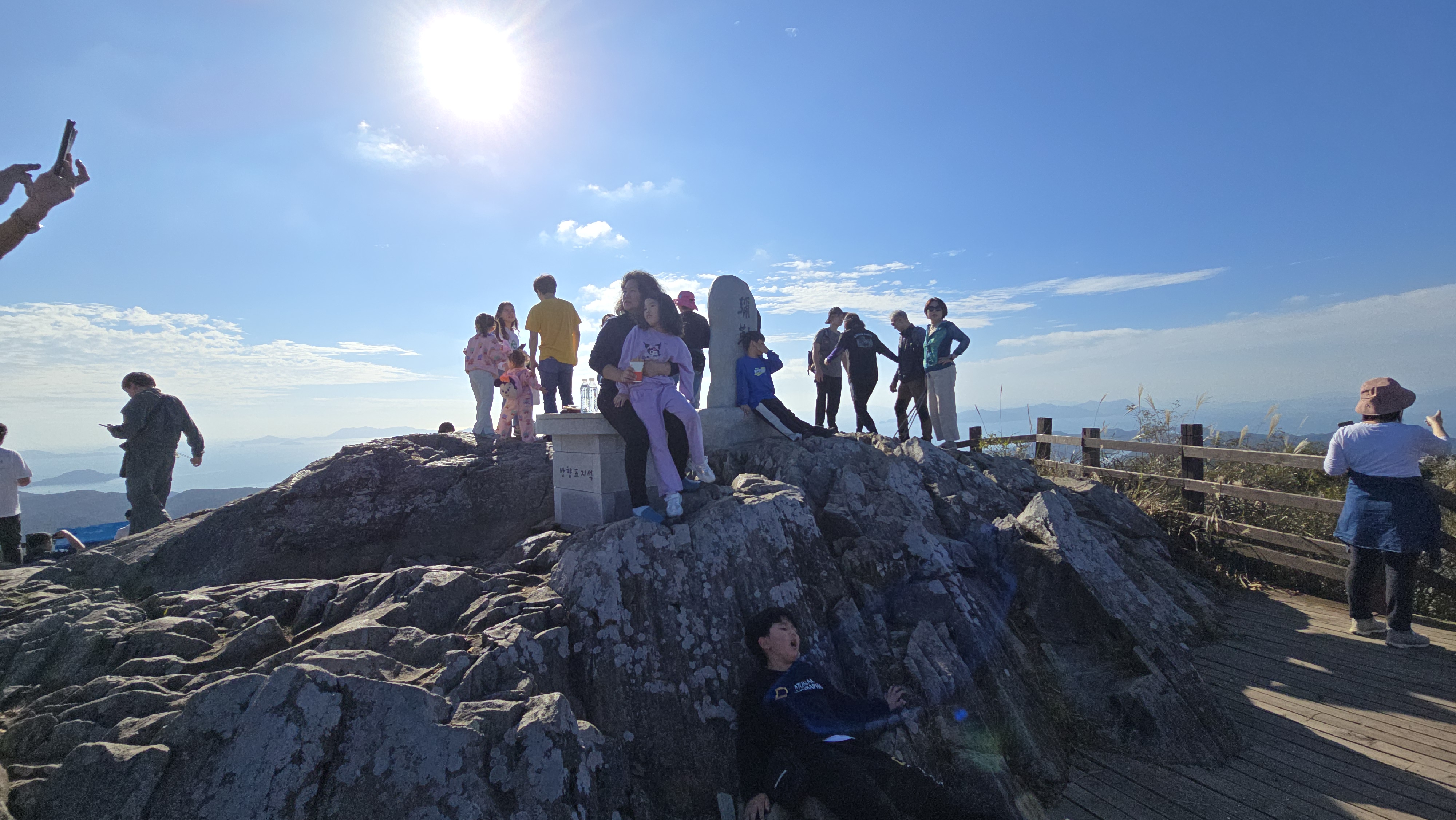 휴일을 맞은 미륵산 정상은 사람들로 붐빈다.