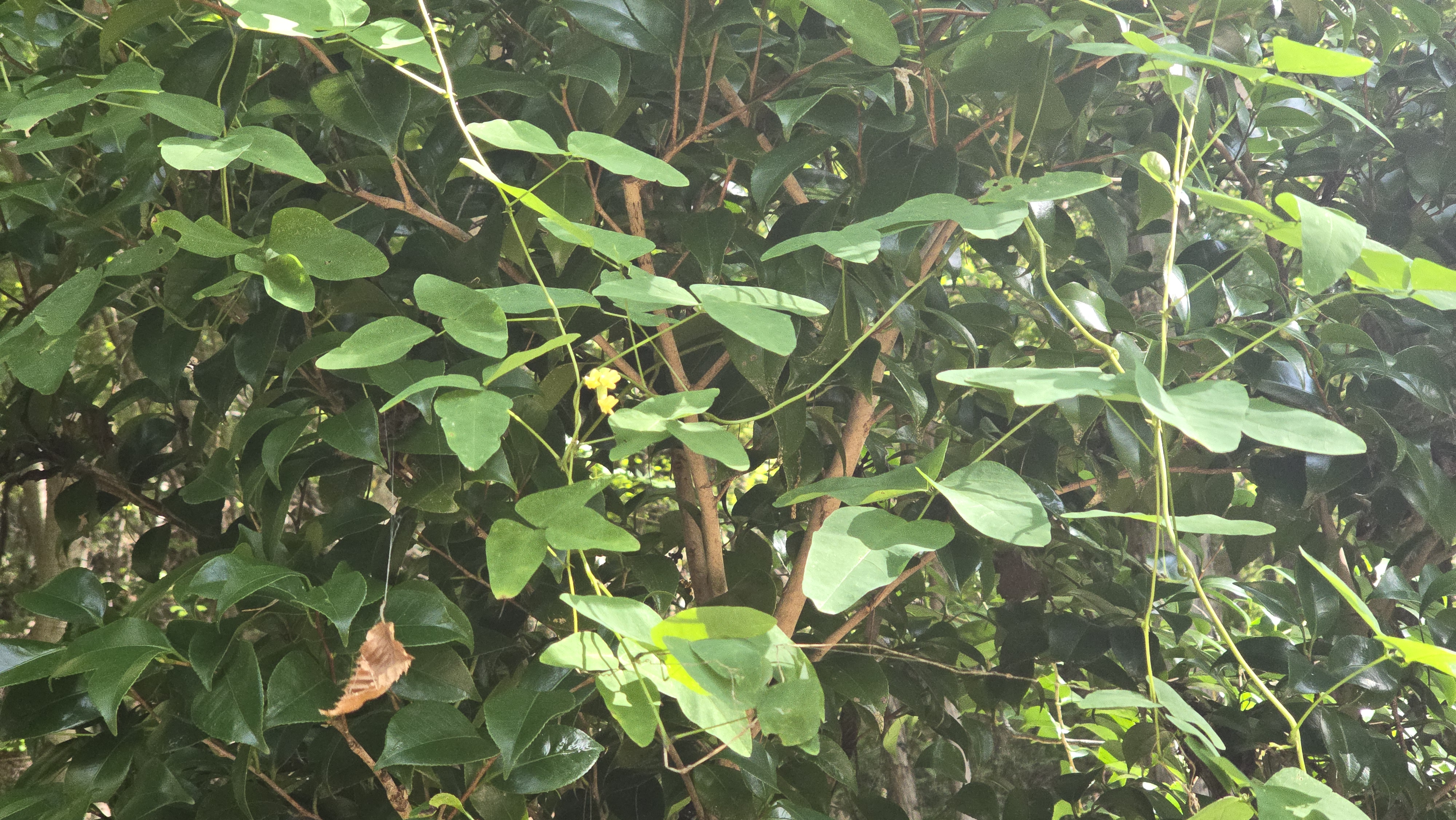 나무에 비진도콩의 덩굴이 감고 올라갔고