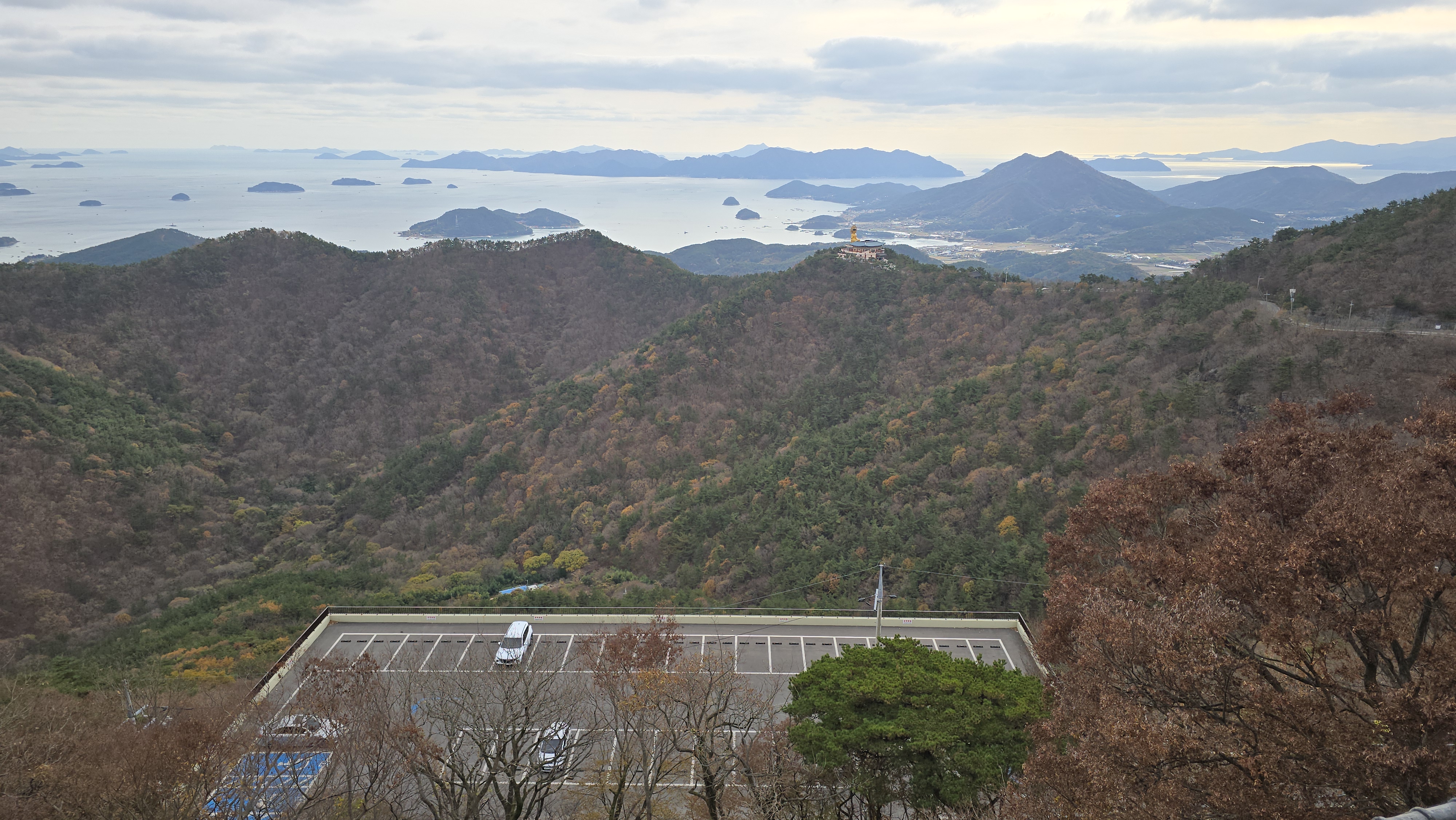 좌이산과 사량도 등 한려수도의 섬들이 펼쳐진다.