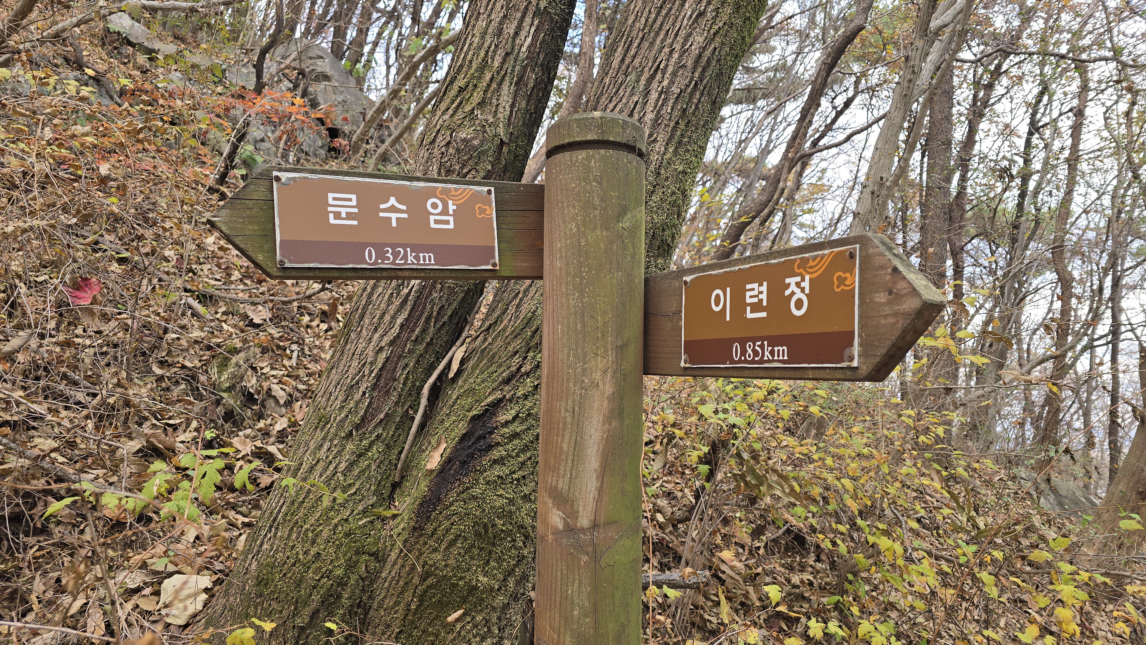 낙엽이 쌓인 등산로가 바스락 소리를 낸다.