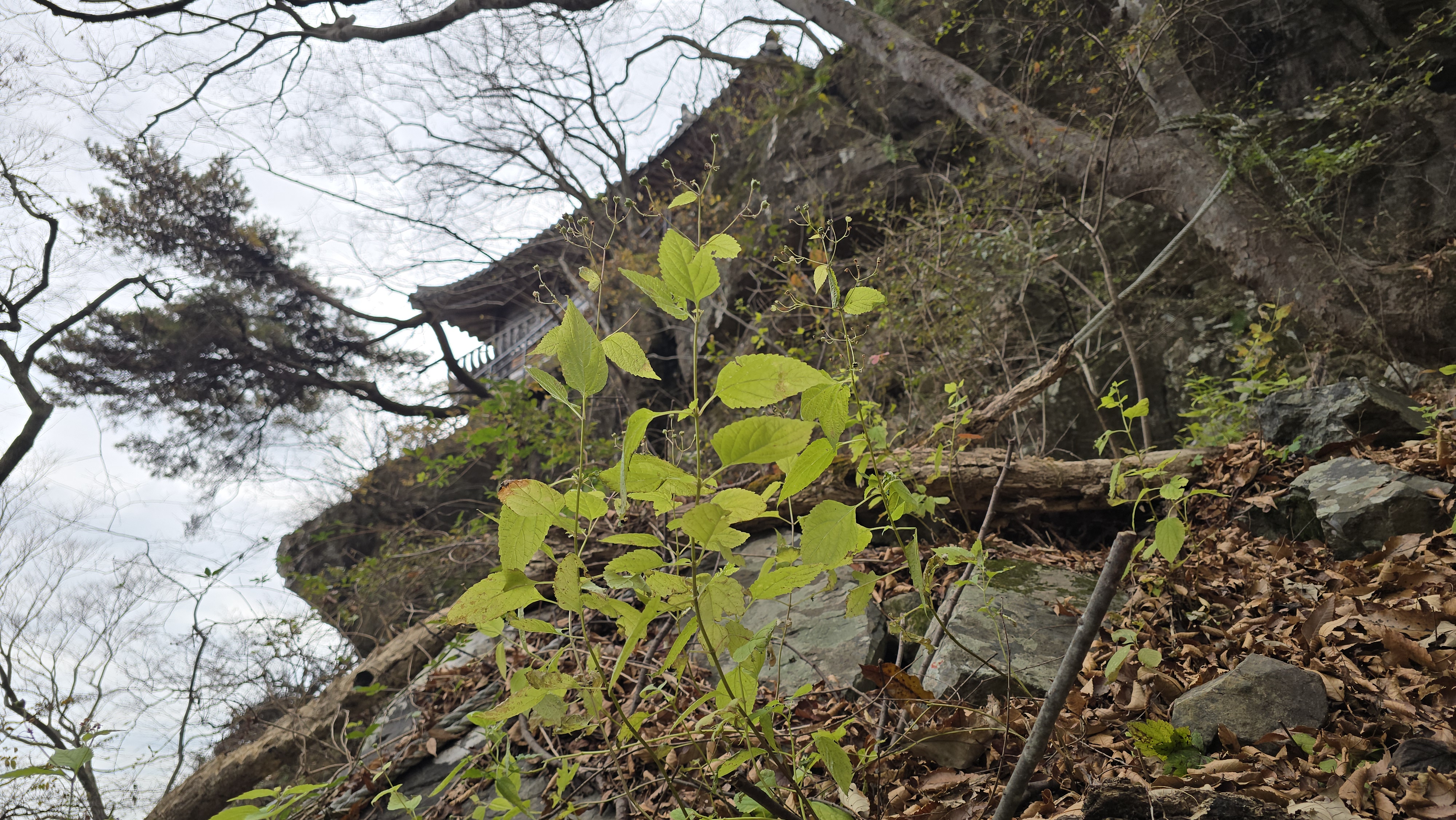 문수암이 보이는 암벽에 다다를 때 누린내풀 열매가 보인다.