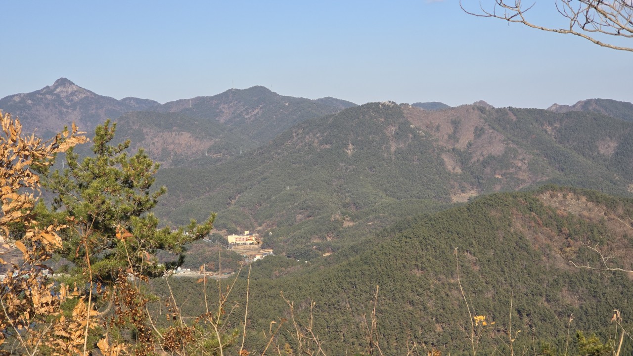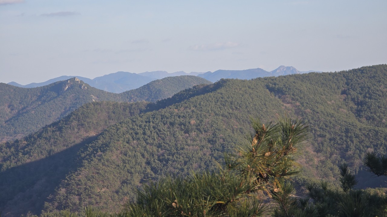 봉화산에서 하산길에는 긴 능선과 봉우리가 보인다.