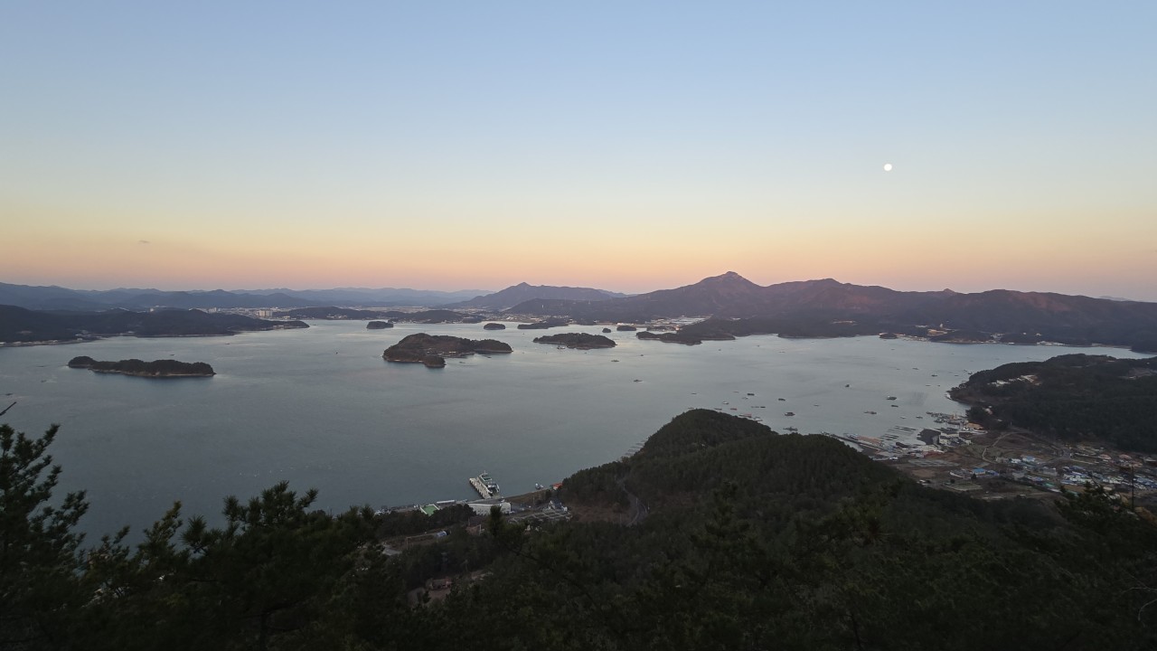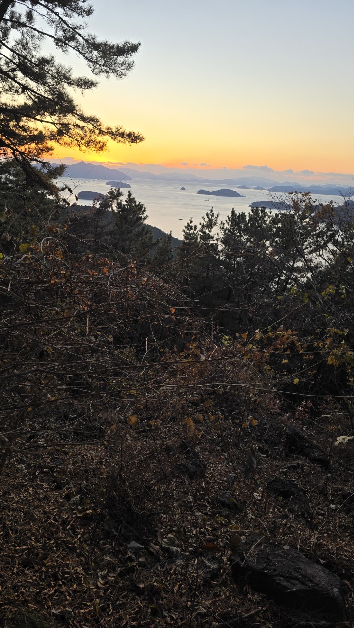 하산 막바지 전망대에서 사량도 일몰을 본 것은 수확이다.