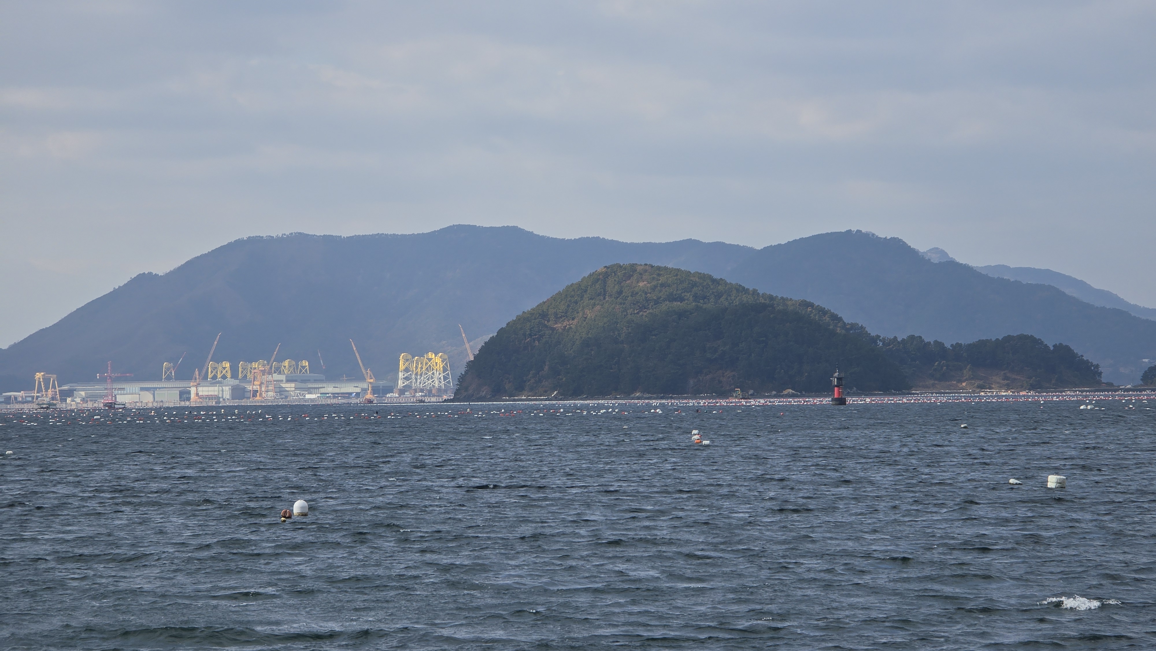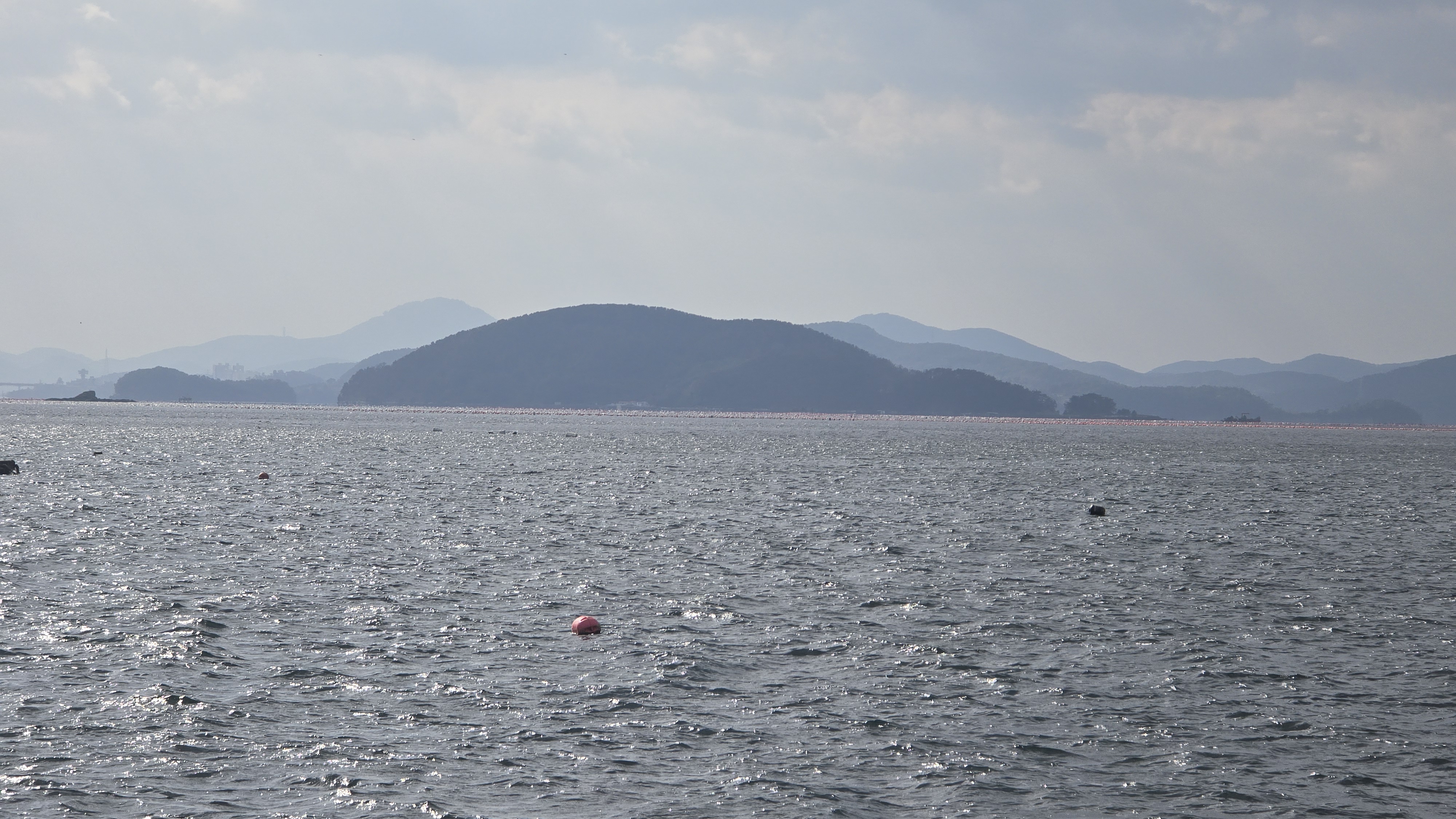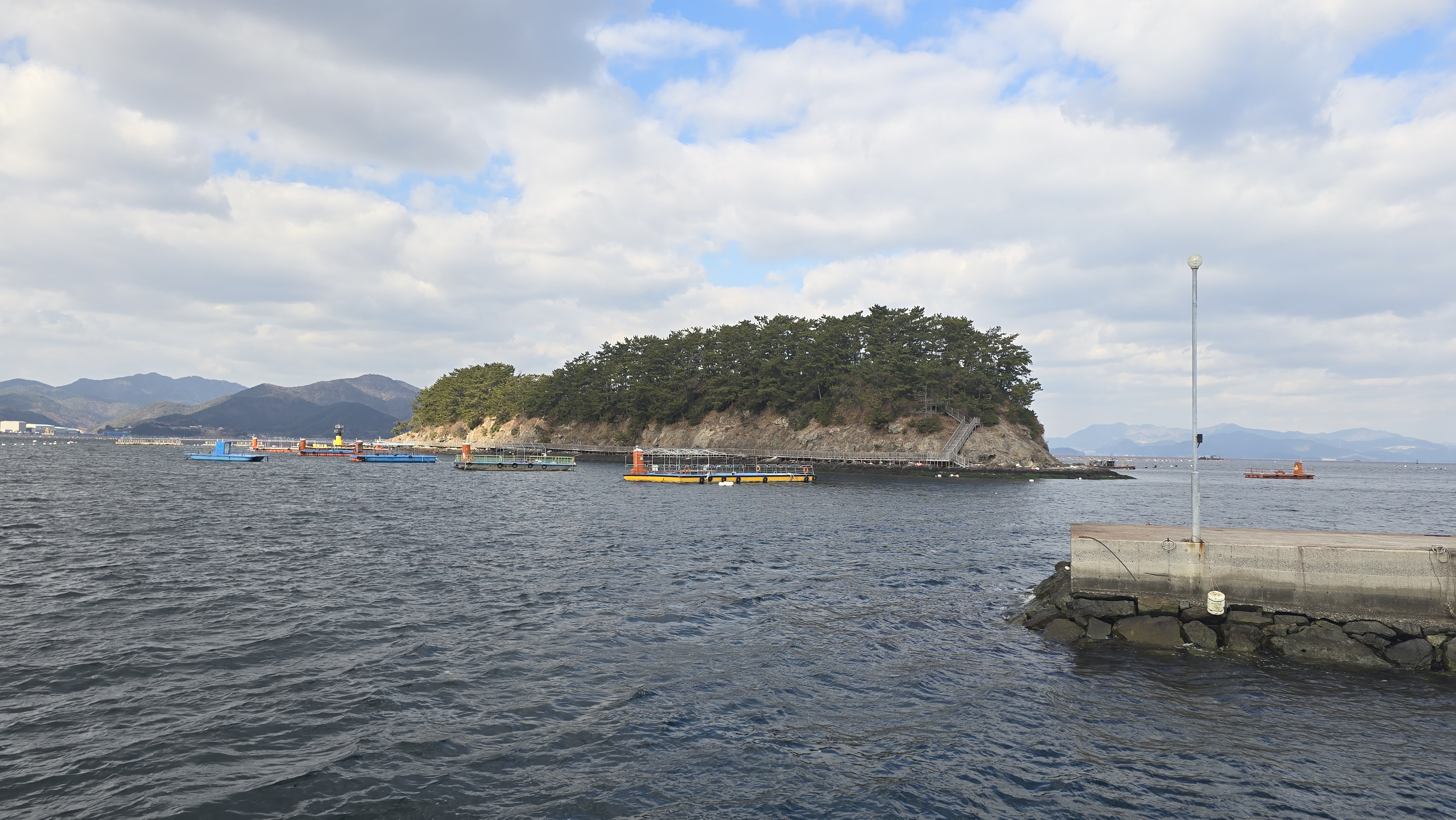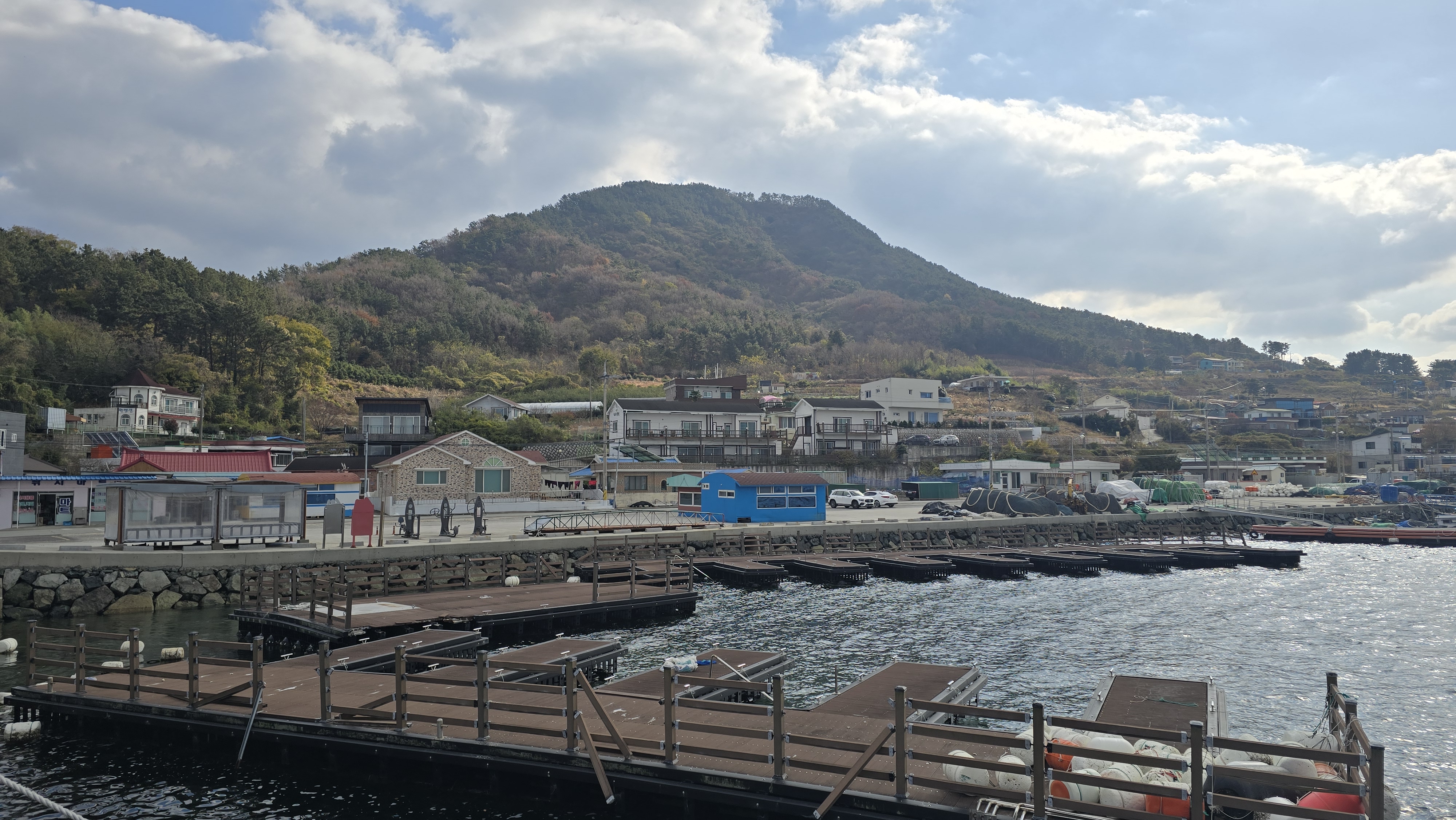 계도항에서 바라보는 벽방산, 면화사 풍경이 좋았다.