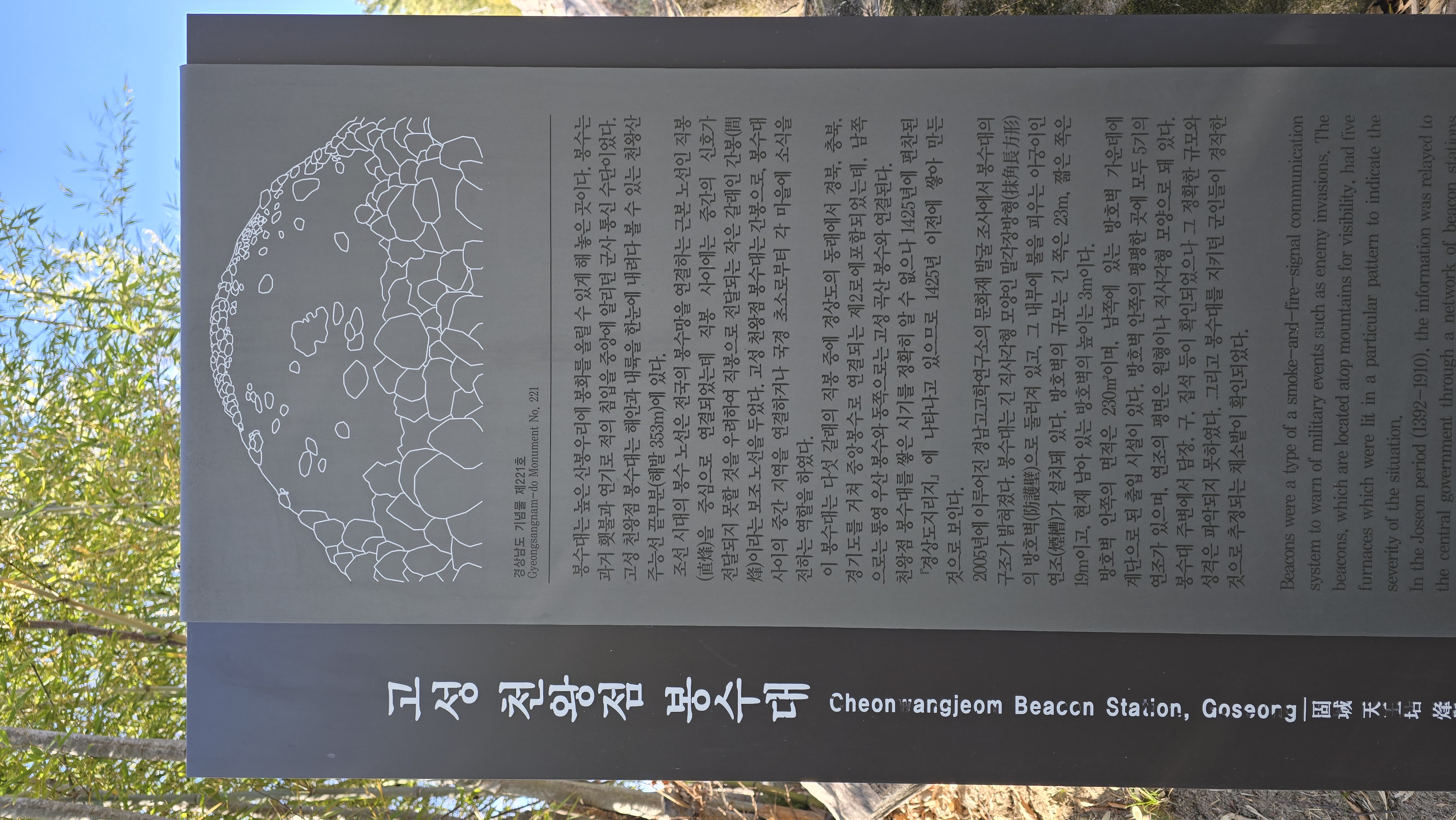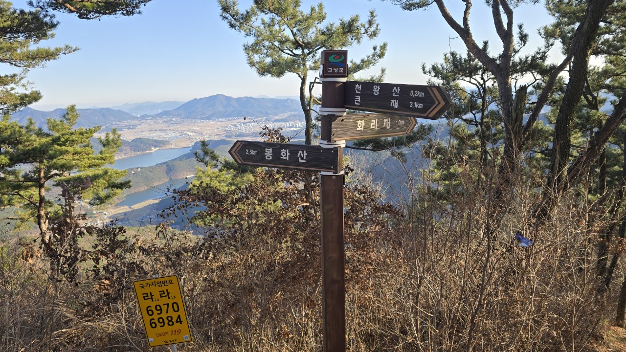 고성 천왕점 봉수태 안내판이 있다.
