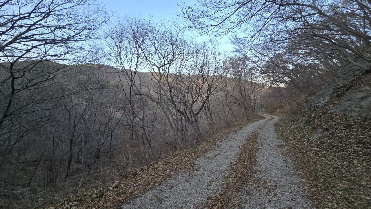 되돌아가기 싫어서 반대 방향으로 내려가 임도로 하산했다.