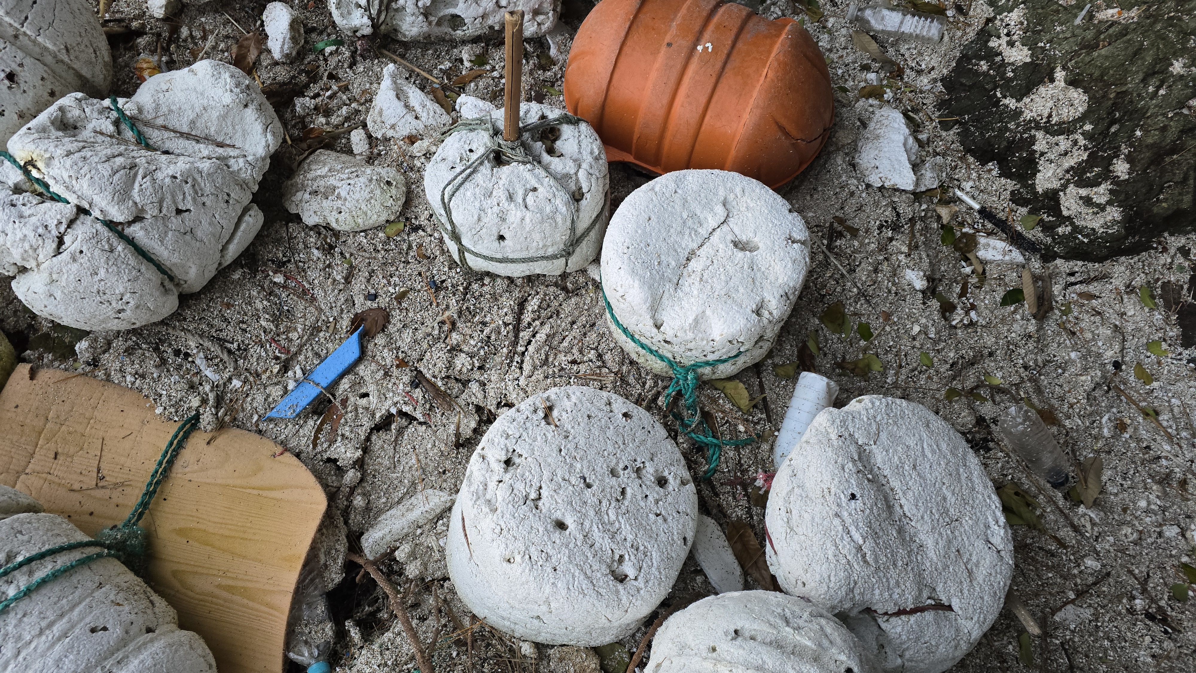 마을 뒷편에서 본 해상 쓰레기 중에 스치로풀이 모래 알갱이처럼 흩어져