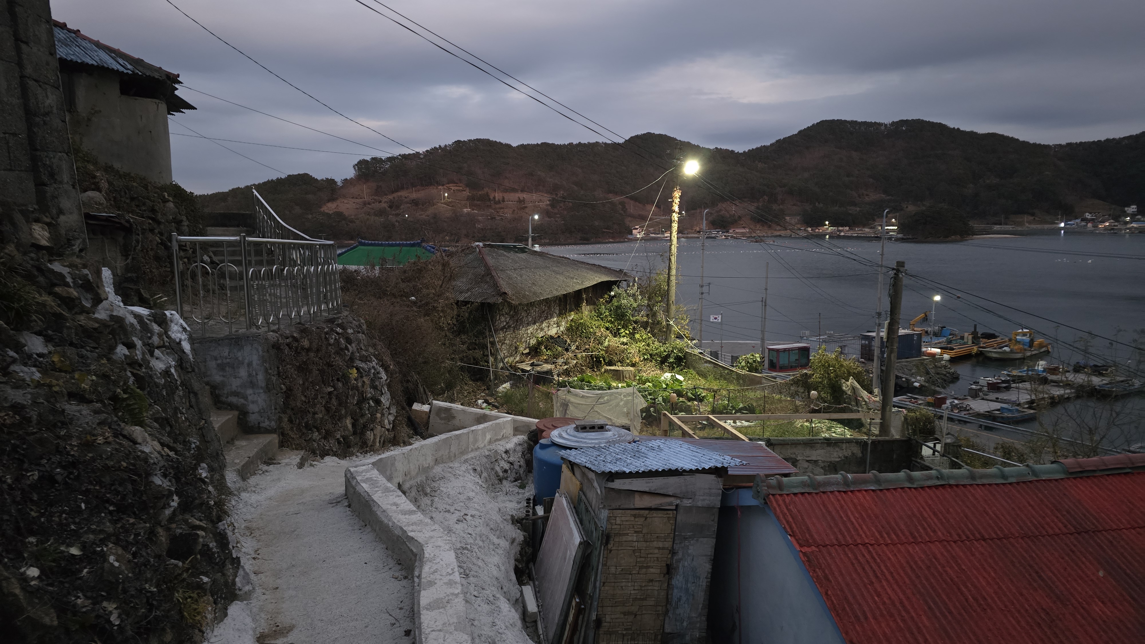 섬을 한 바퀴 돌아 함박마을에 다시 오니 불 켜진 작은 마을이 되어 있었다.