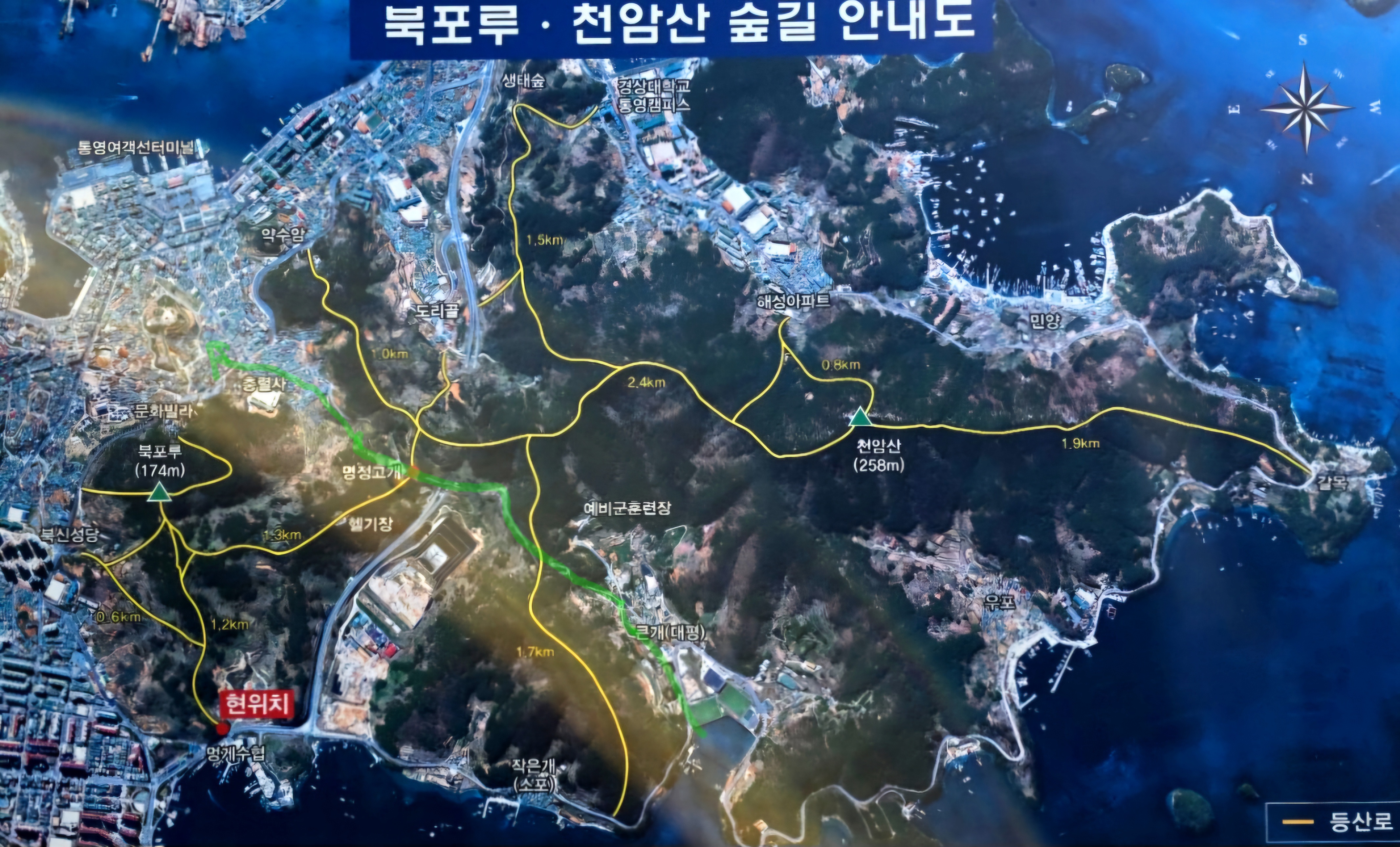 그 지하로 통영터널이 관통하여 통영의 교통난이 많이 해소되었다.