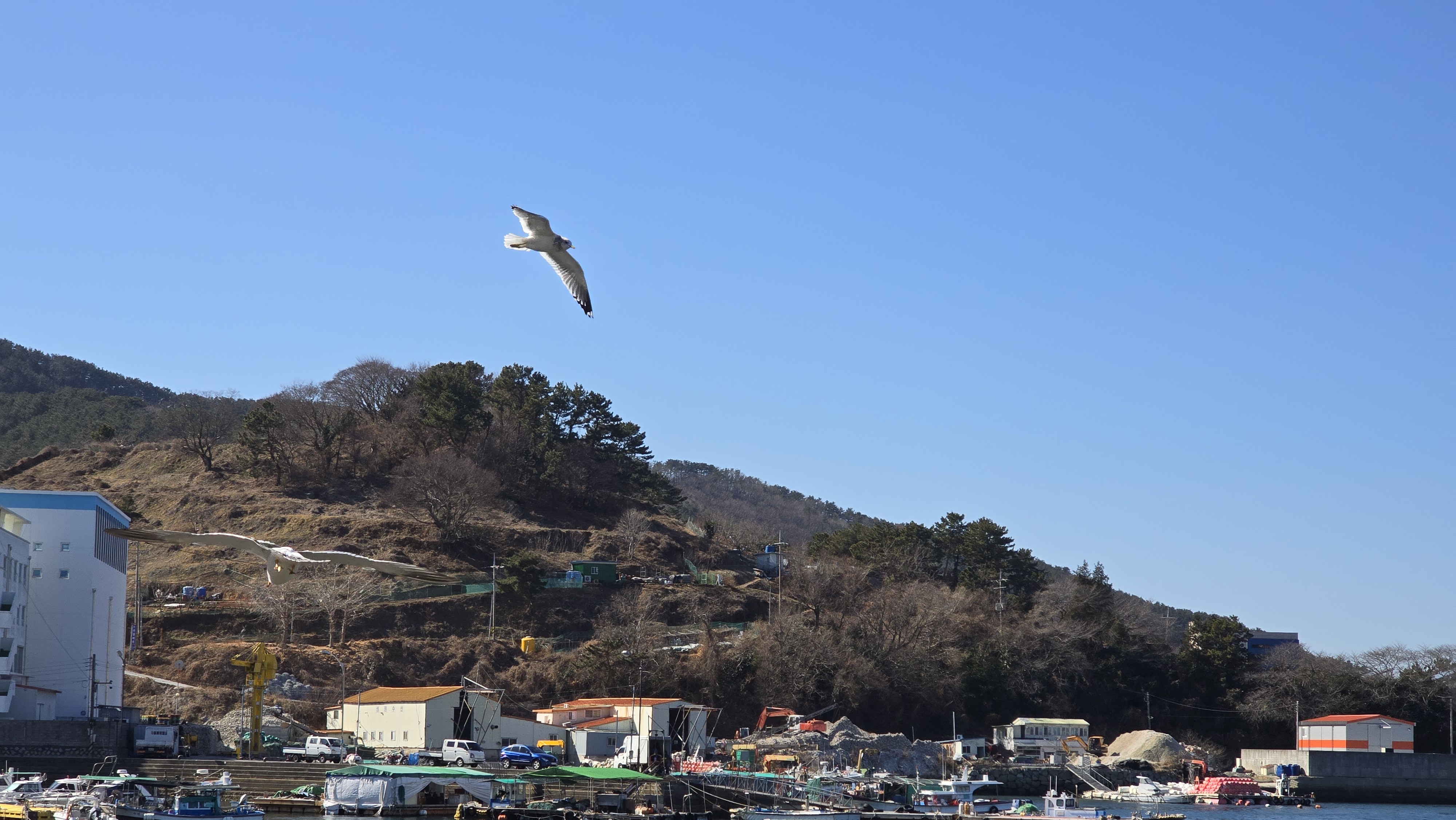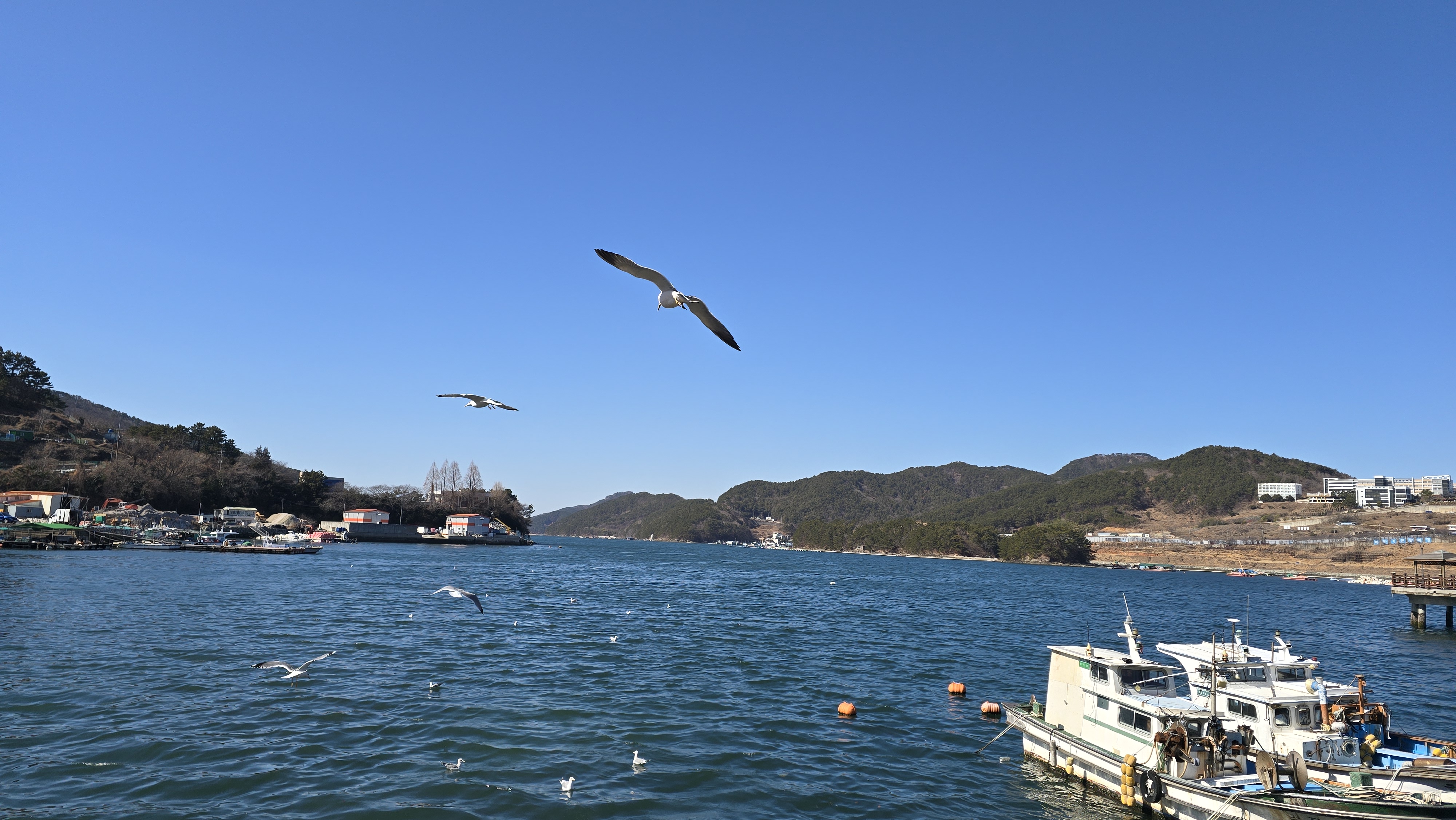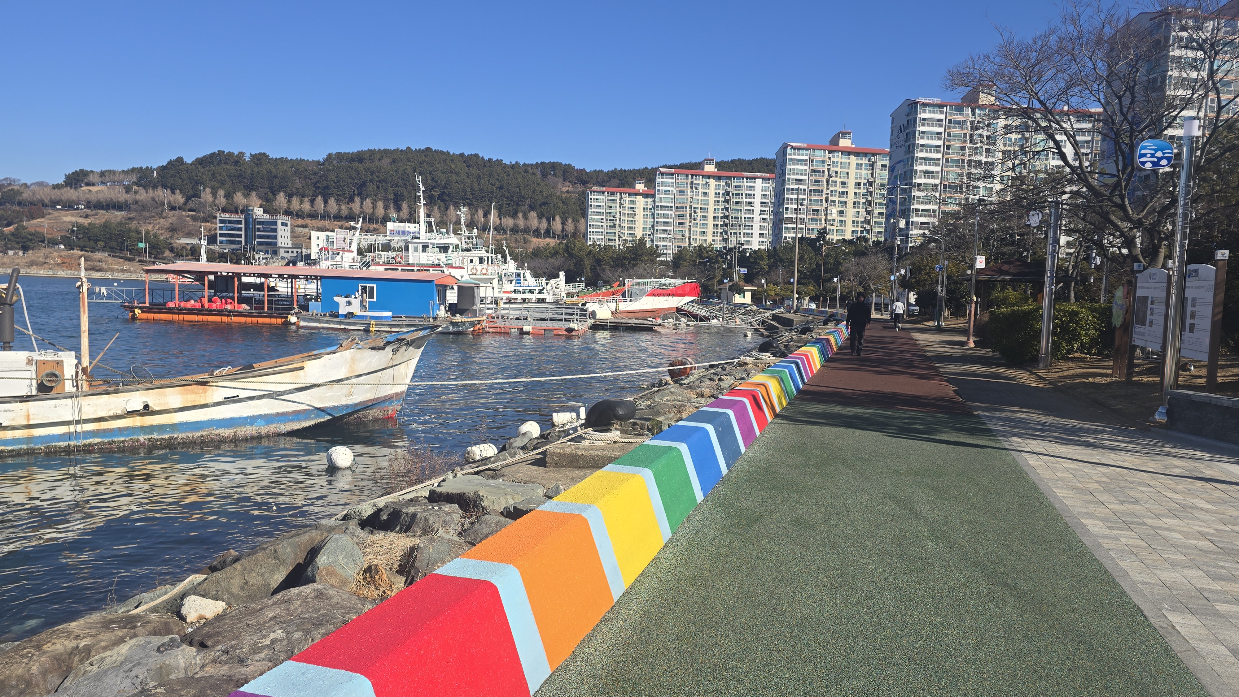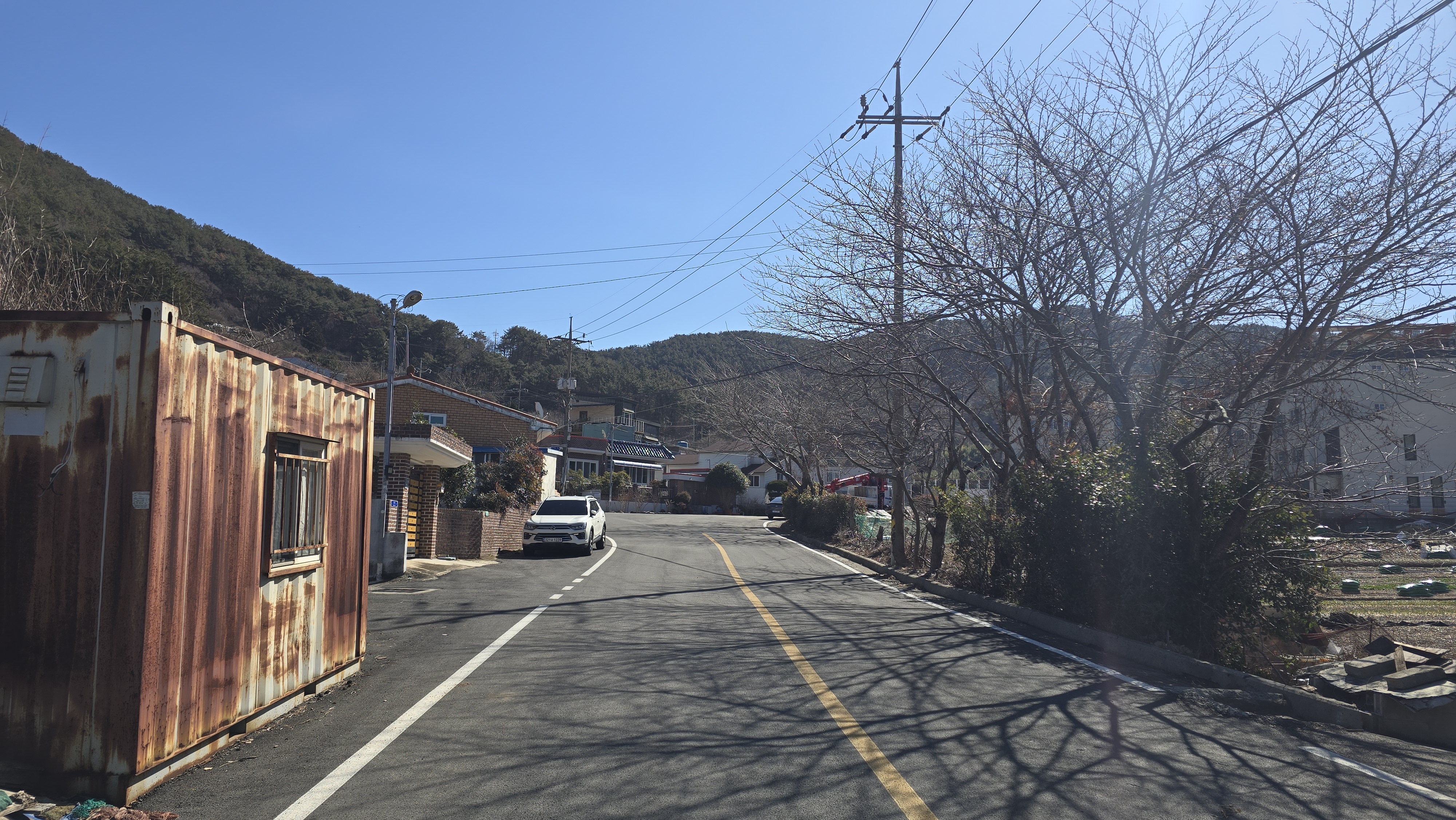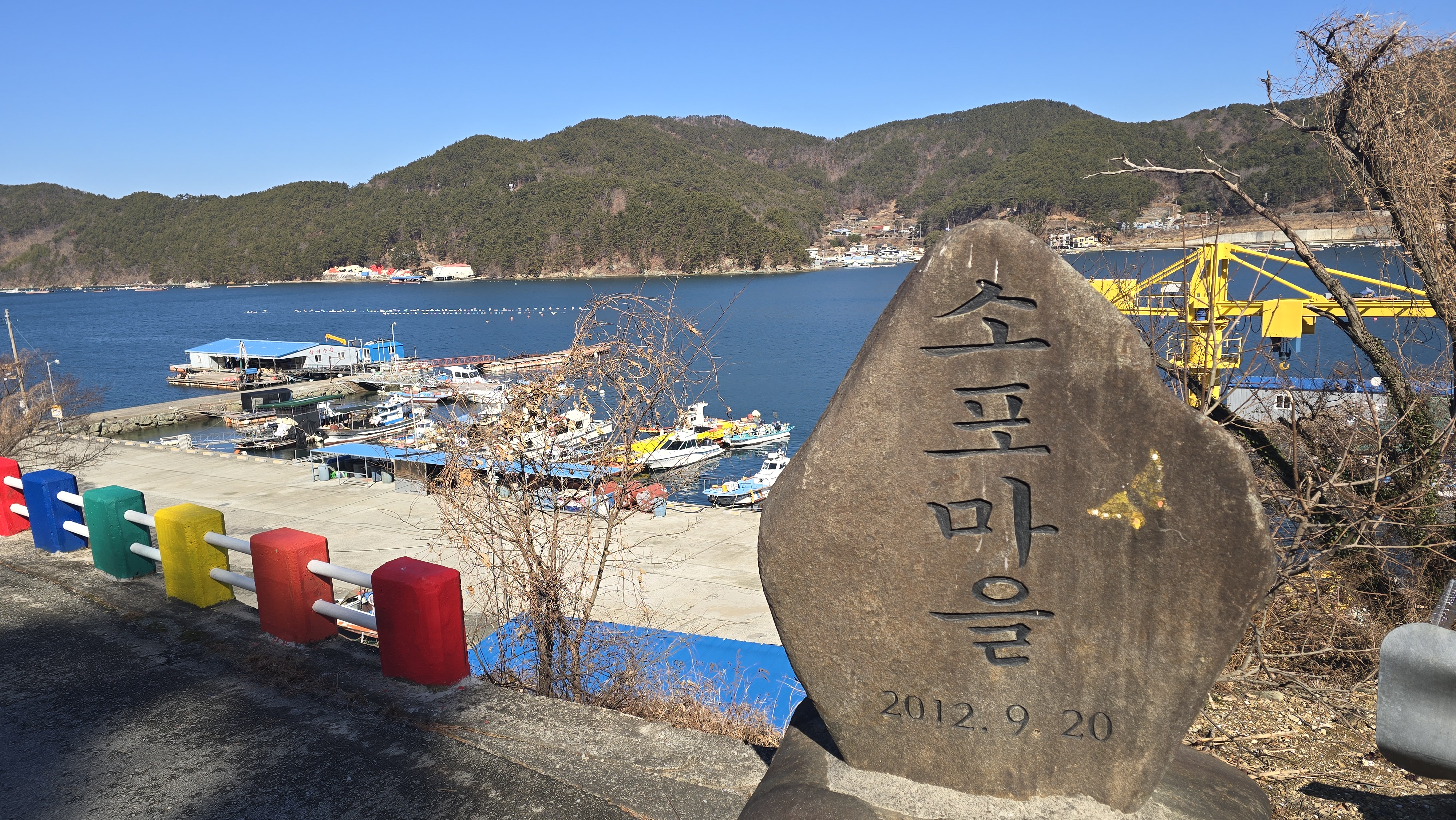 맑고 추운 날씨에 왕복한 후 평인해안로를 걷고 명정고개에 닿았다.