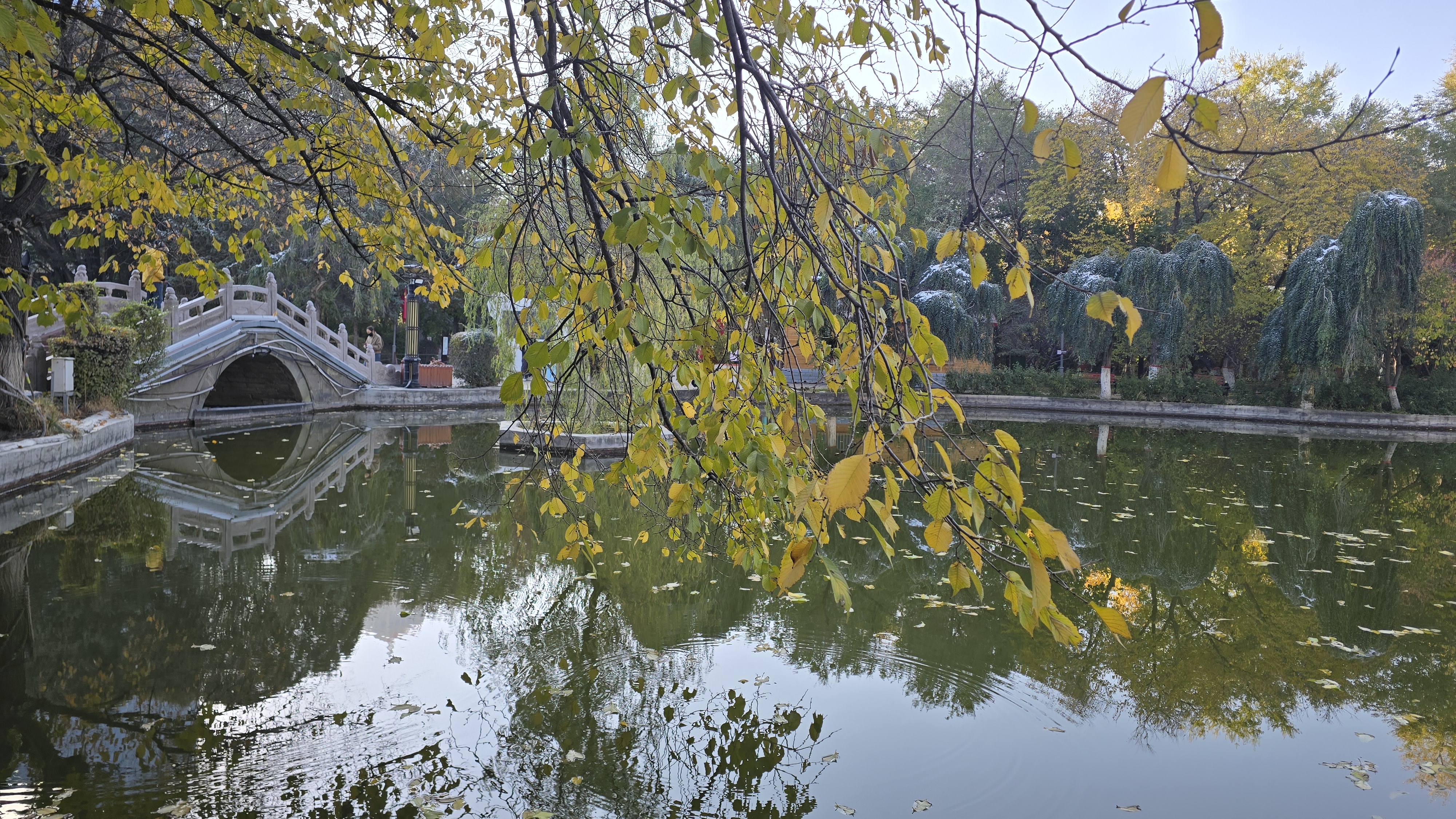 전날에 내린 눈이 쌓여 겨울 분위기이다.