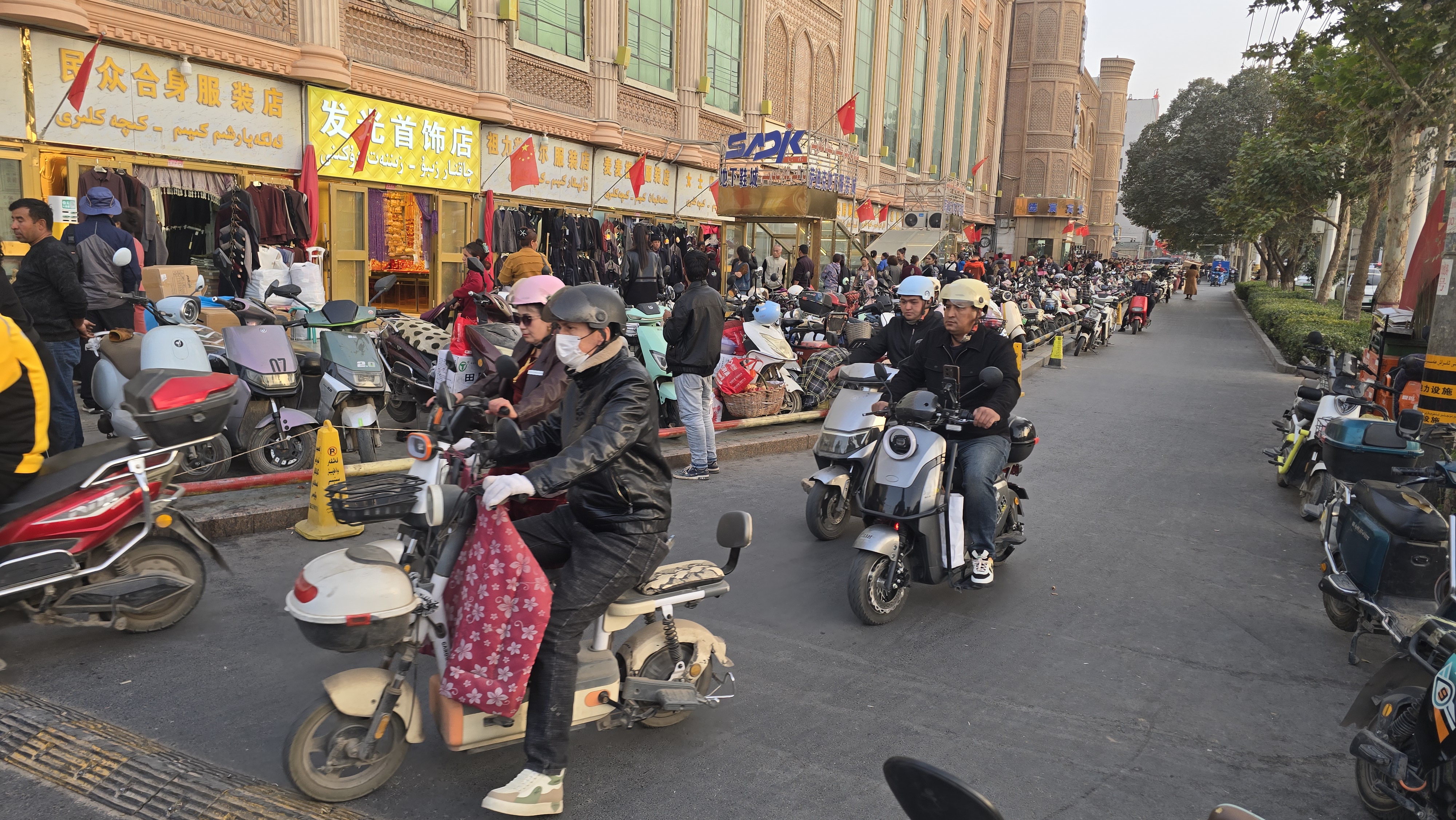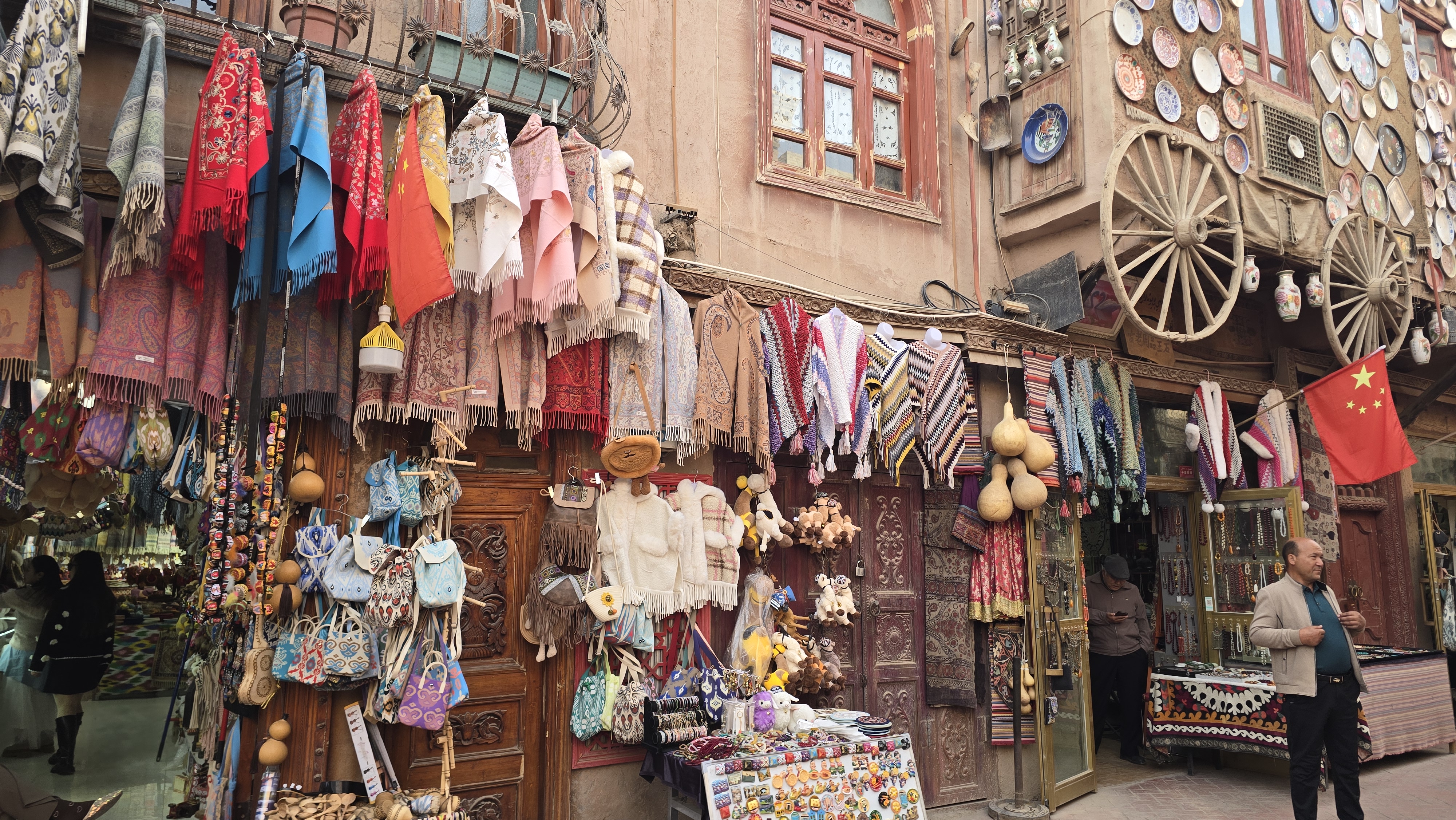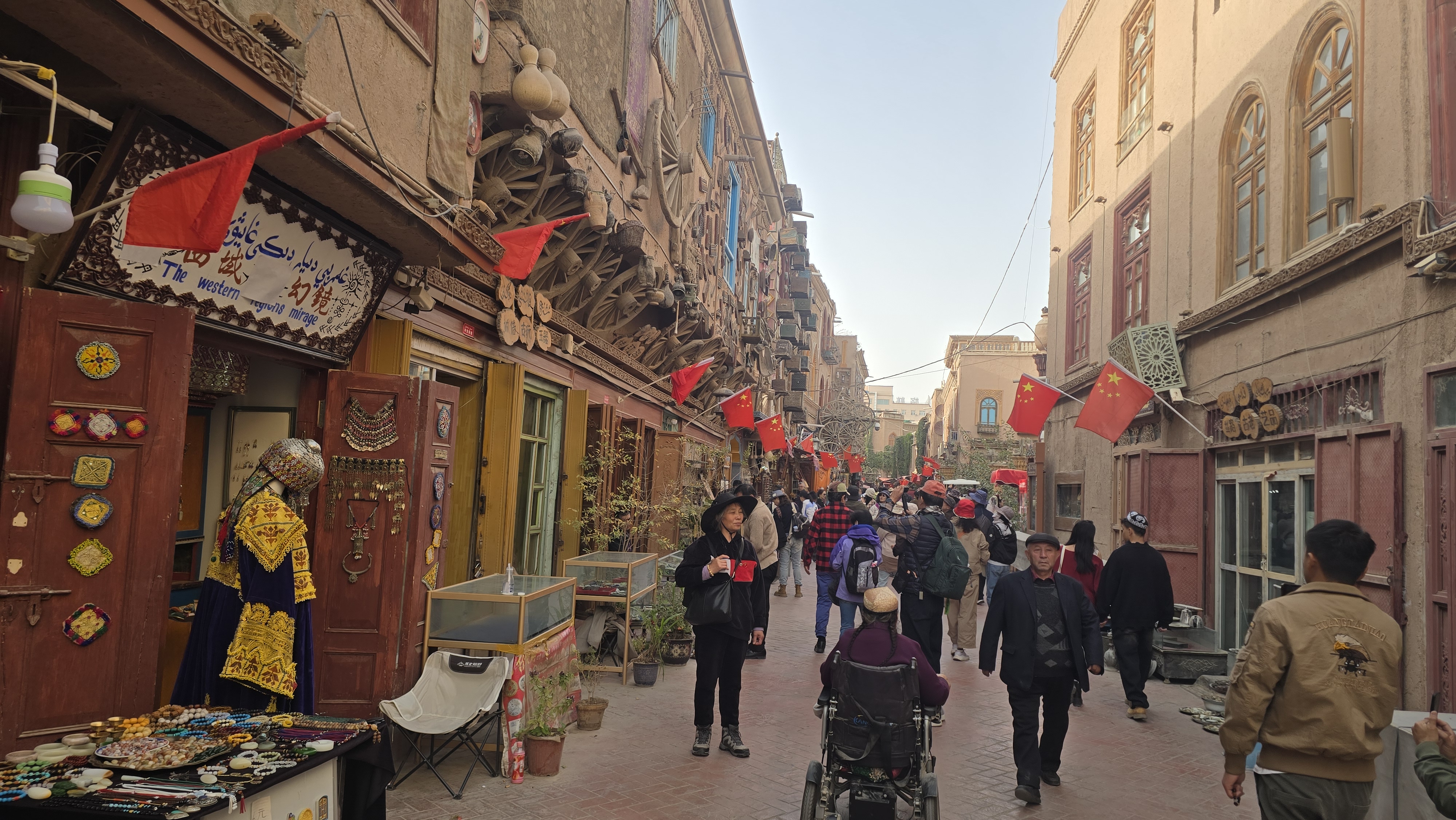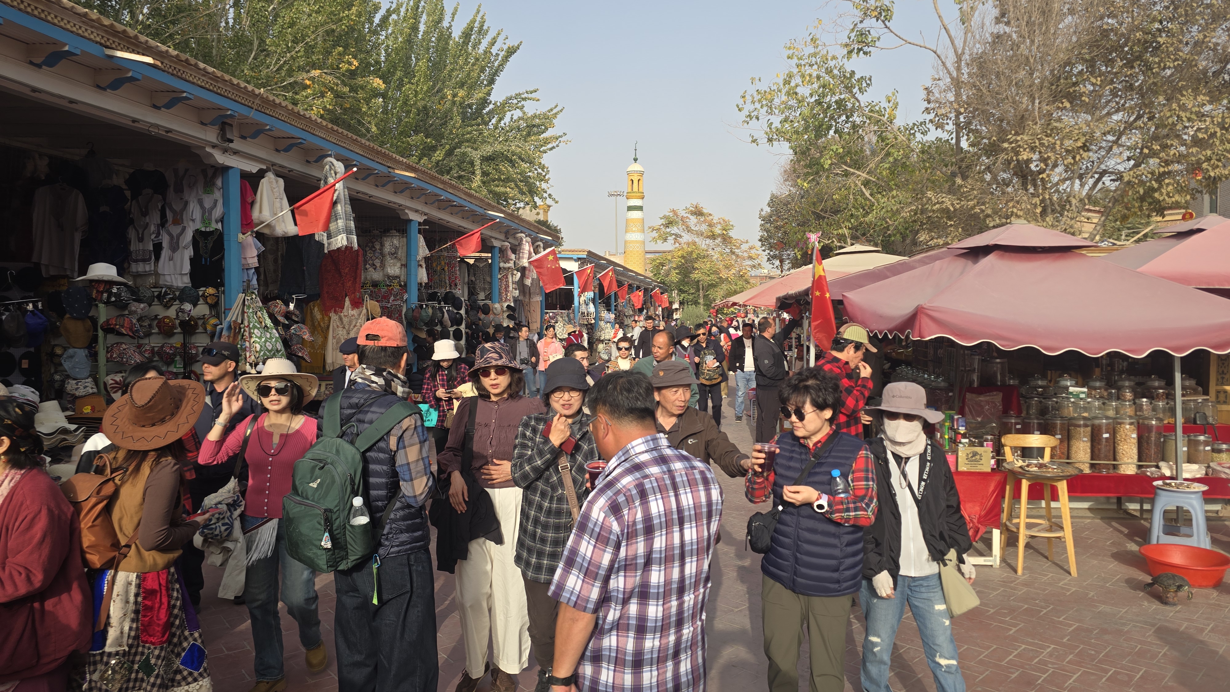 위구르인 가게마다 빨간 오성기가 걸려있었다.