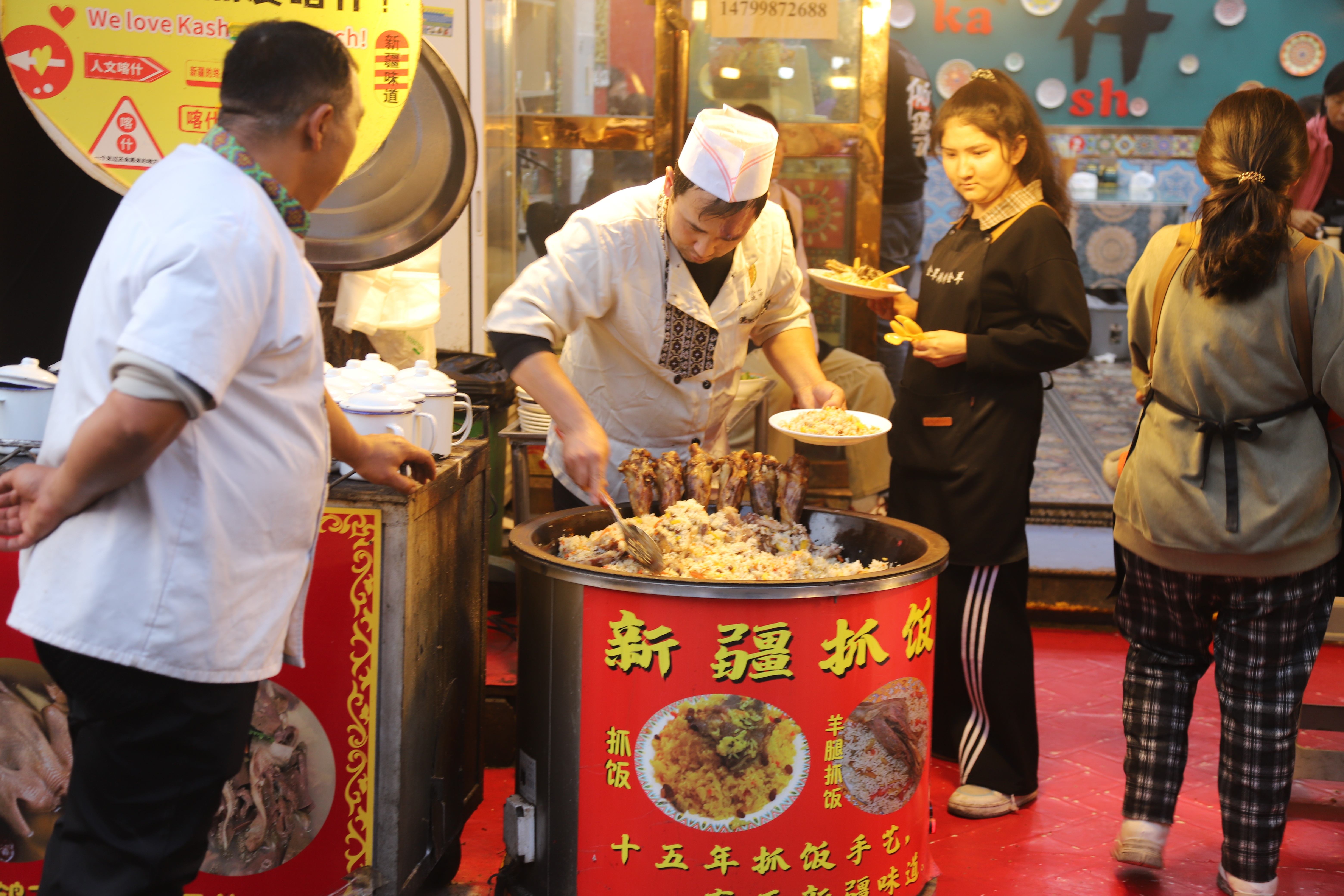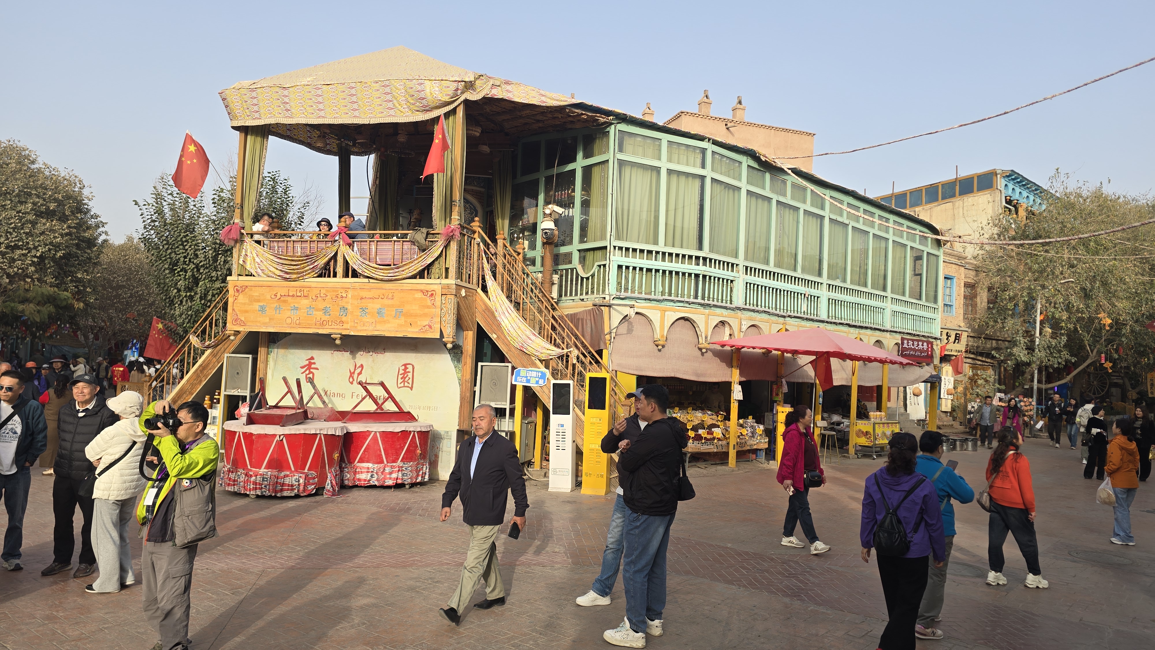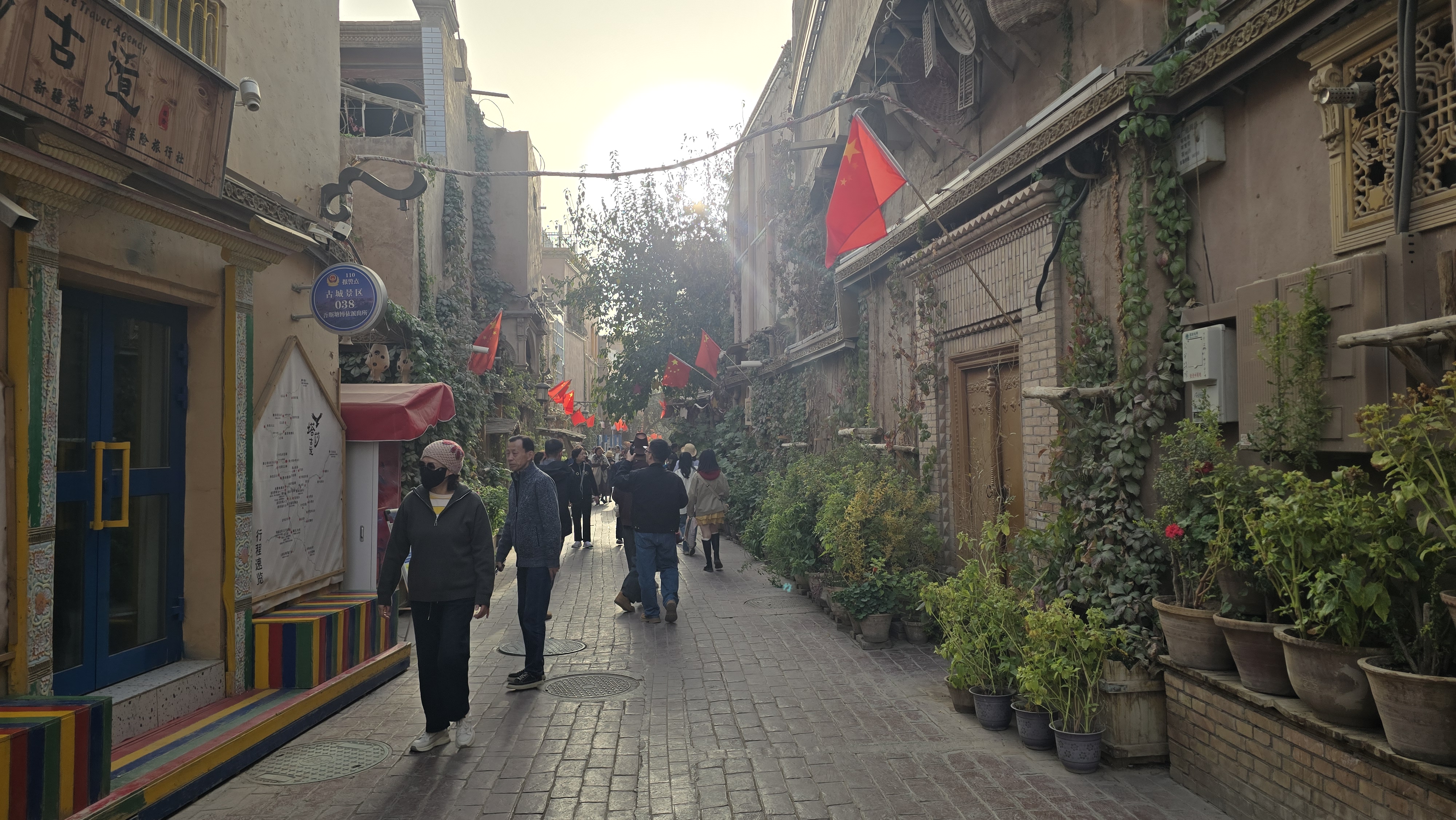 위구르인 가게마다 빨간 오성기가 걸려있었다.