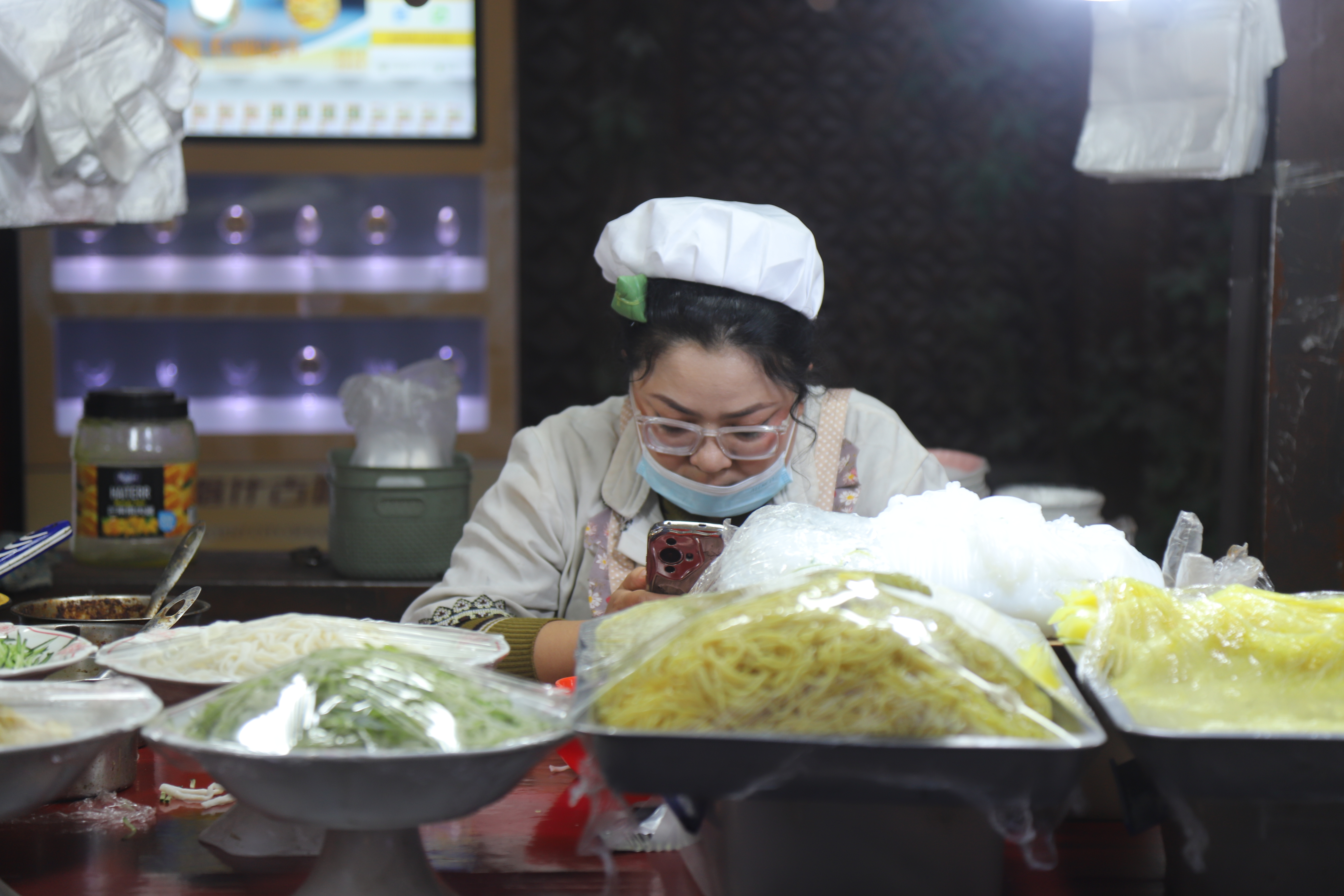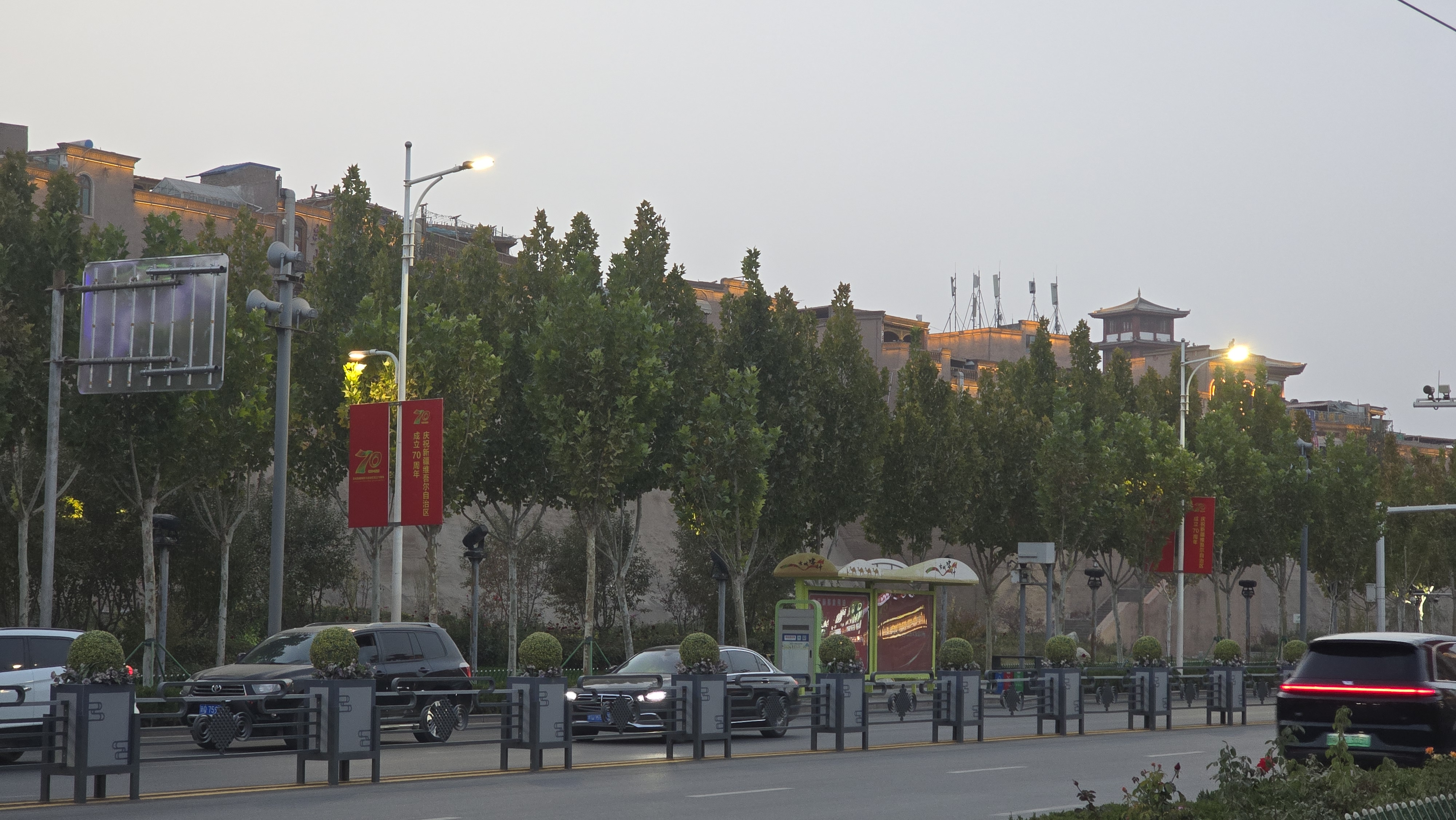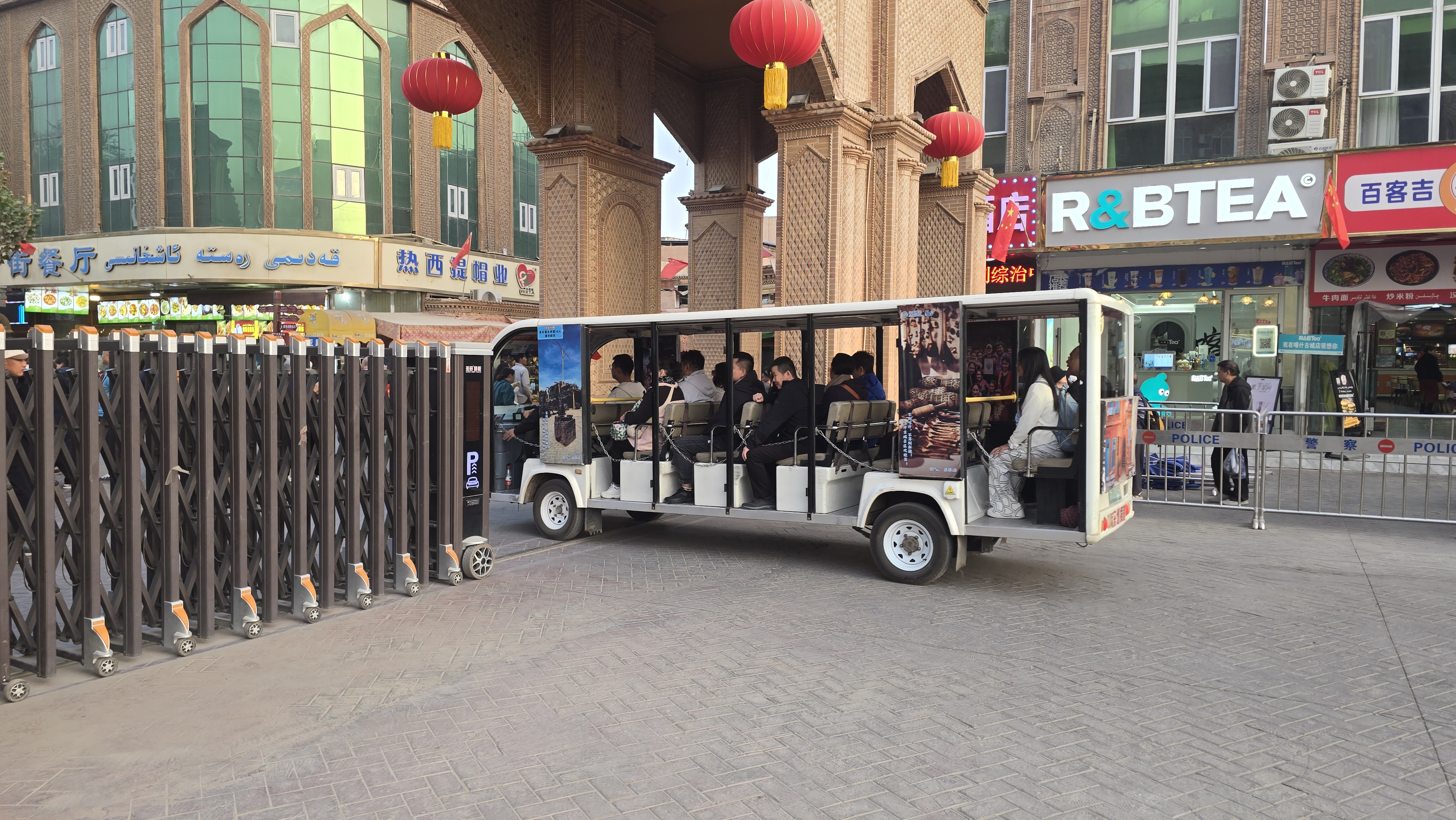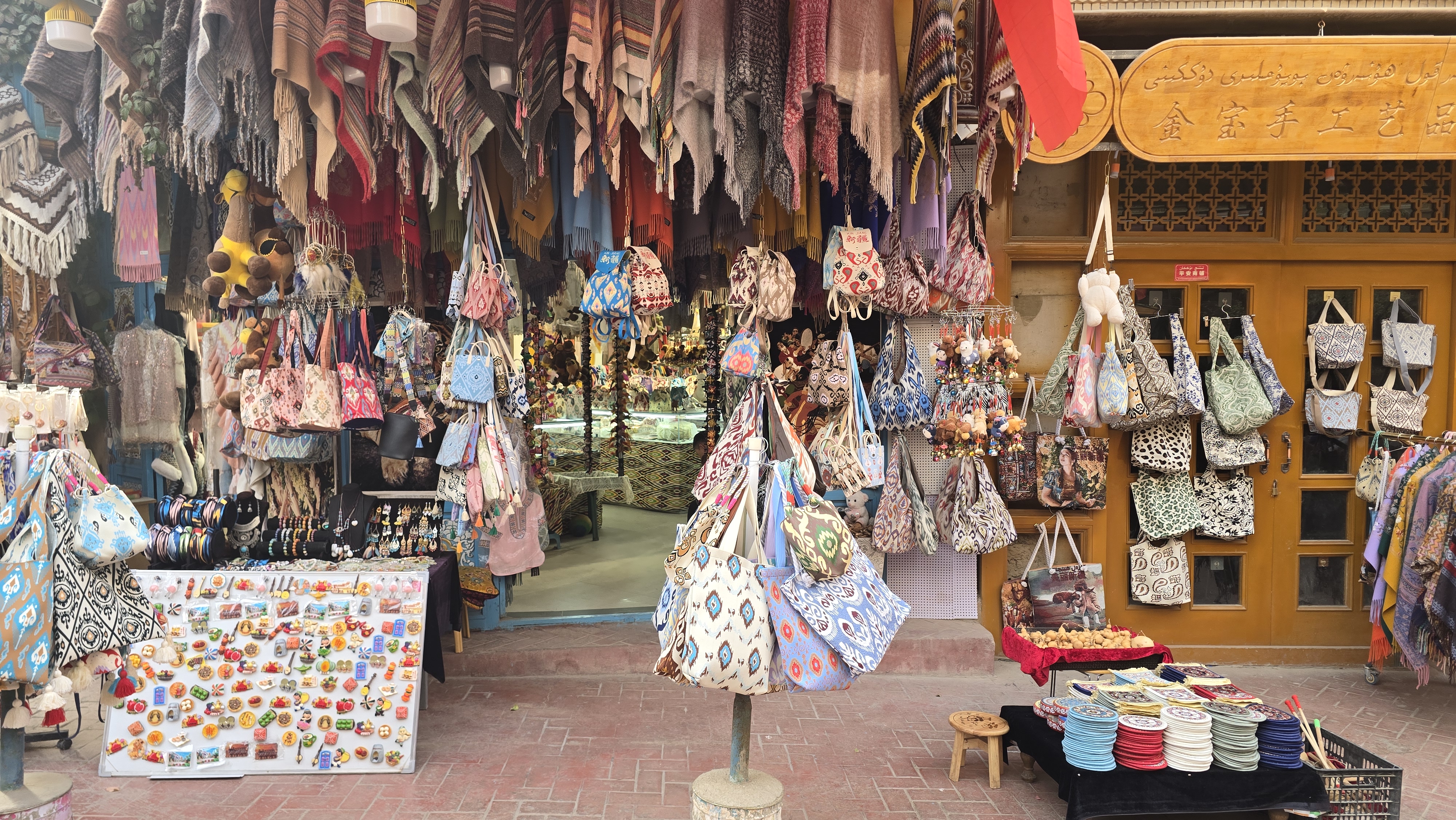 위구르인 가게마다 빨간 오성기가 걸려있었다.