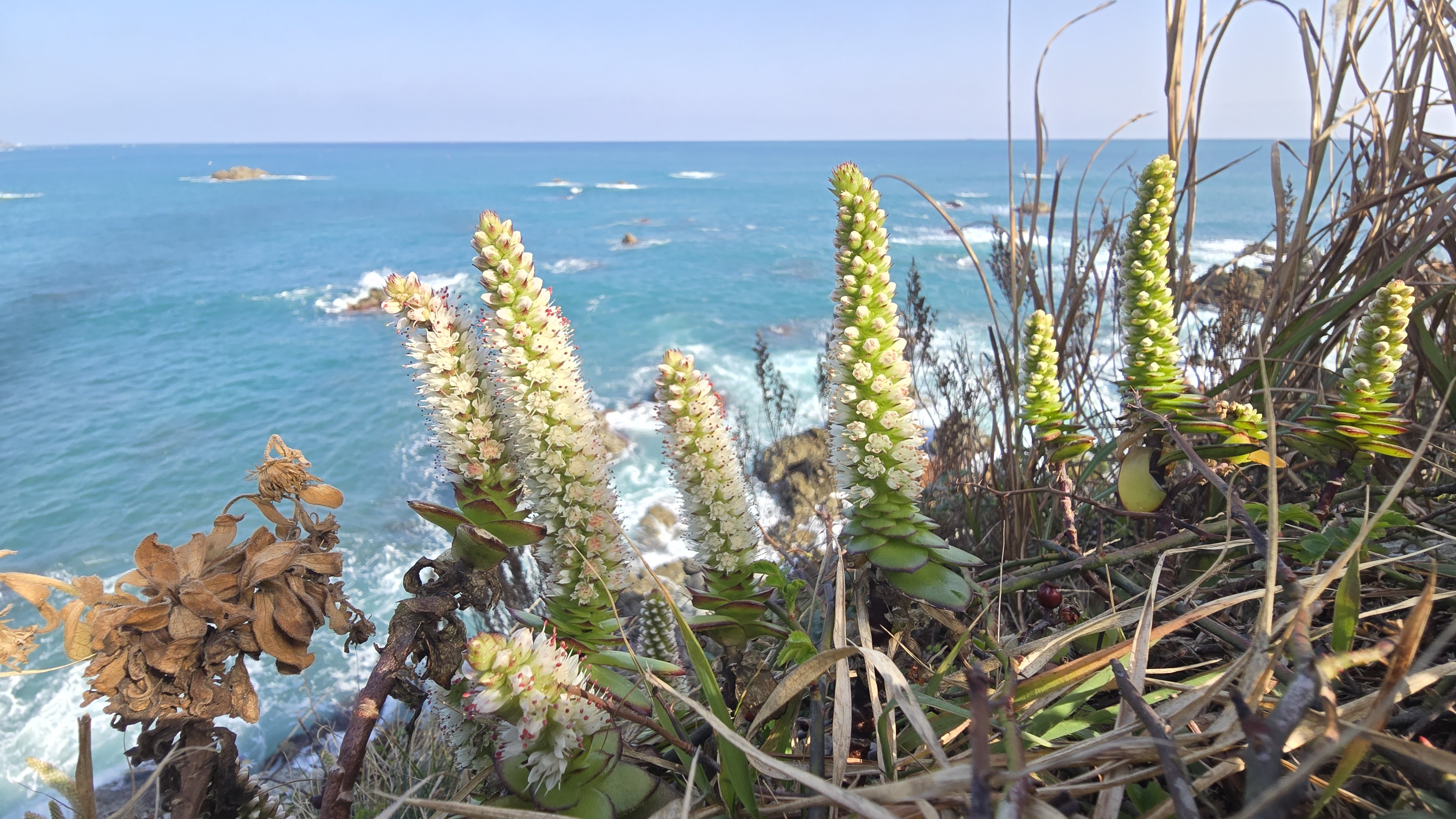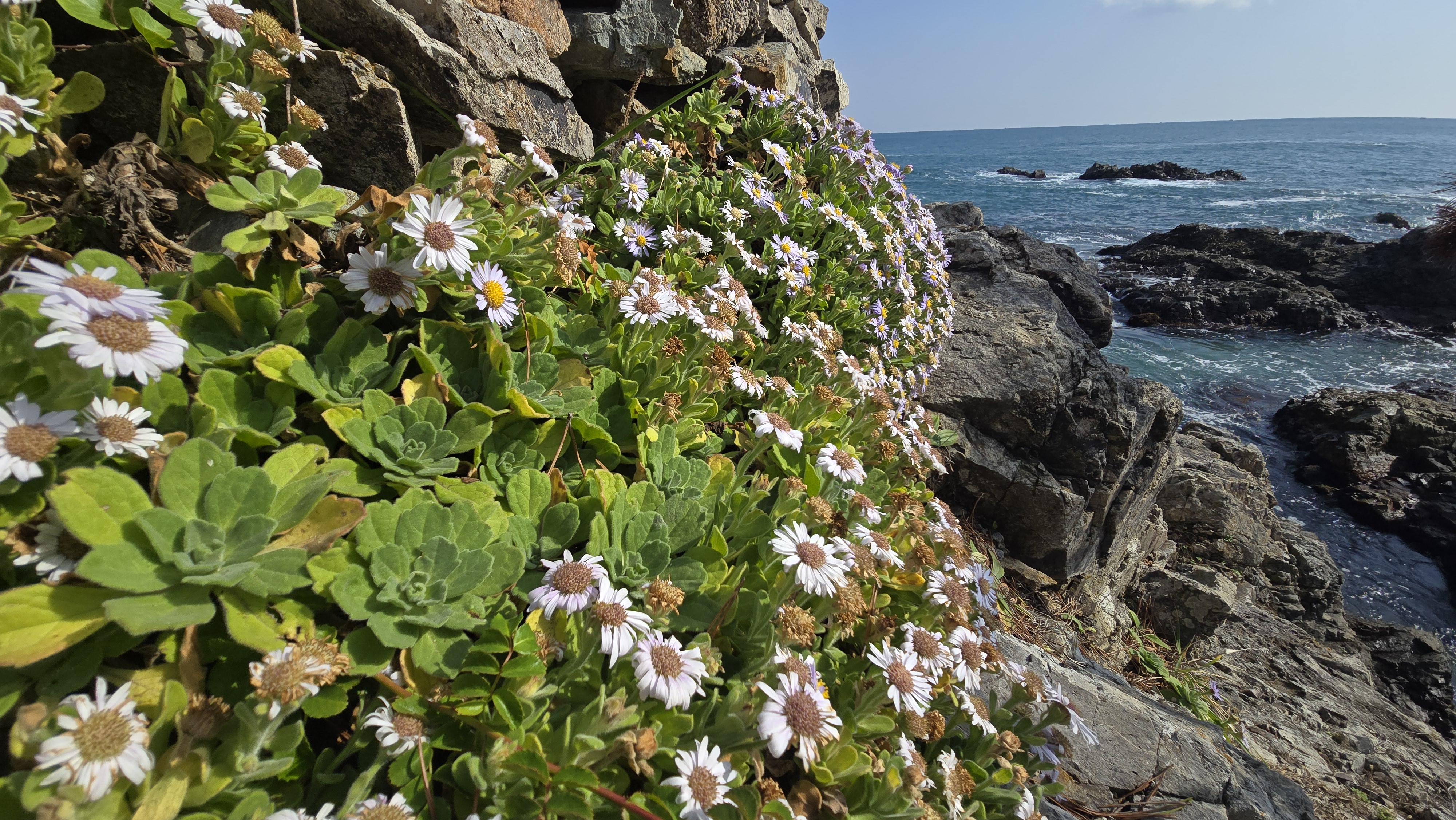 해국과 둥근바위솔에 바다를 배경으로 너무도 좋다.