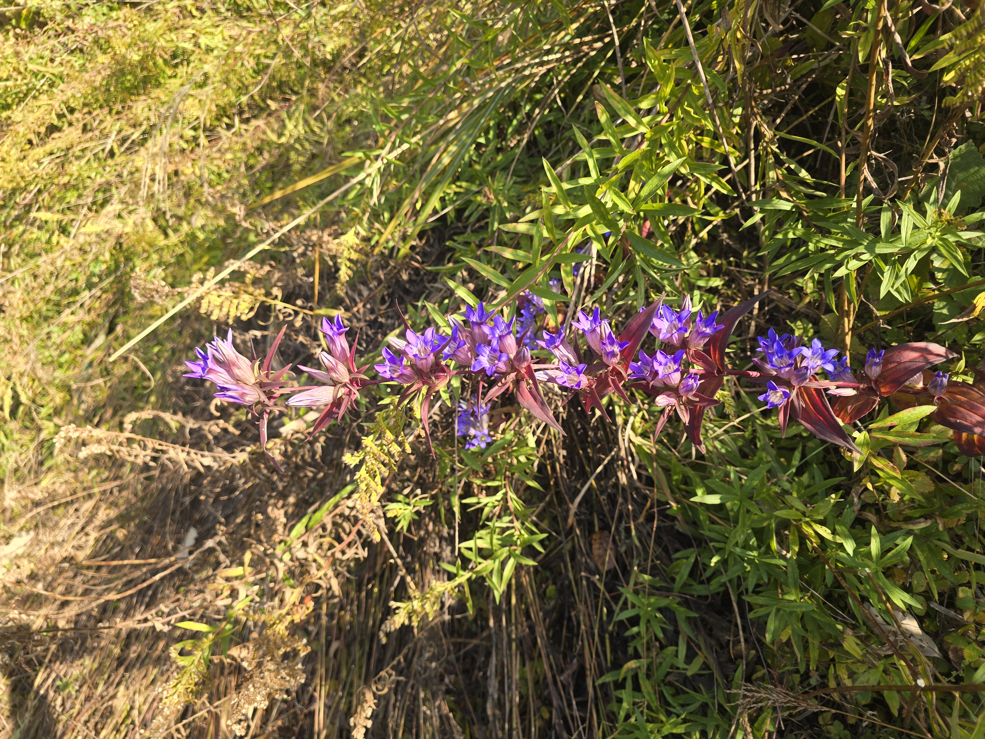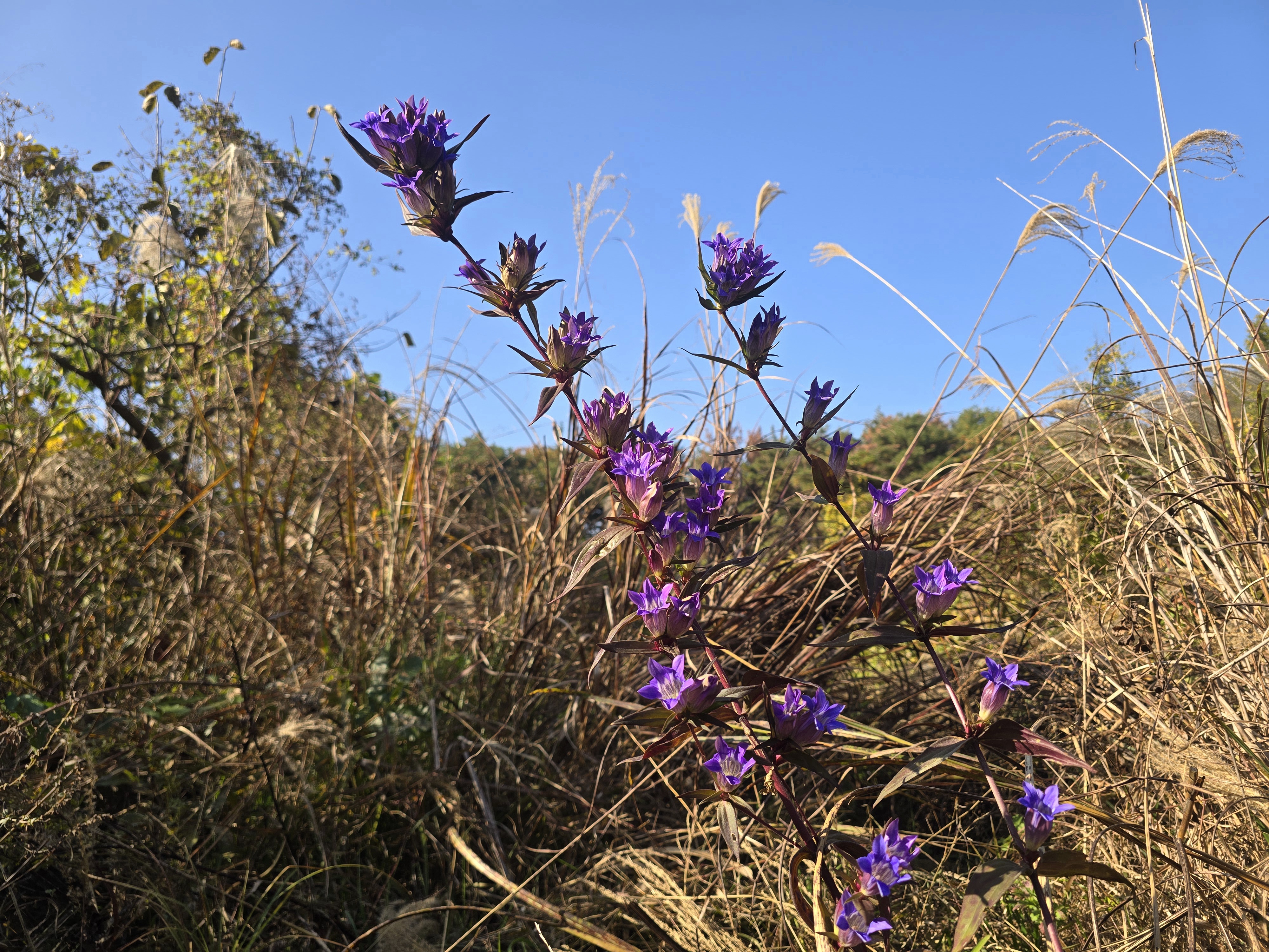 억새 숲에 용담들이 서늘해 지는 가을을 아름답게 꾸민다.