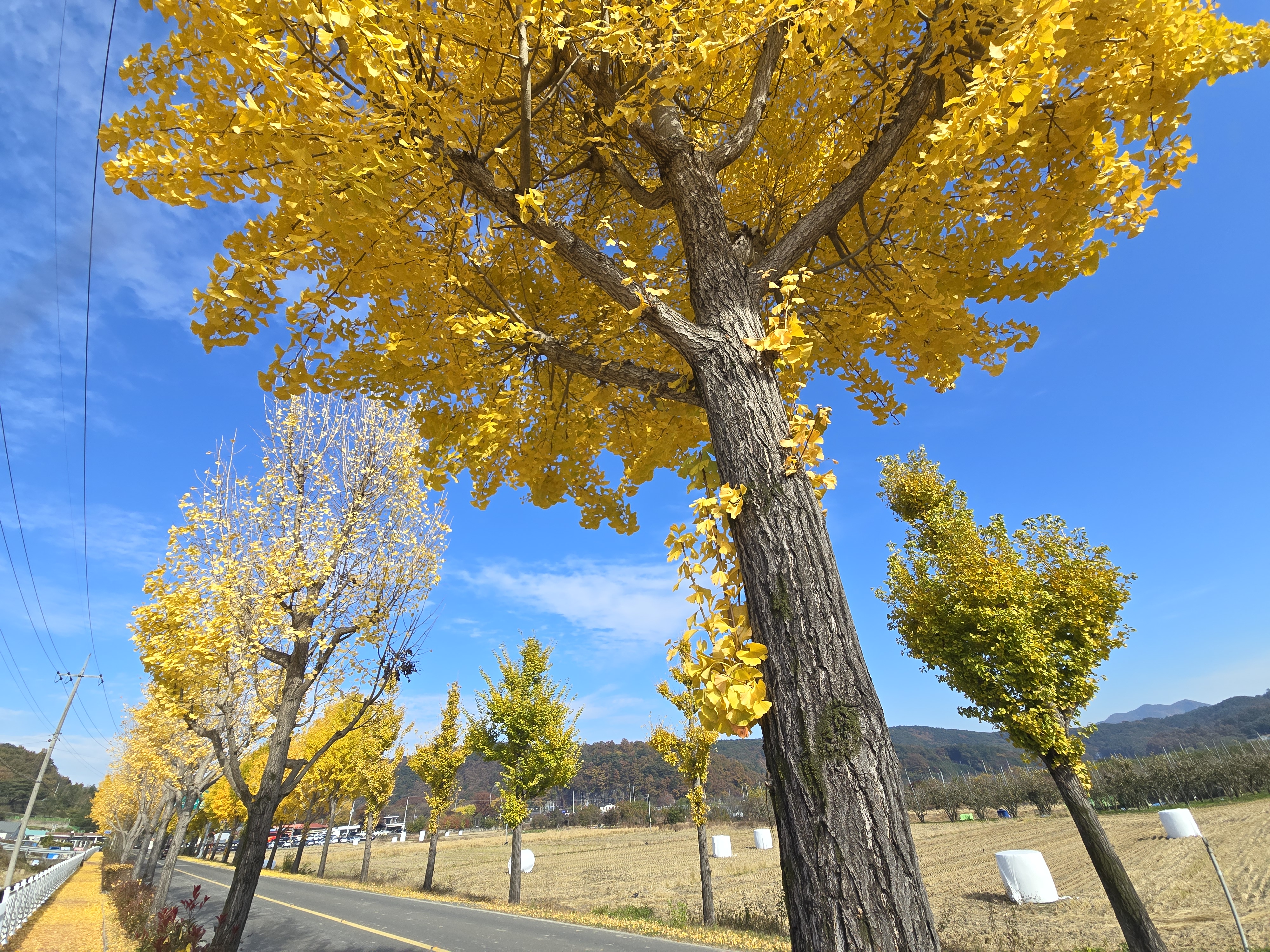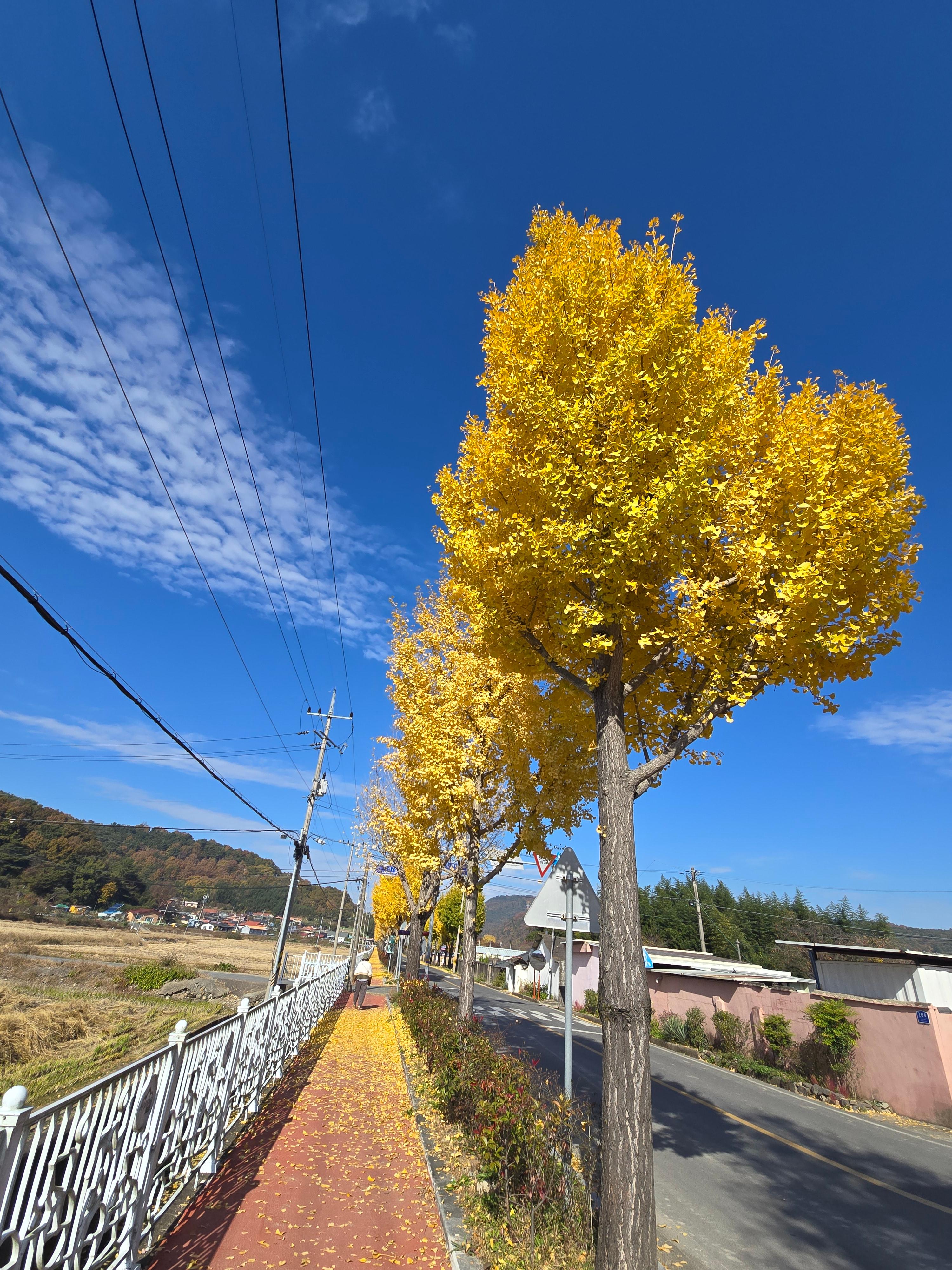 푸른 하늘에 노랑 은행나무가 더없이 아름다운 풍경이다.