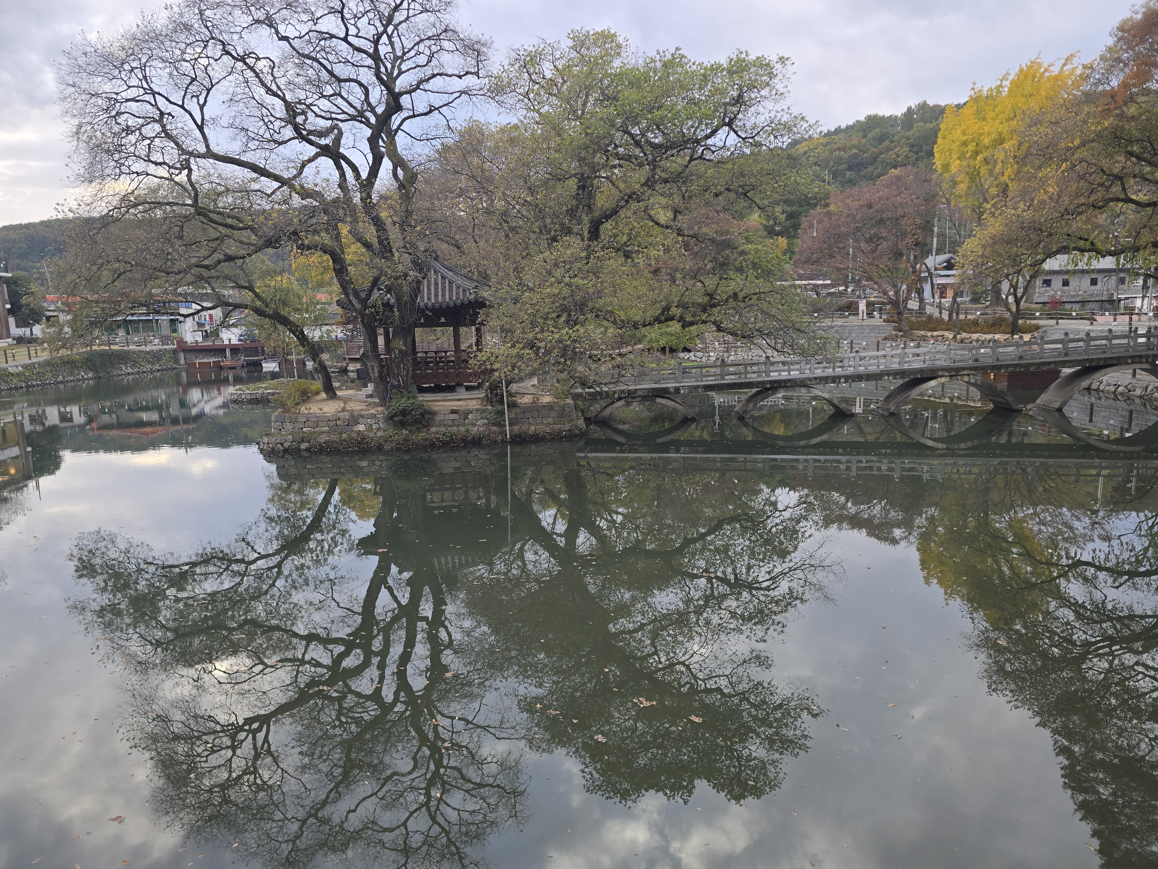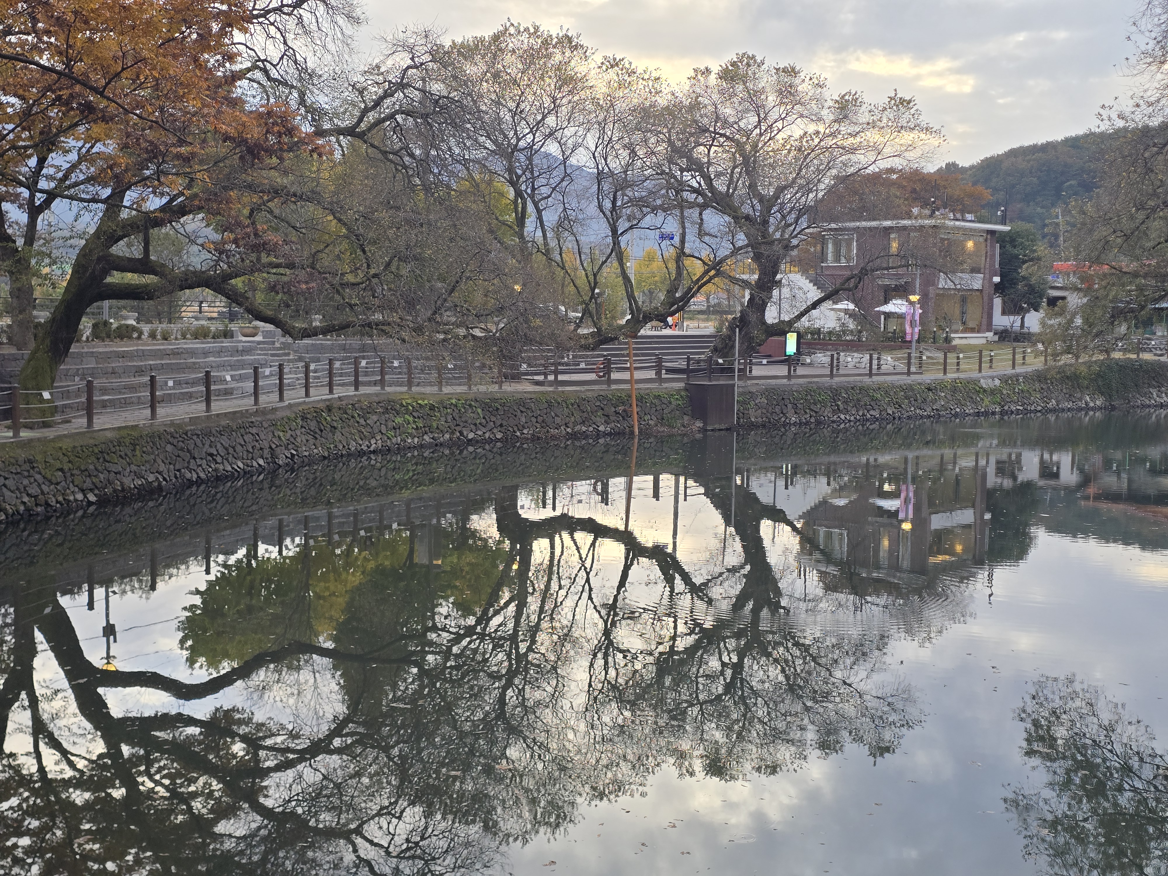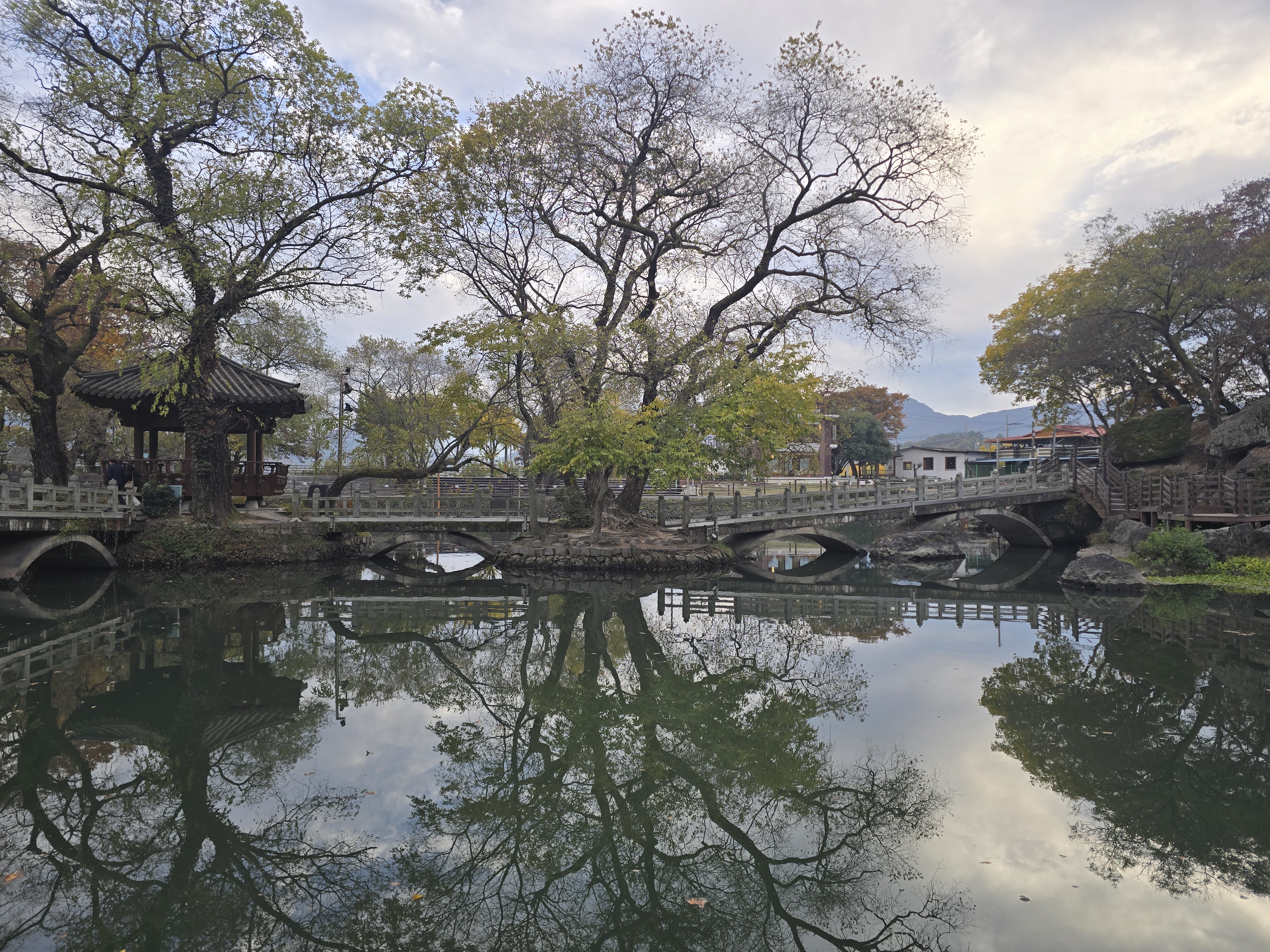 연못에 고목들이 즐비하여 멋진 경치를 보여주고 있으며