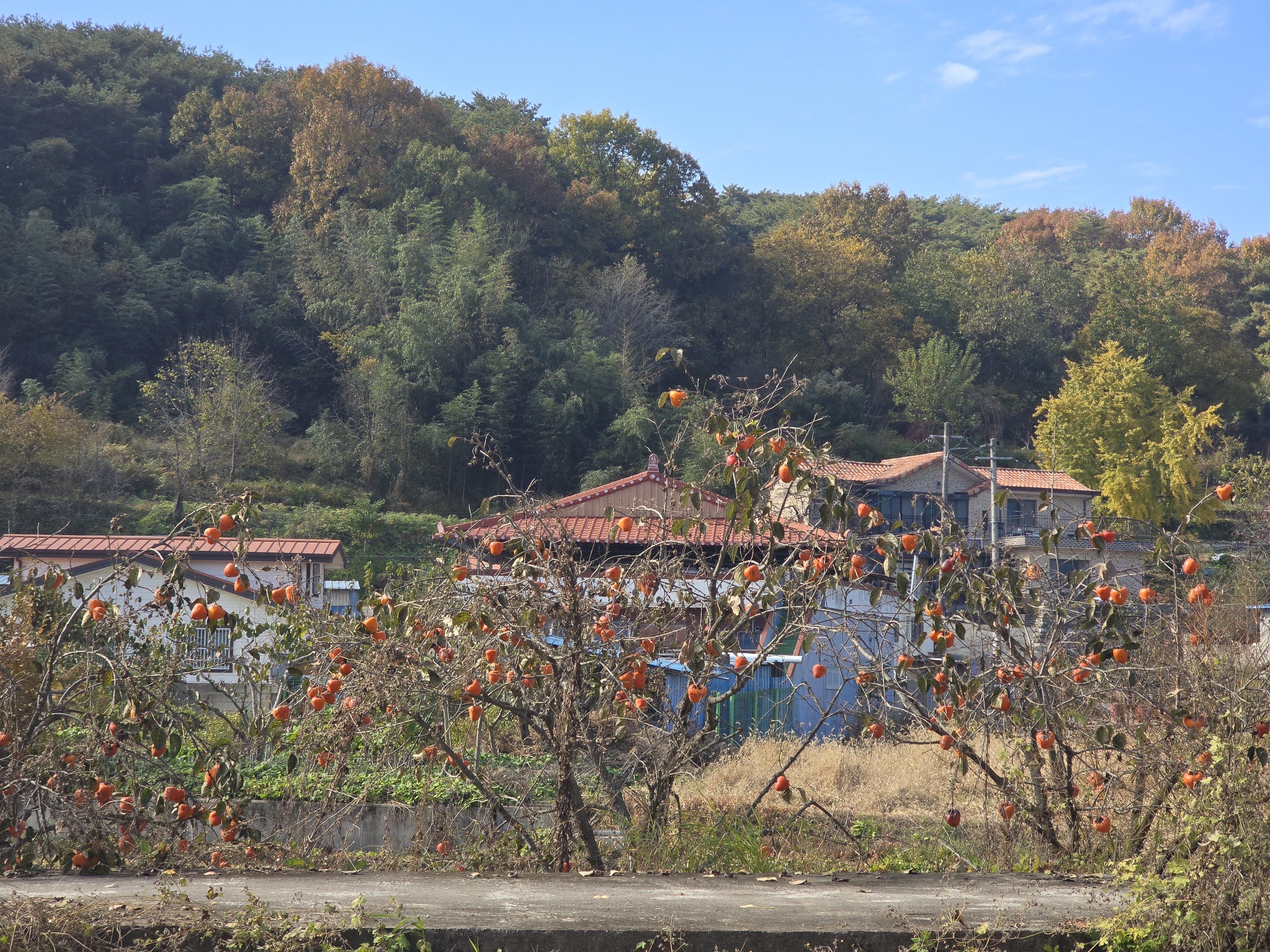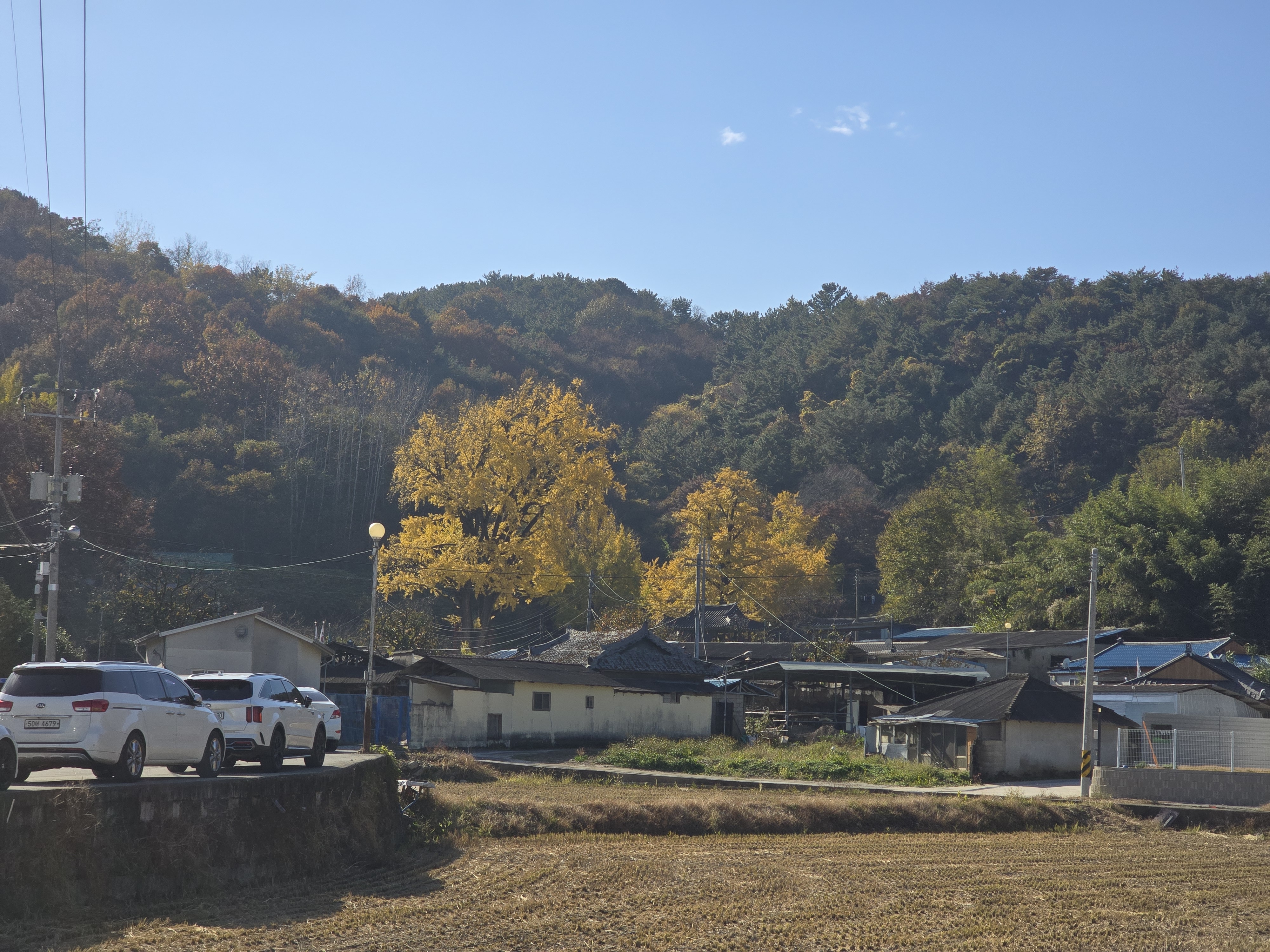 마을 입구에 간신히 주차하고 마을길에 즐비한 주차 차량 옆을 지나간다.