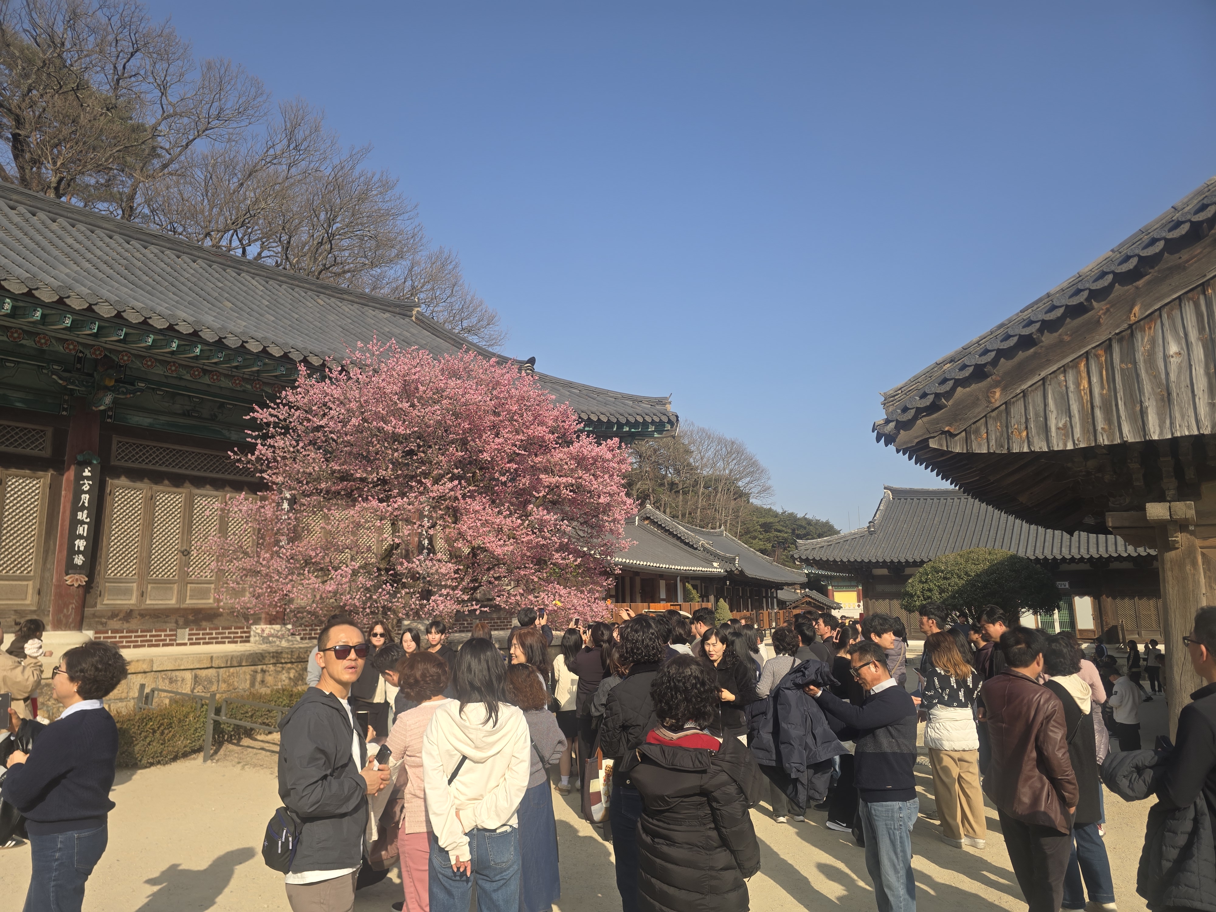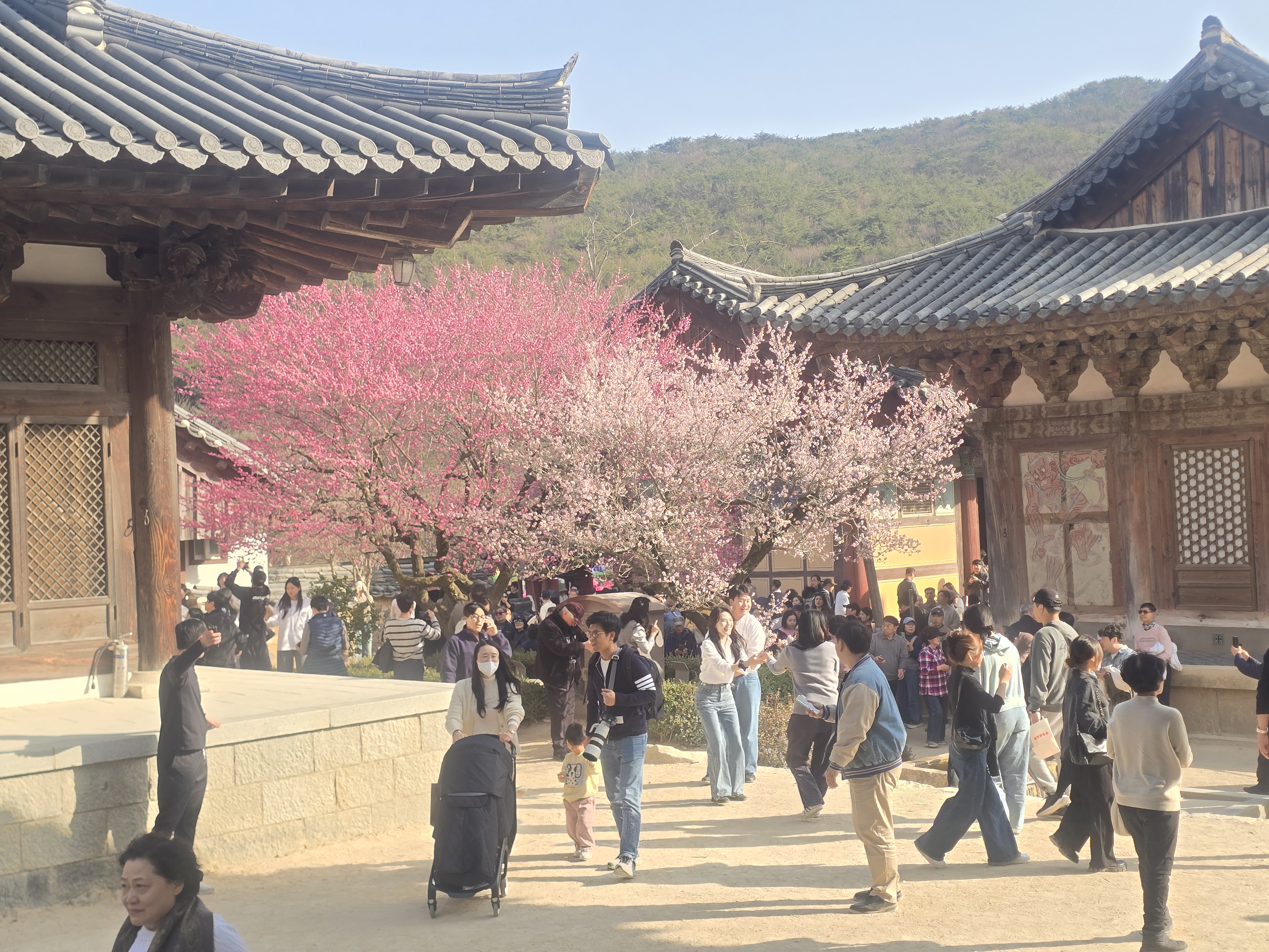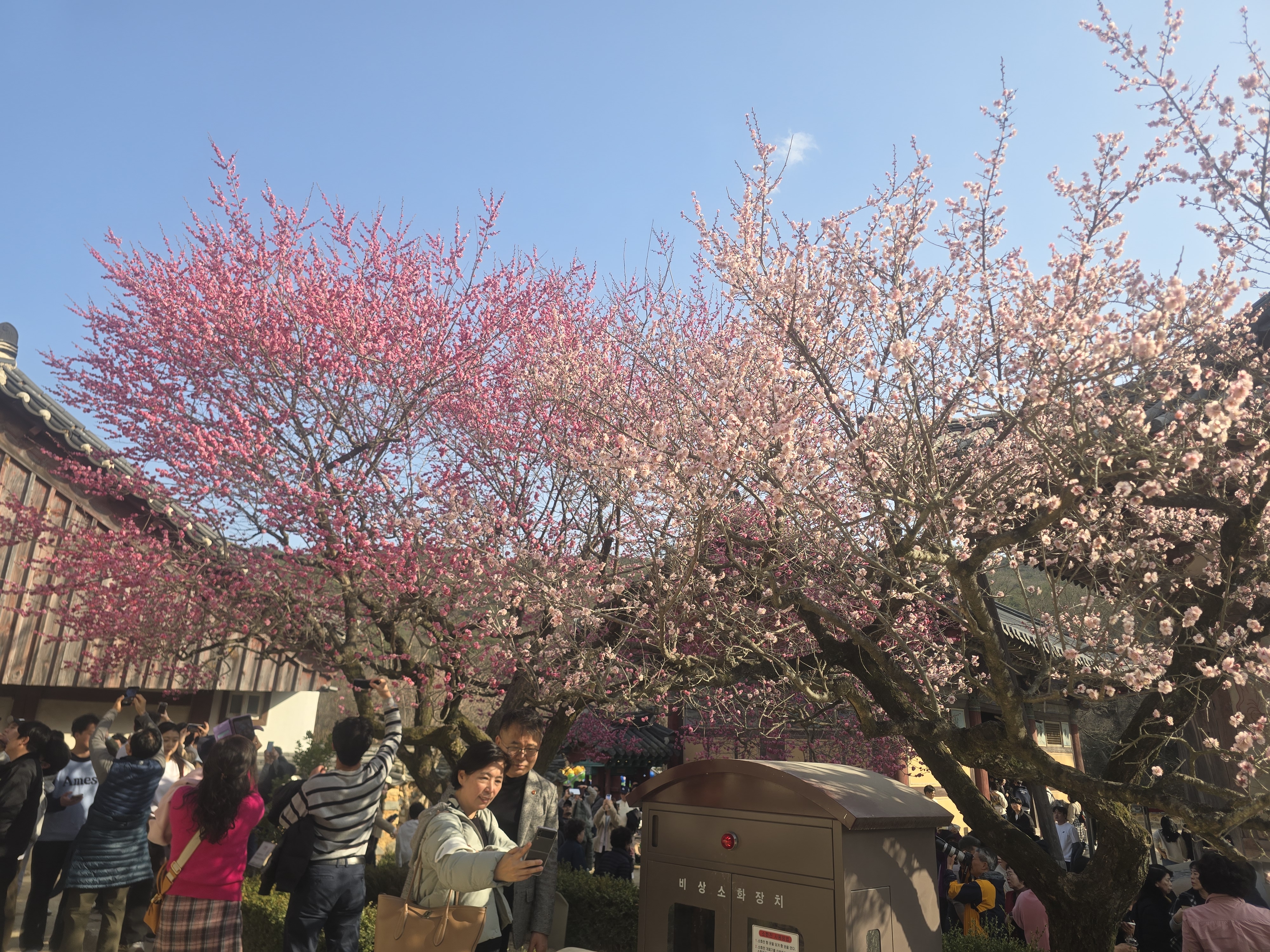 홍매화가 피어있는 영각 마당은 그야말로 인산인해