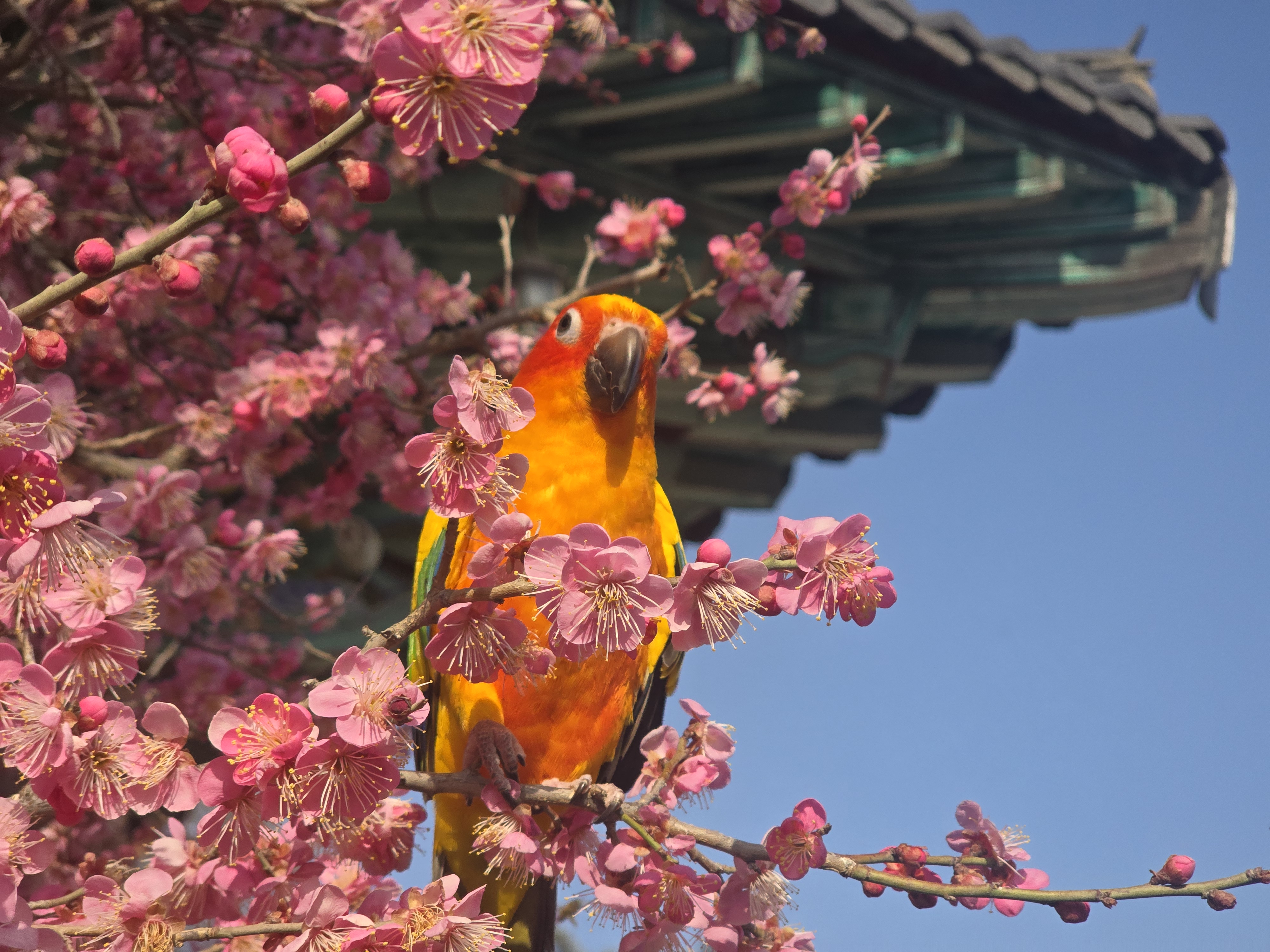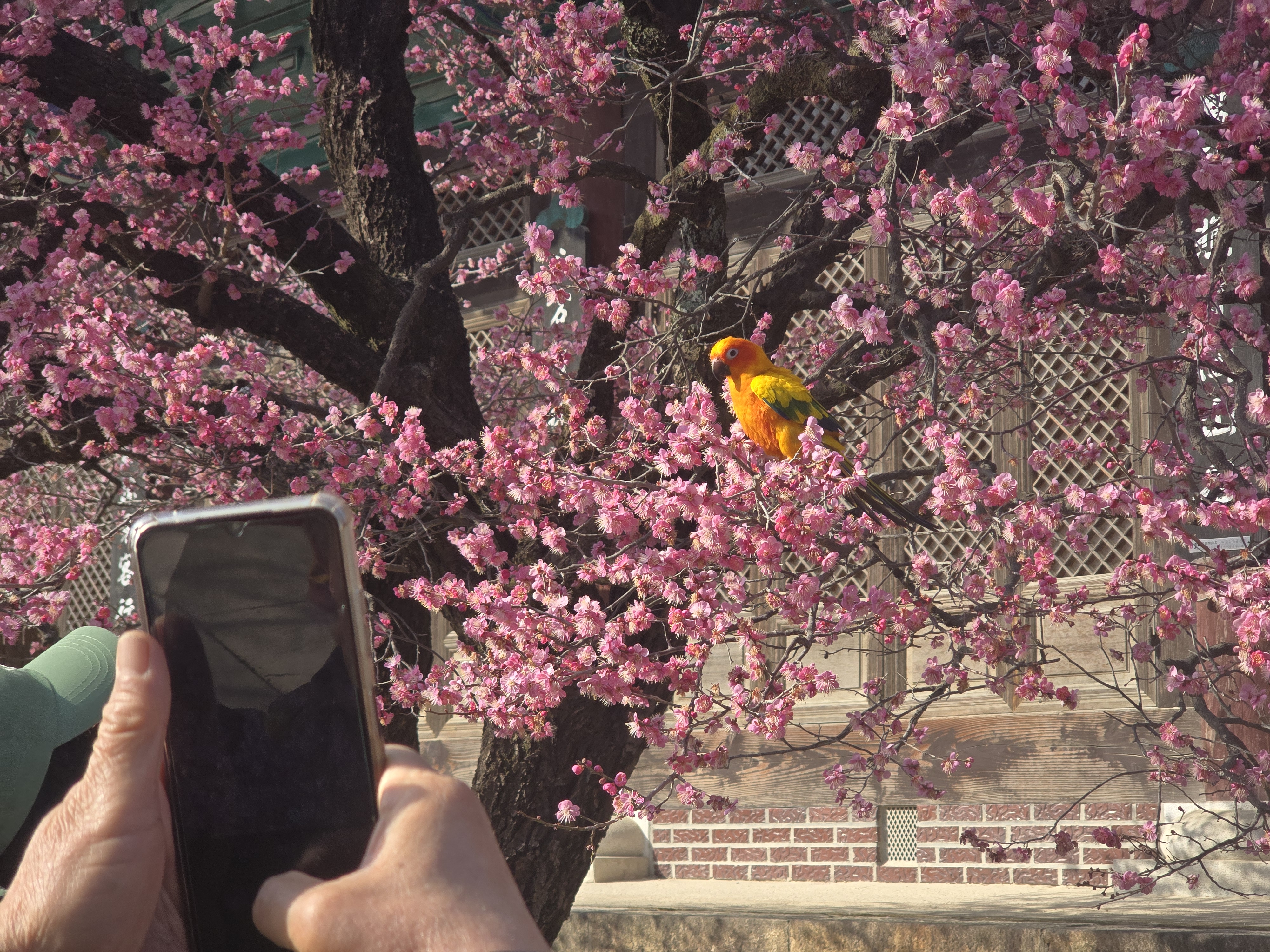 앵무새가 그것을 보고 눈이 휘둥그레졌다.
