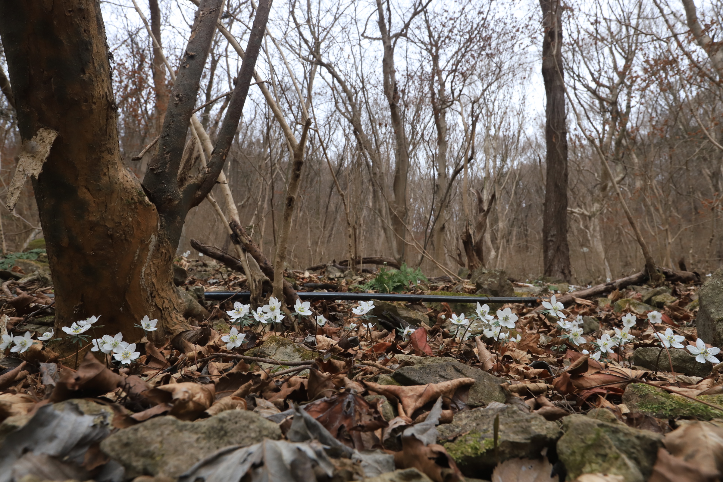 하얗게 핀 가랑잎 사이에 꽃잎들