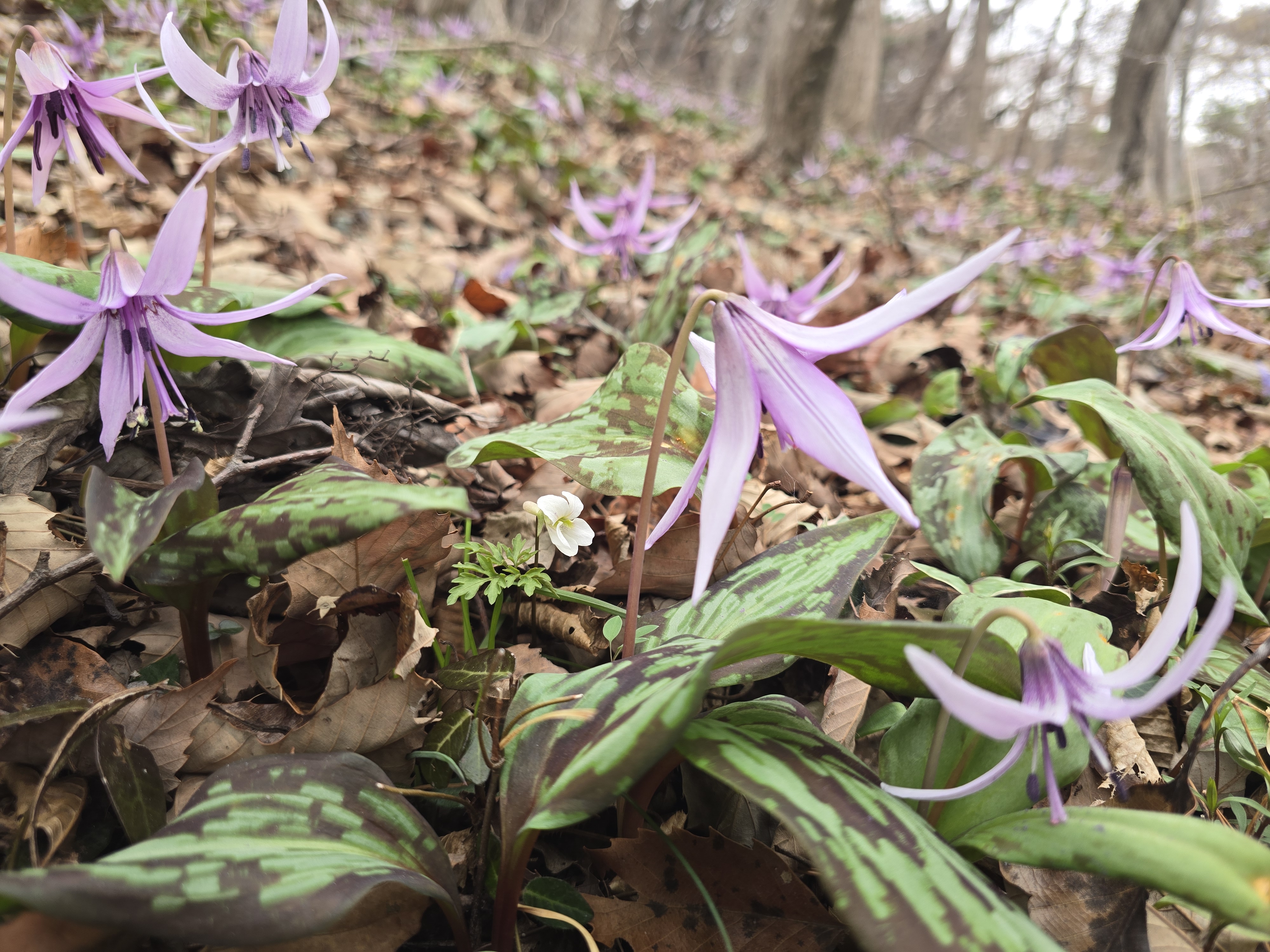 흰얼레지 찾아와서 전엽체 먼저 찾는다.