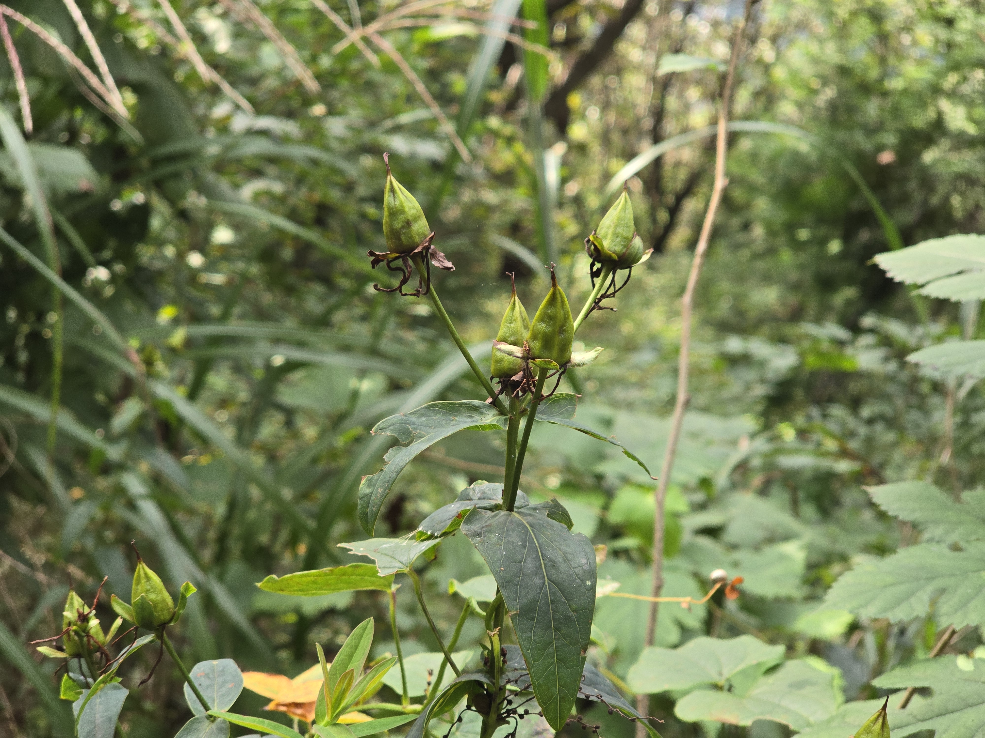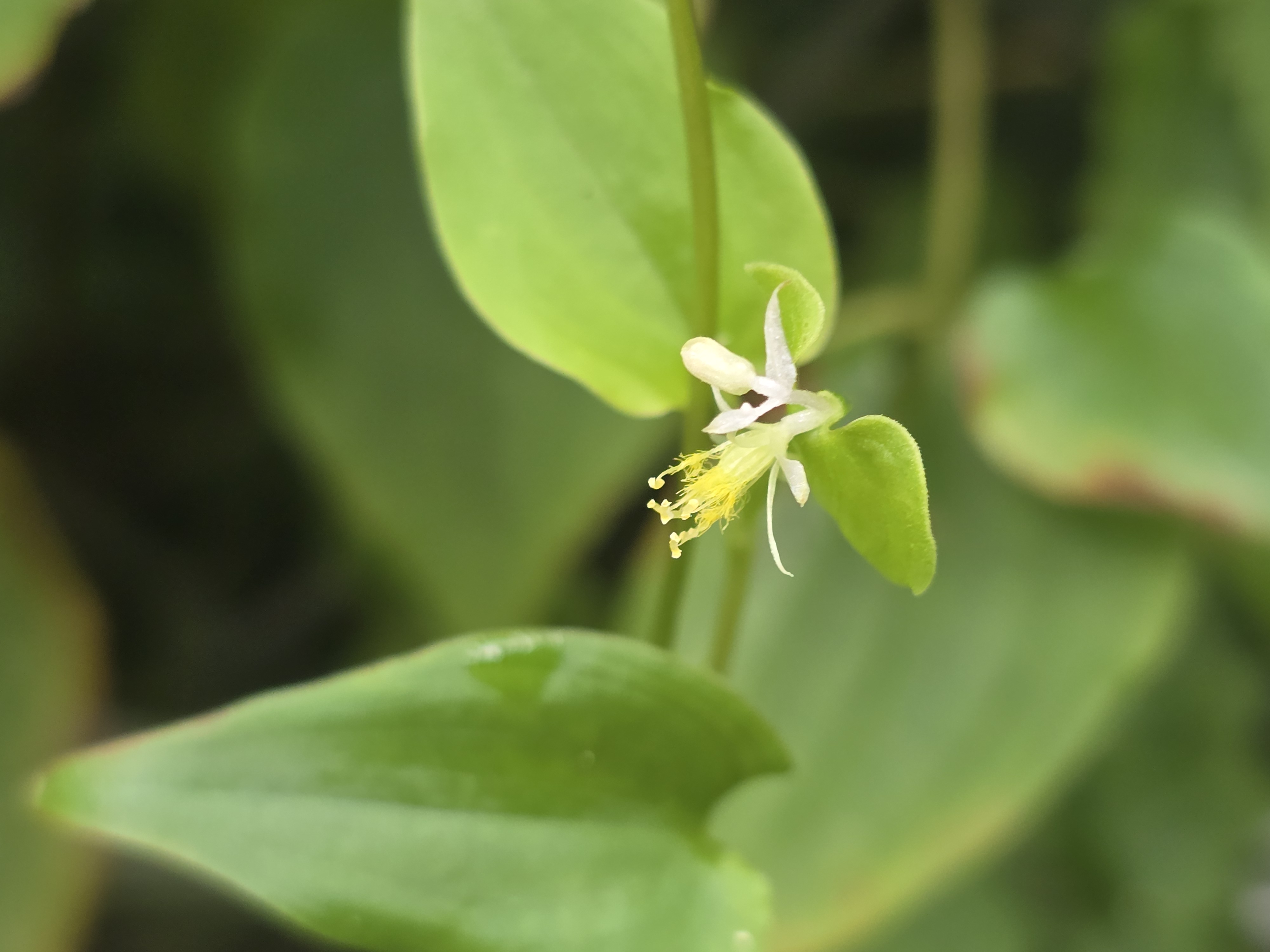 덩굴닭의장풀이 철조망에 늘어져 꽃과 열매를 보고