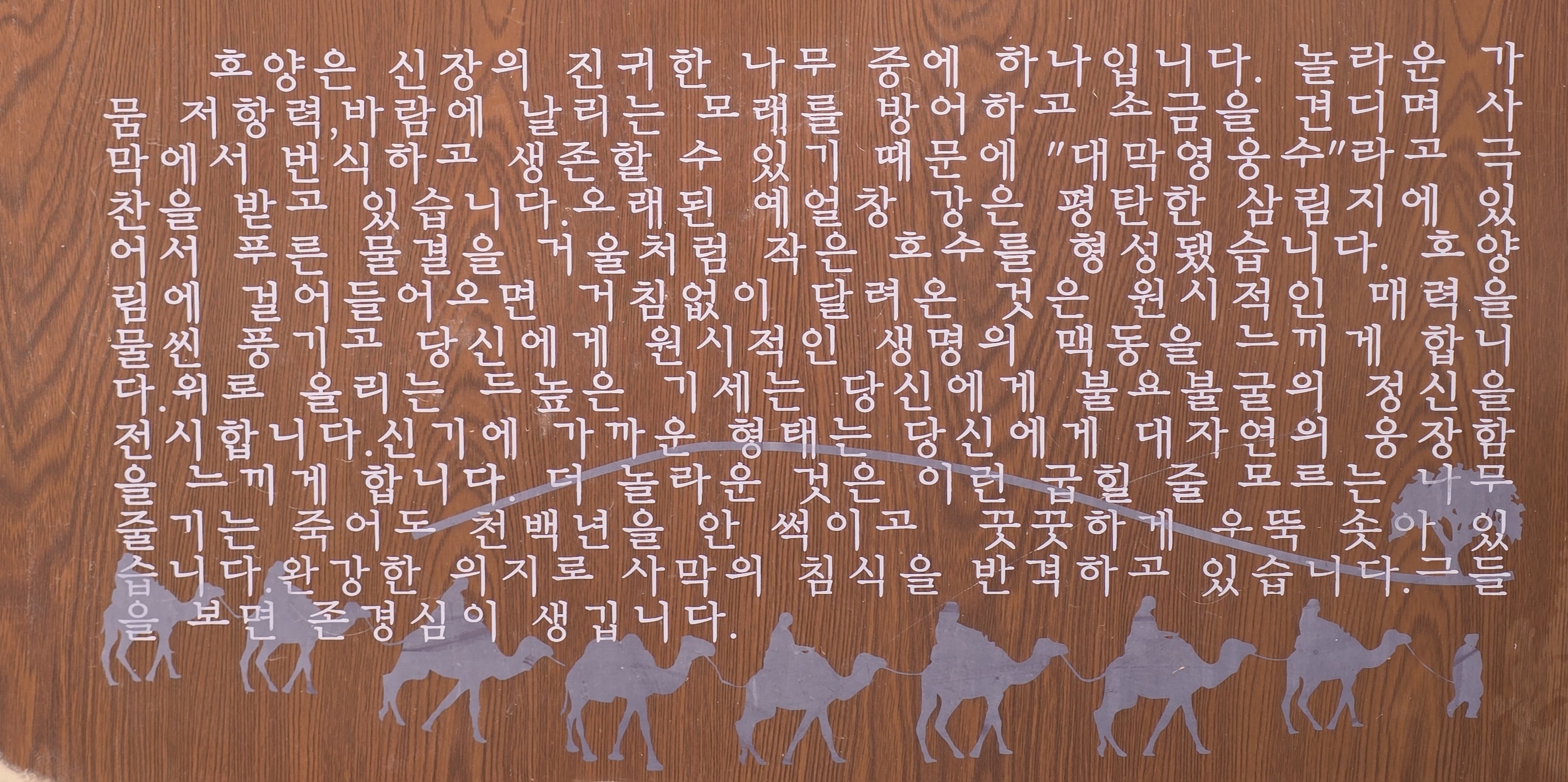 안내글에는 호양나무는 신장의 진귀한 나무이며