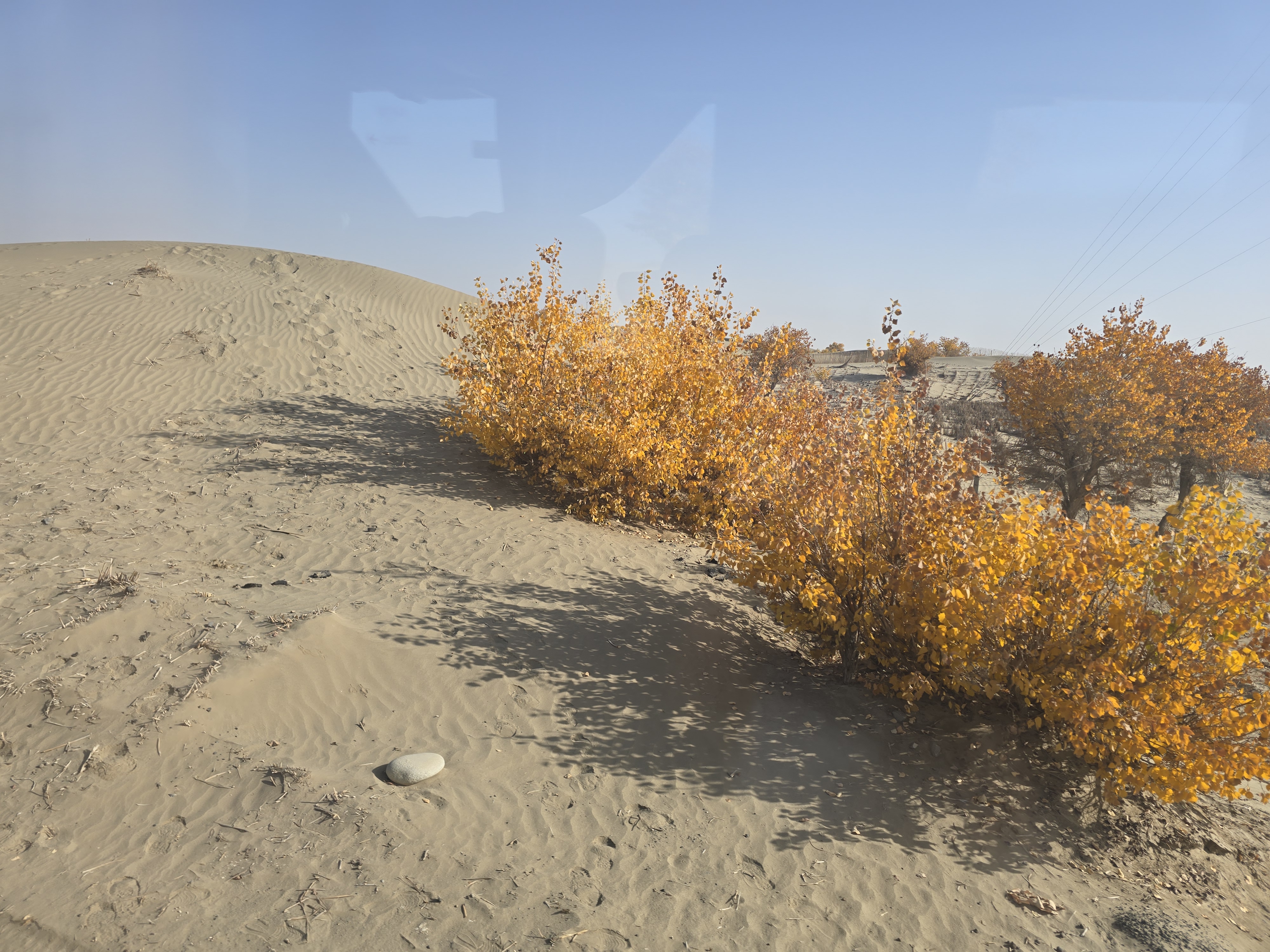 모래와 호양나무 단풍의 앙상블에 추억을 새겼다.