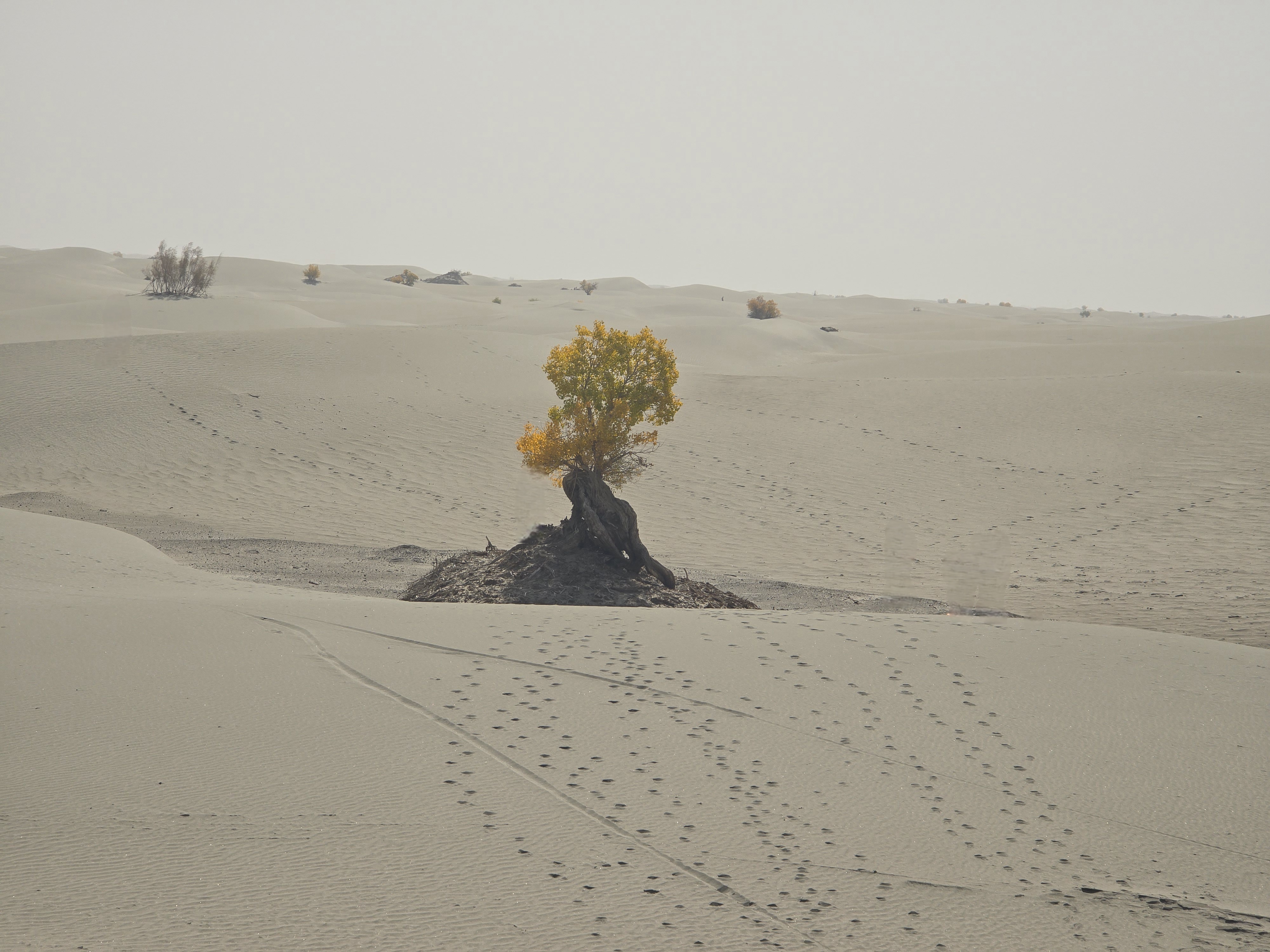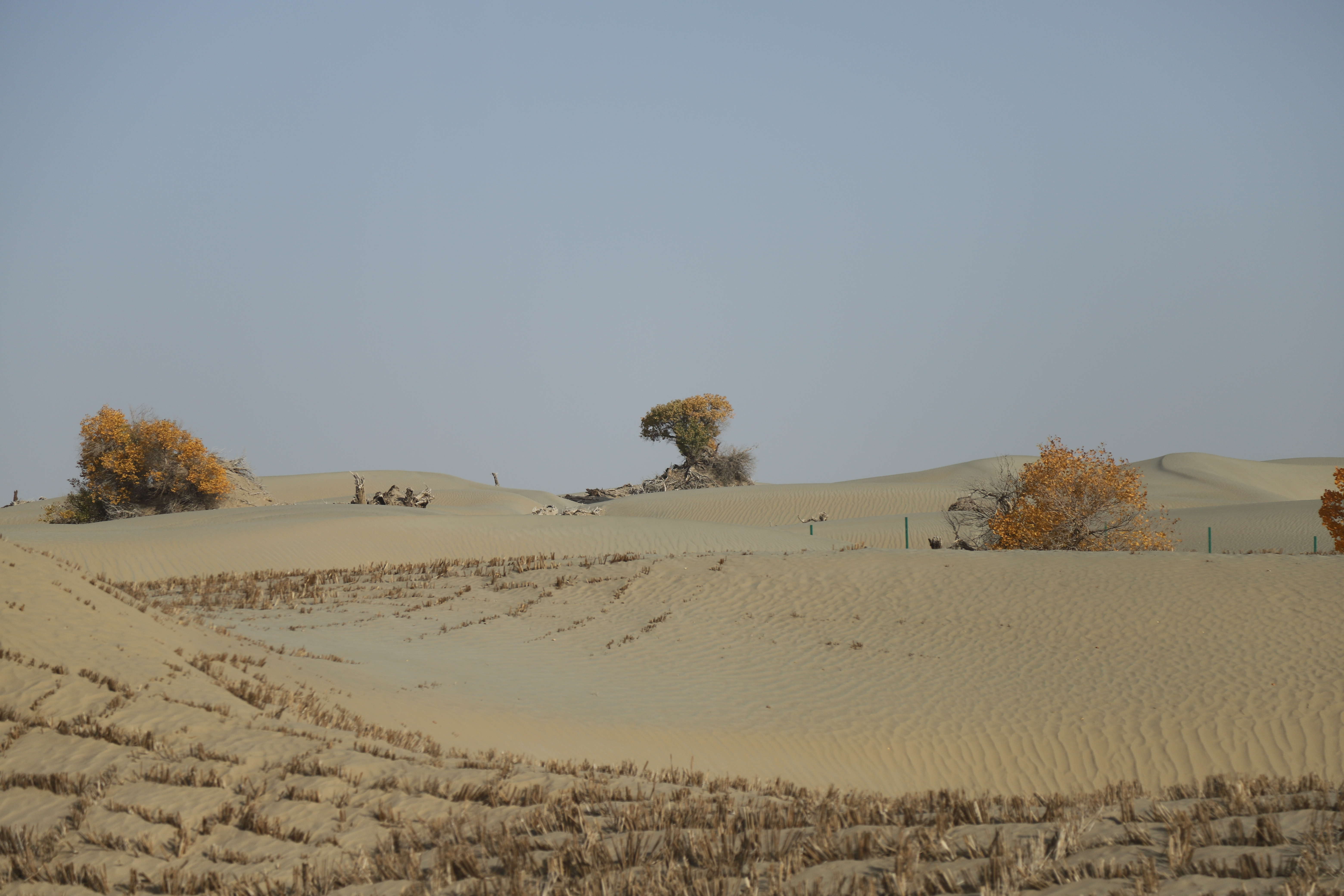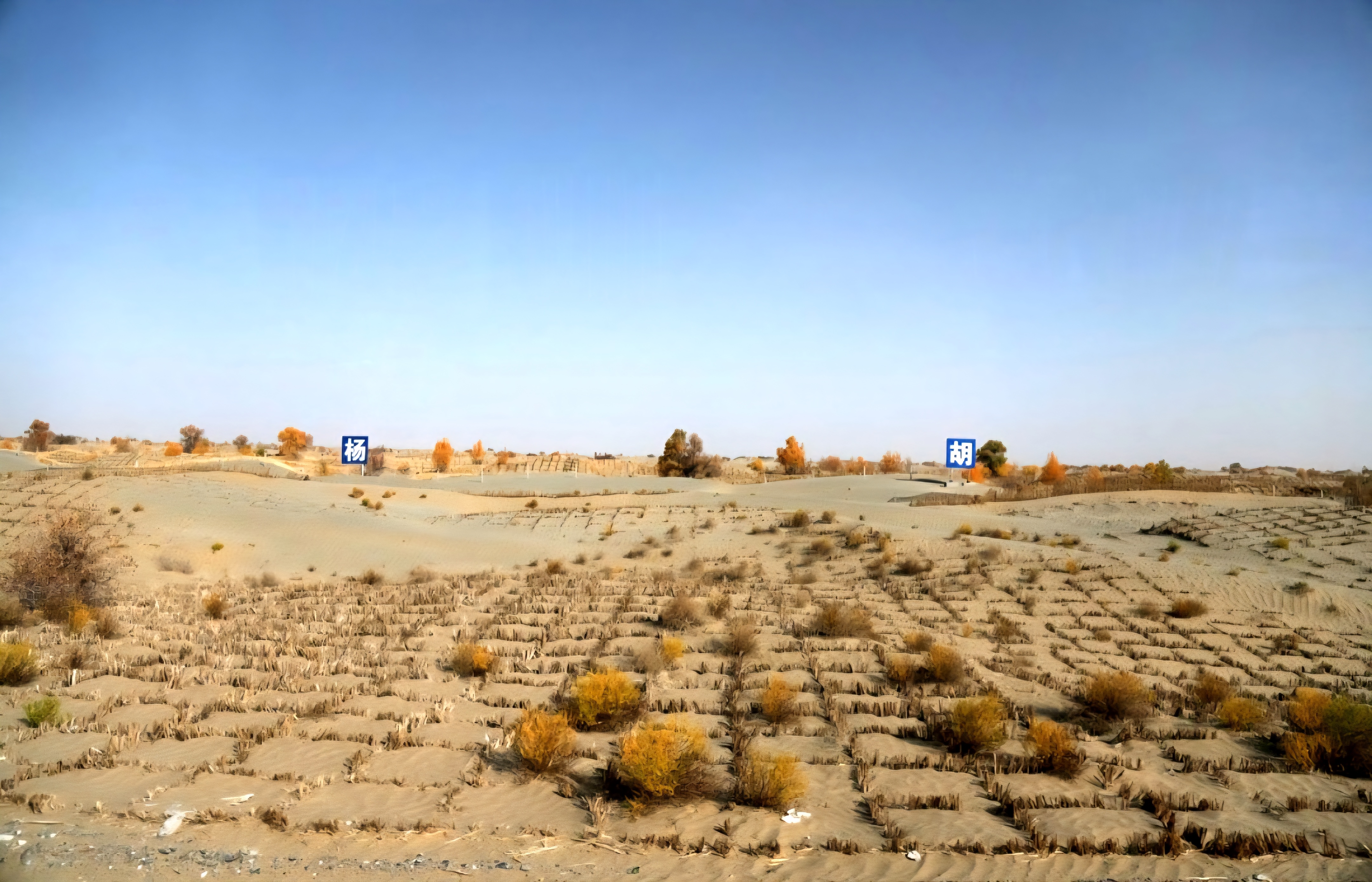 모래 땅에 끈질기게 살아나는 호양나무의 노란 단풍
