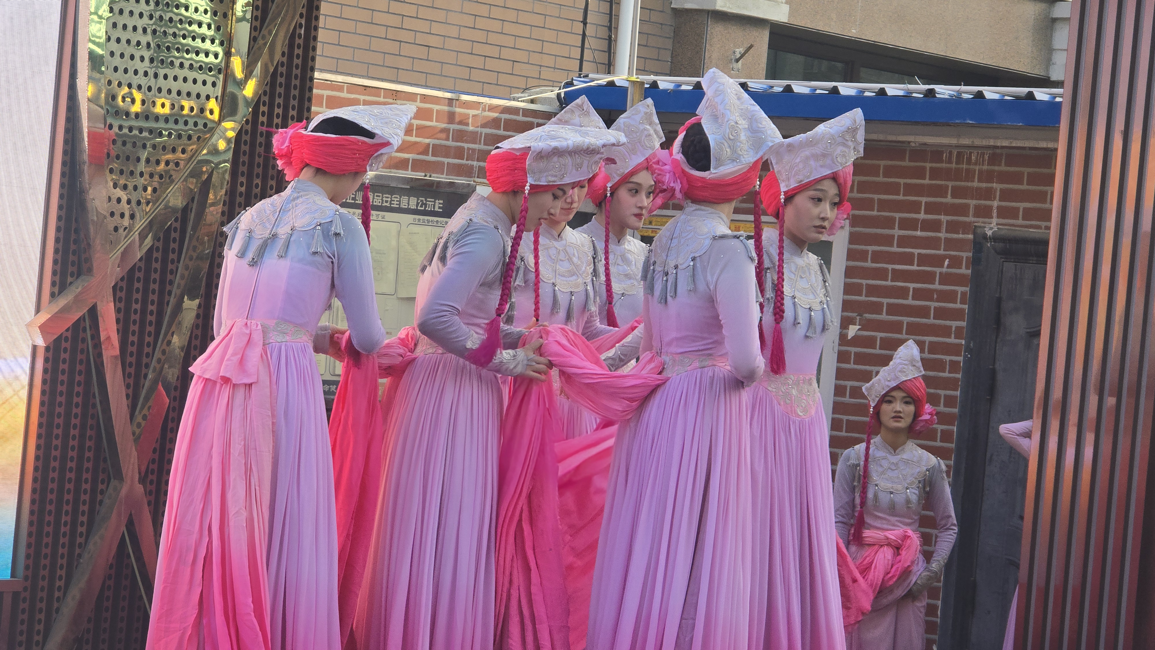 광장 한쪽의 무대에서는 전통 복장을 한 무희들이 준비하고 있어